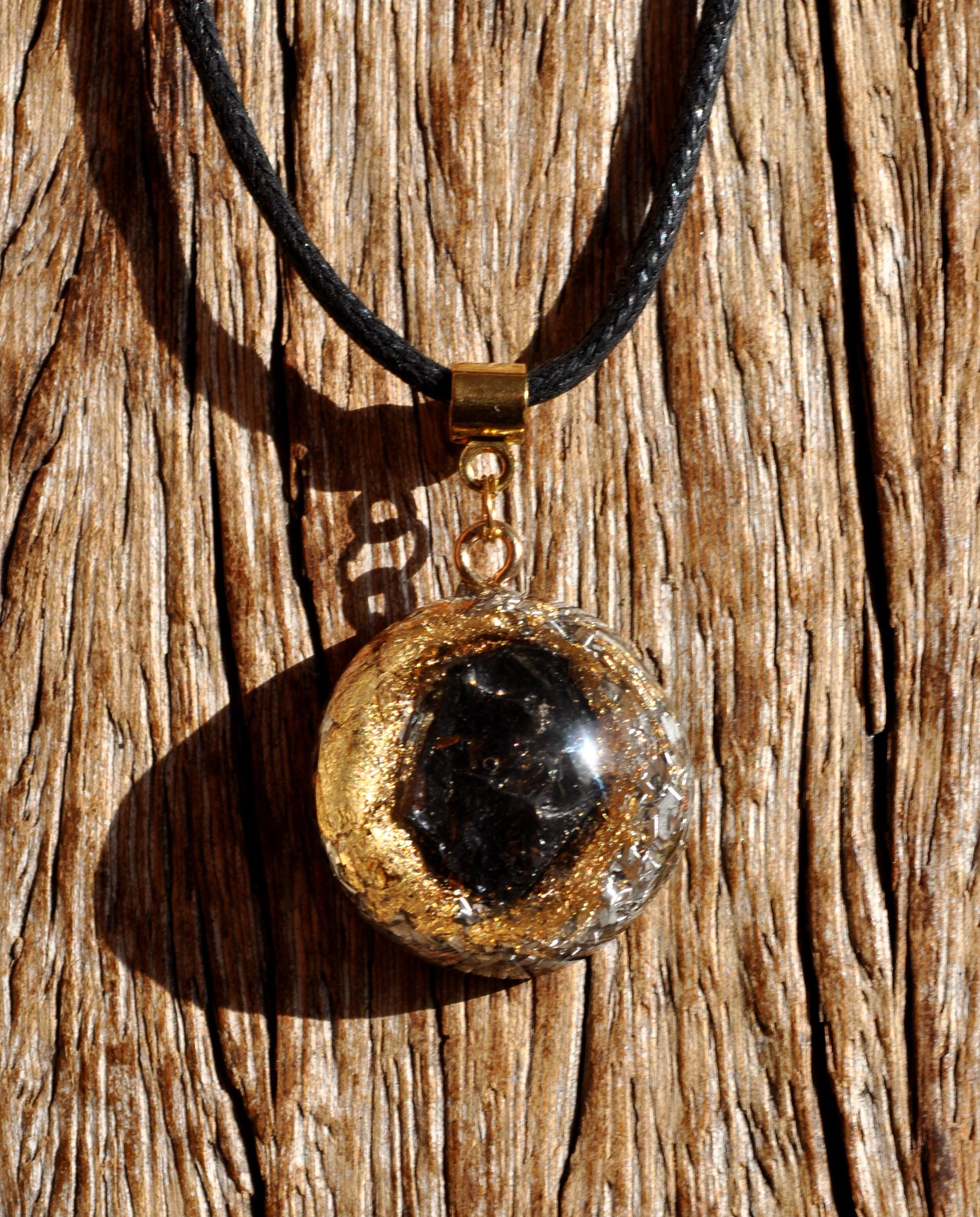 Experience the craftsmanship and timeless elegance of our handmade Elite Shungite Orgone Pendant, designed with brass, bronze, aluminium, and copper shavings for optimal orgonite structure and aesthetic appeal.