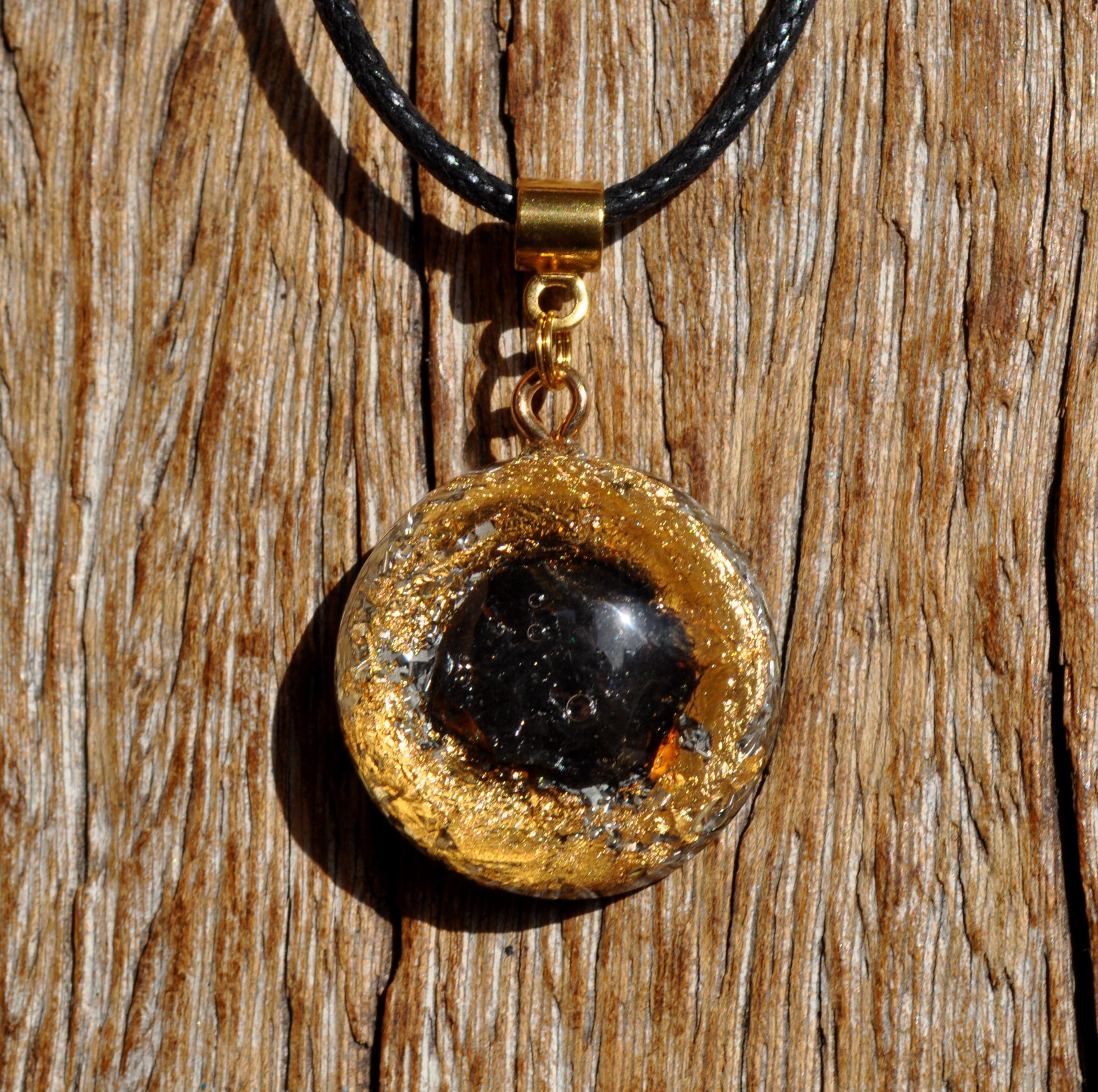 Experience the craftsmanship and timeless elegance of our handmade Elite Shungite Orgone Pendant, designed with brass, bronze, aluminium, and copper shavings for optimal orgonite structure and aesthetic appeal.