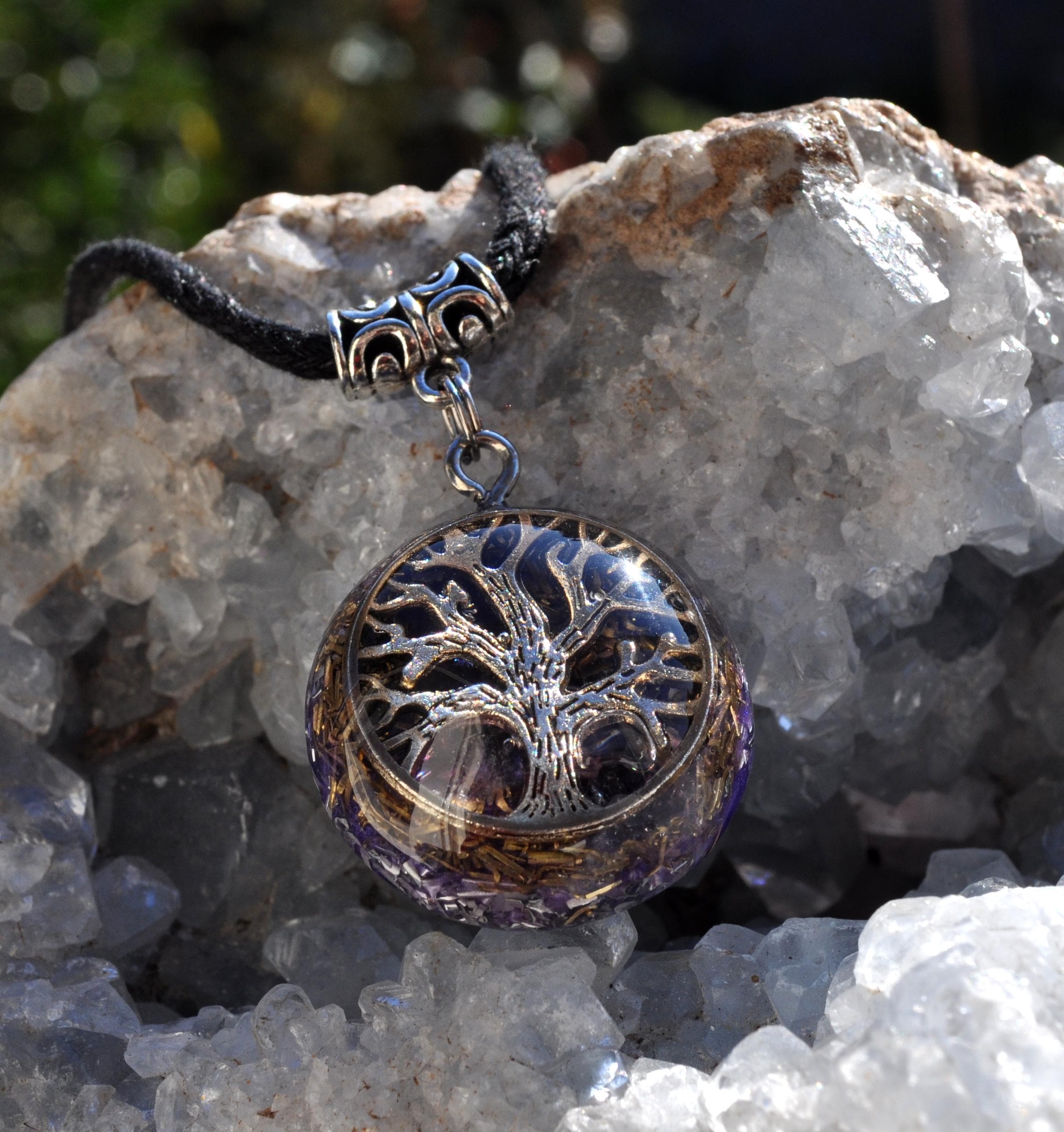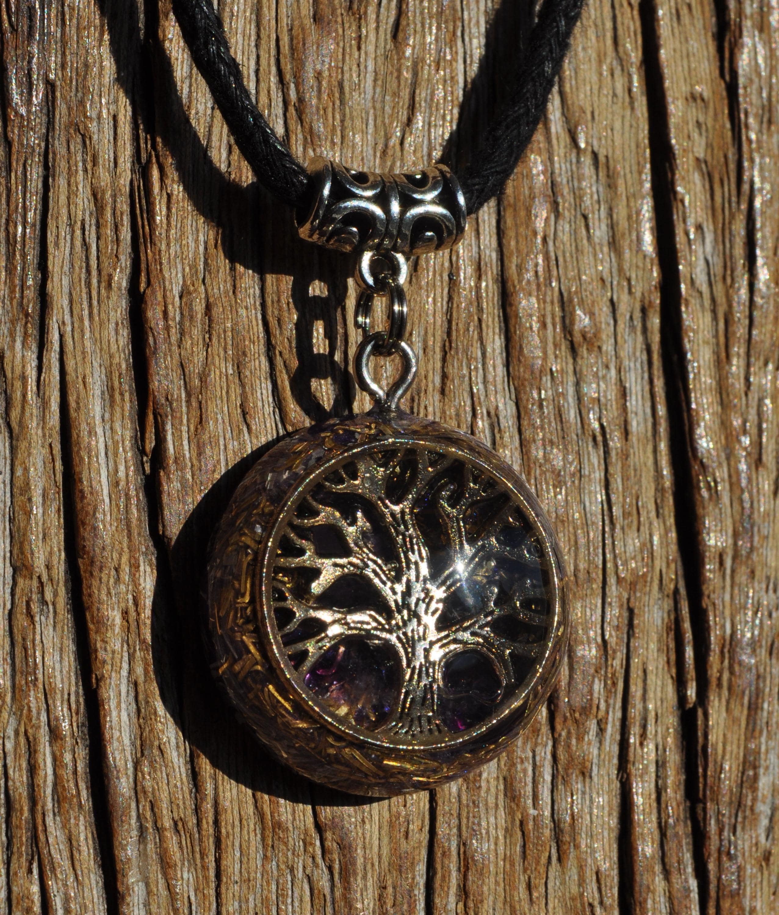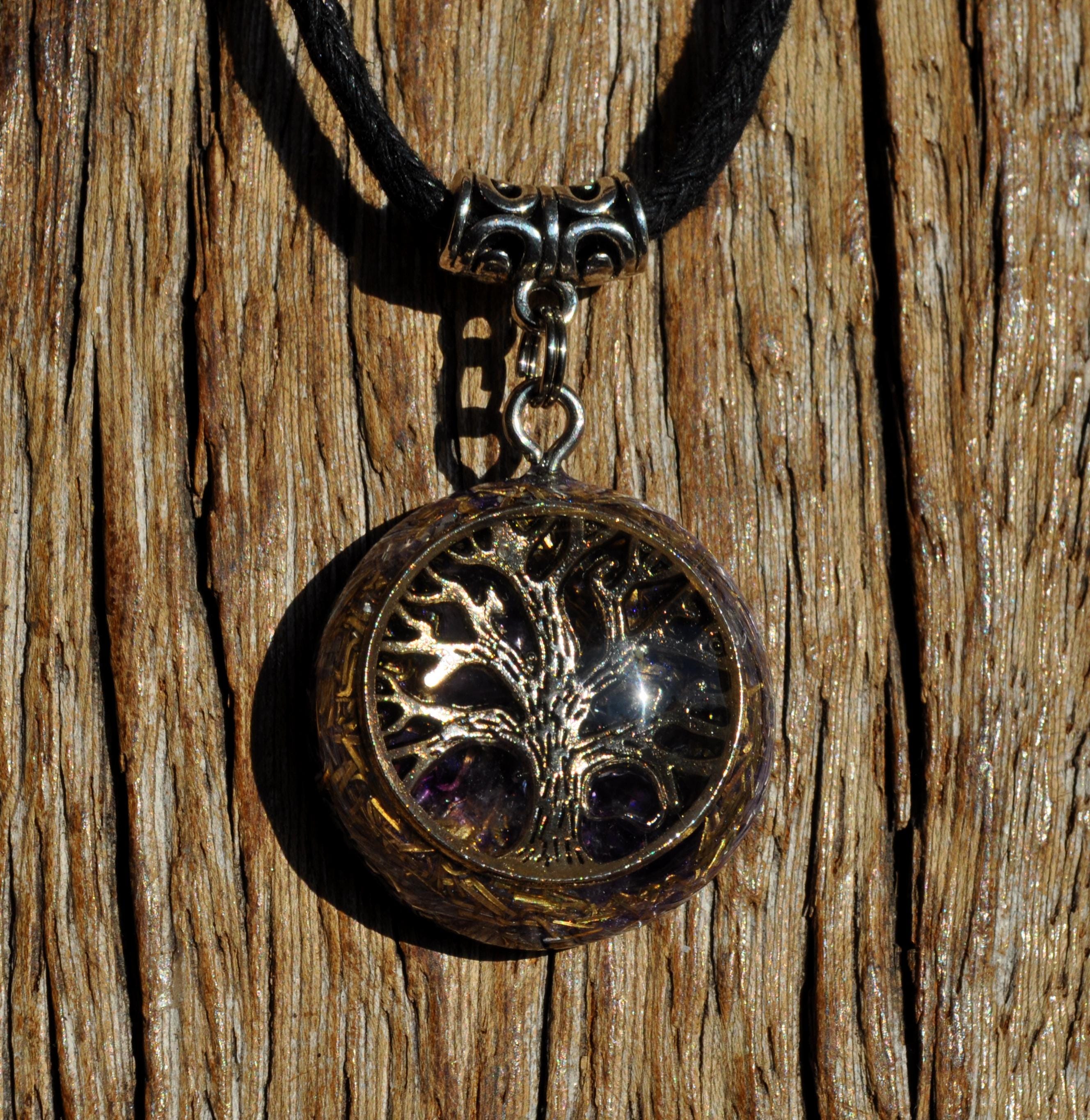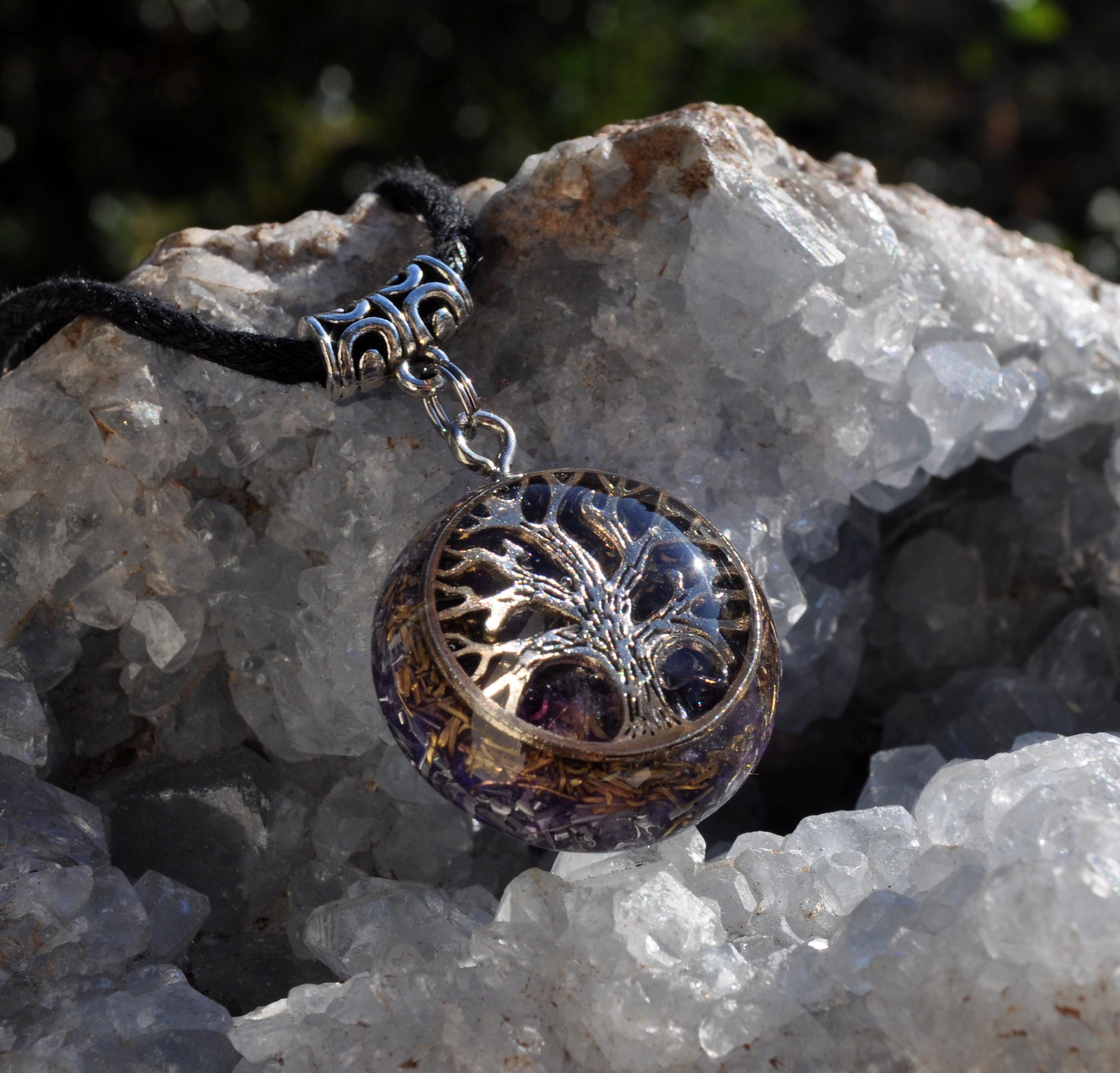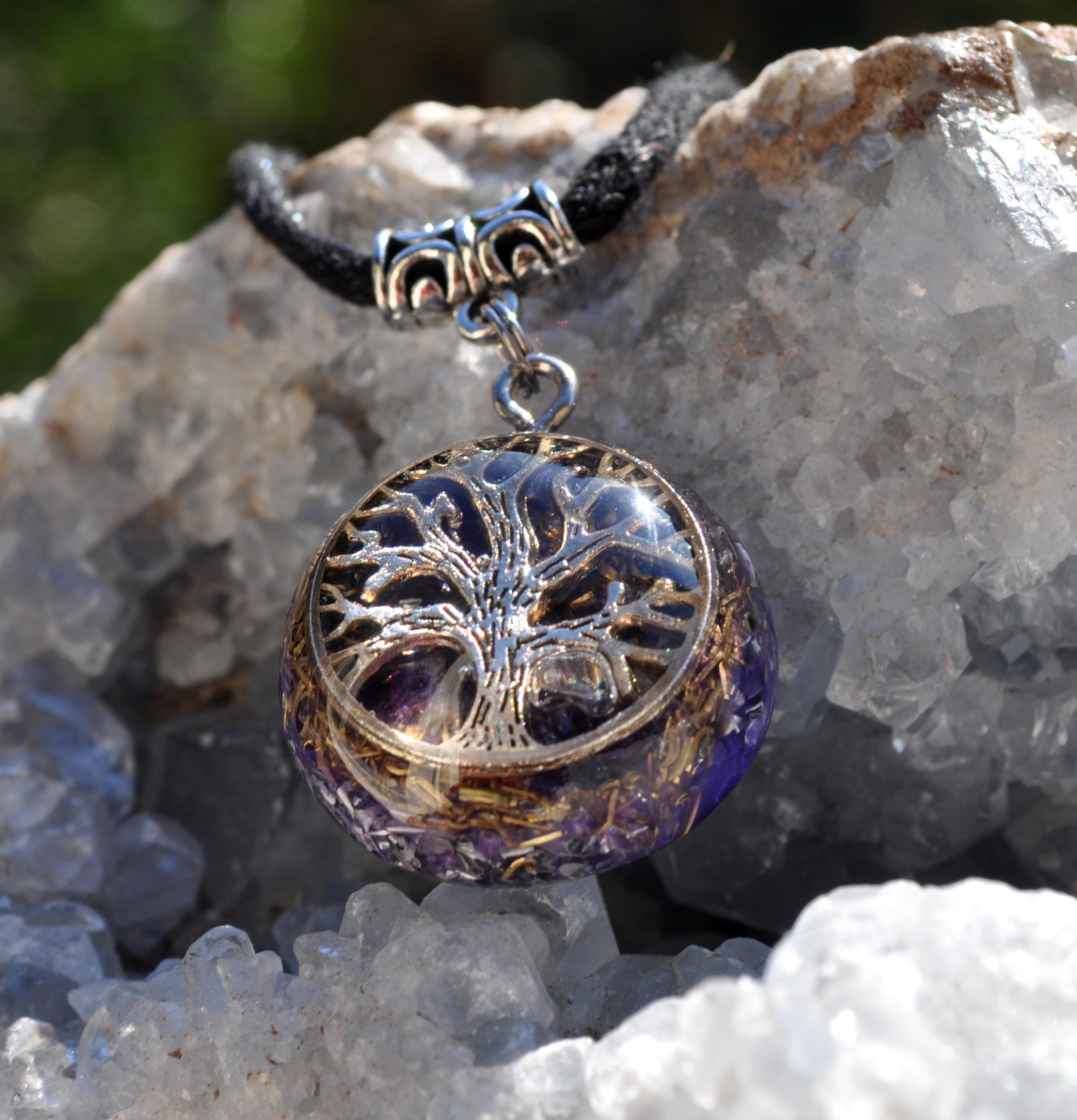 Tree of Life Orgonite Pendant with Amethyst – Handmade Energy Jewelry