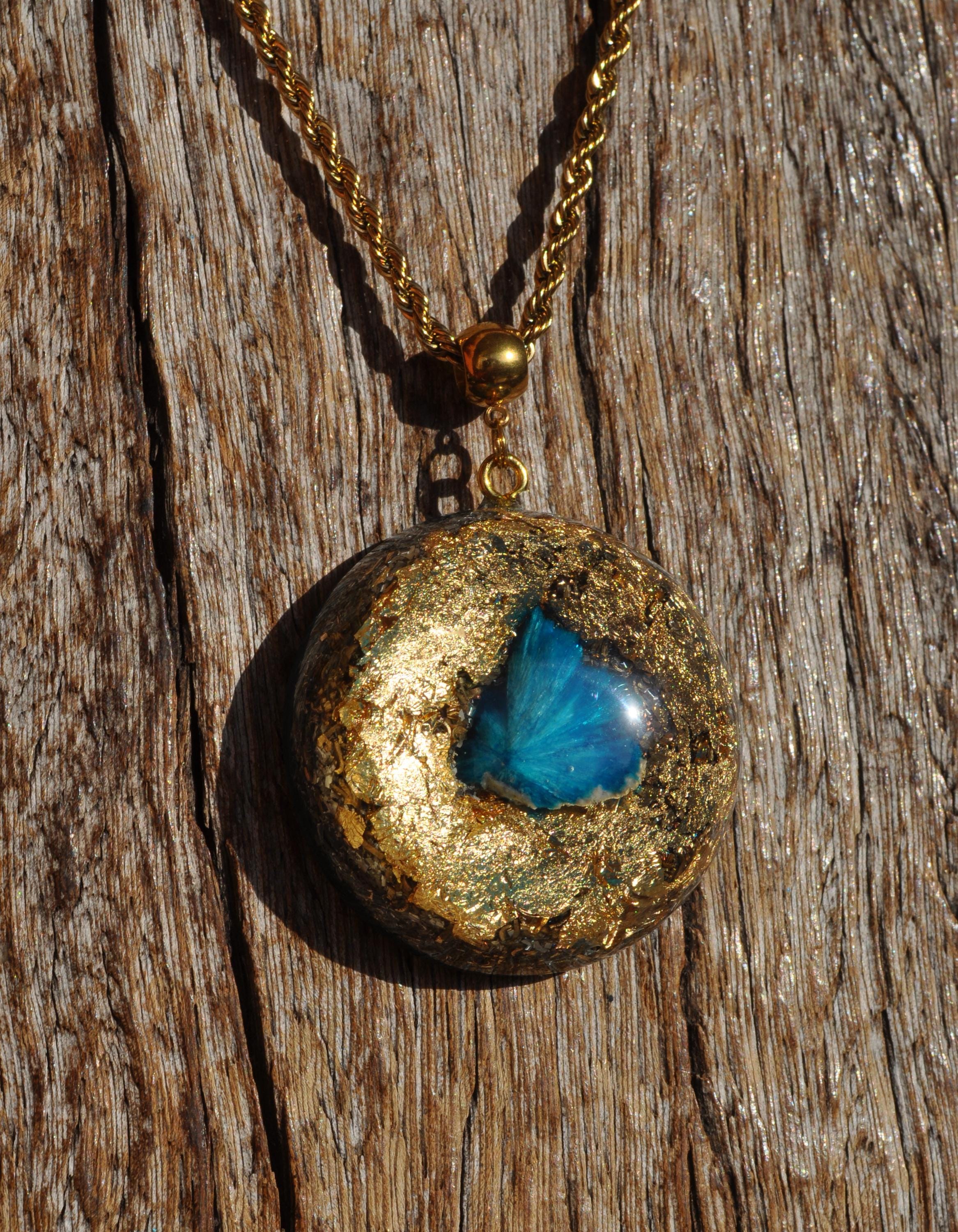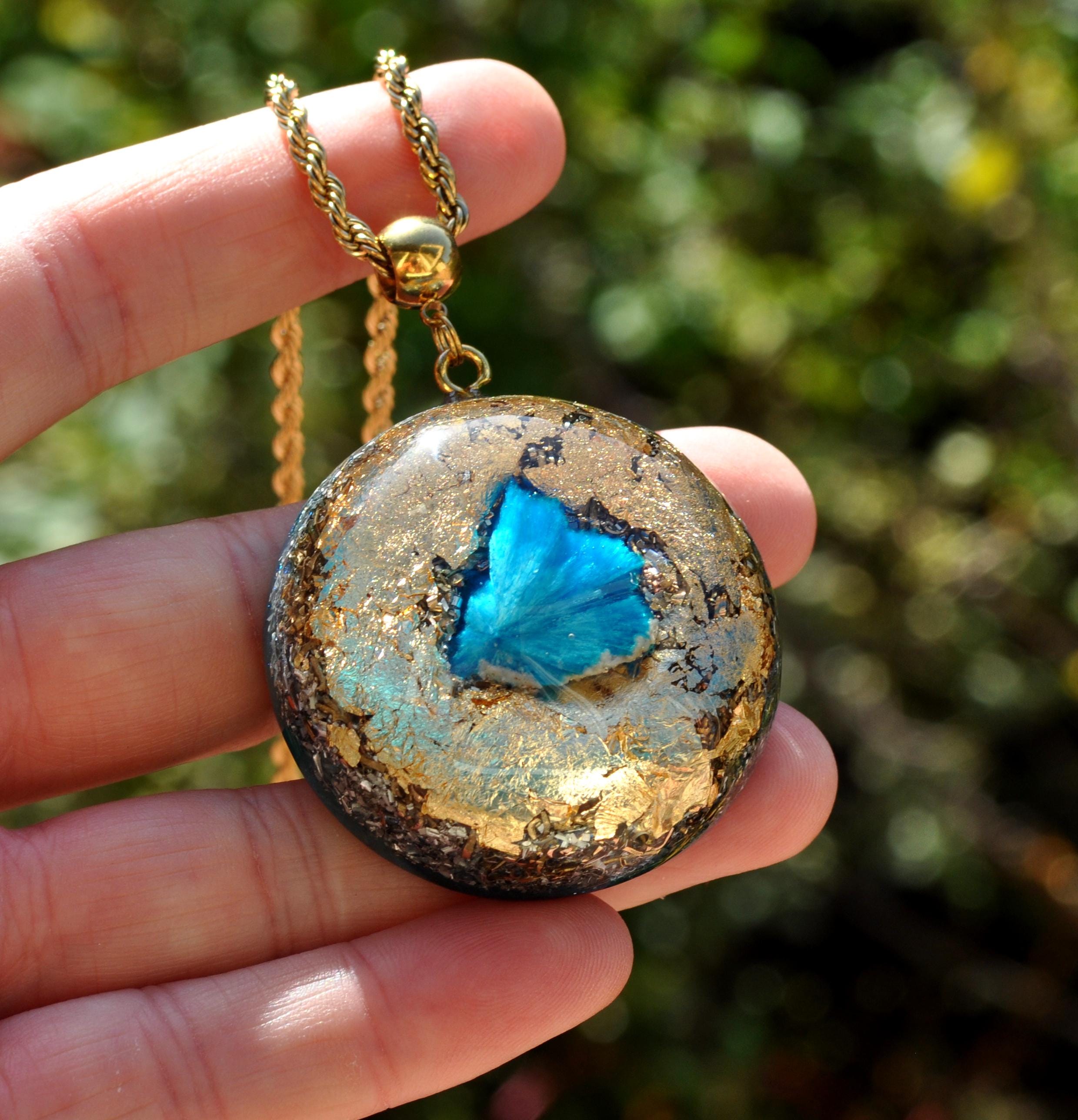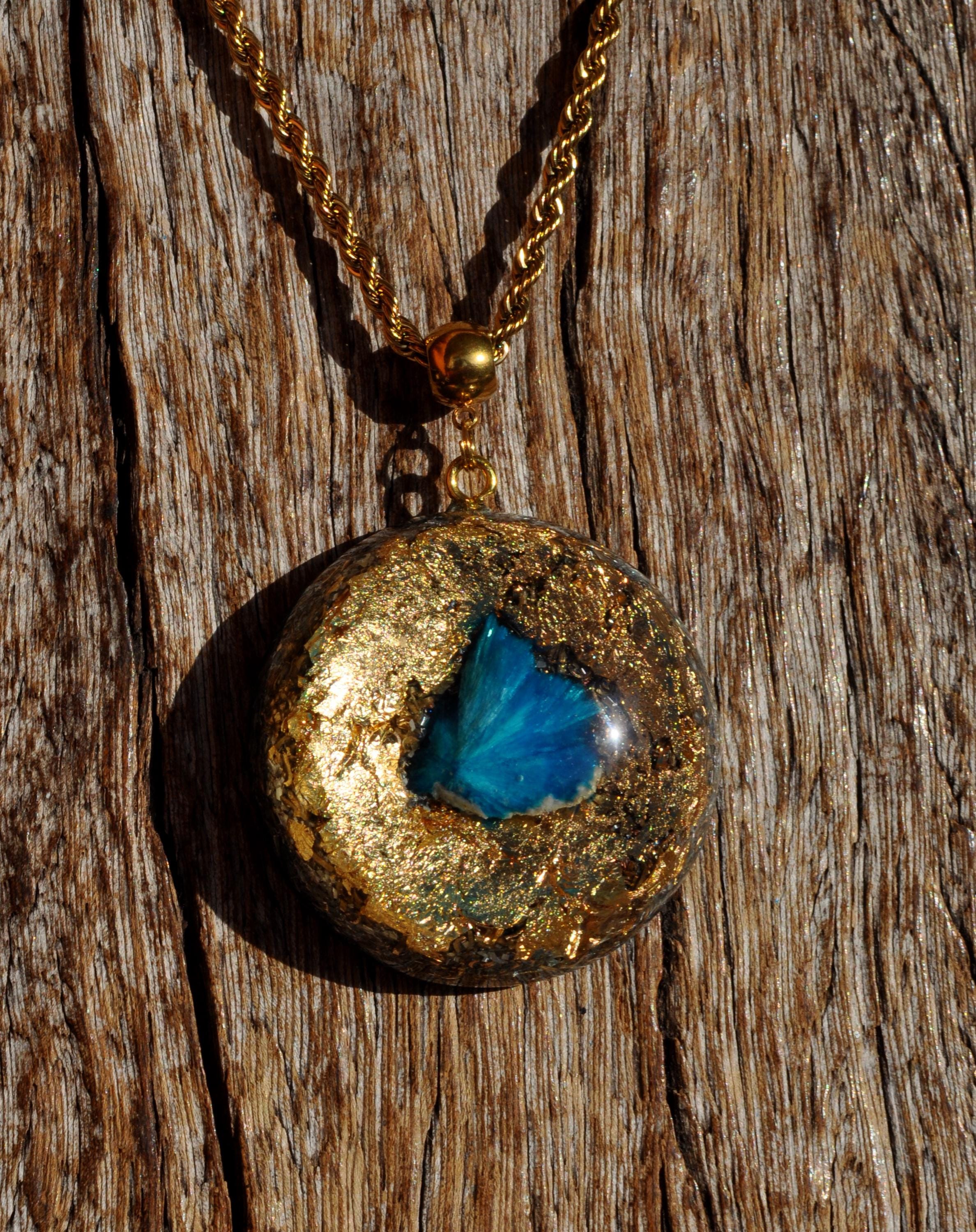 Rare Cavansite & Crystal Orgone Pendant – 4.2 cm / 1.65" – Handmade with 24k Gold Leaf