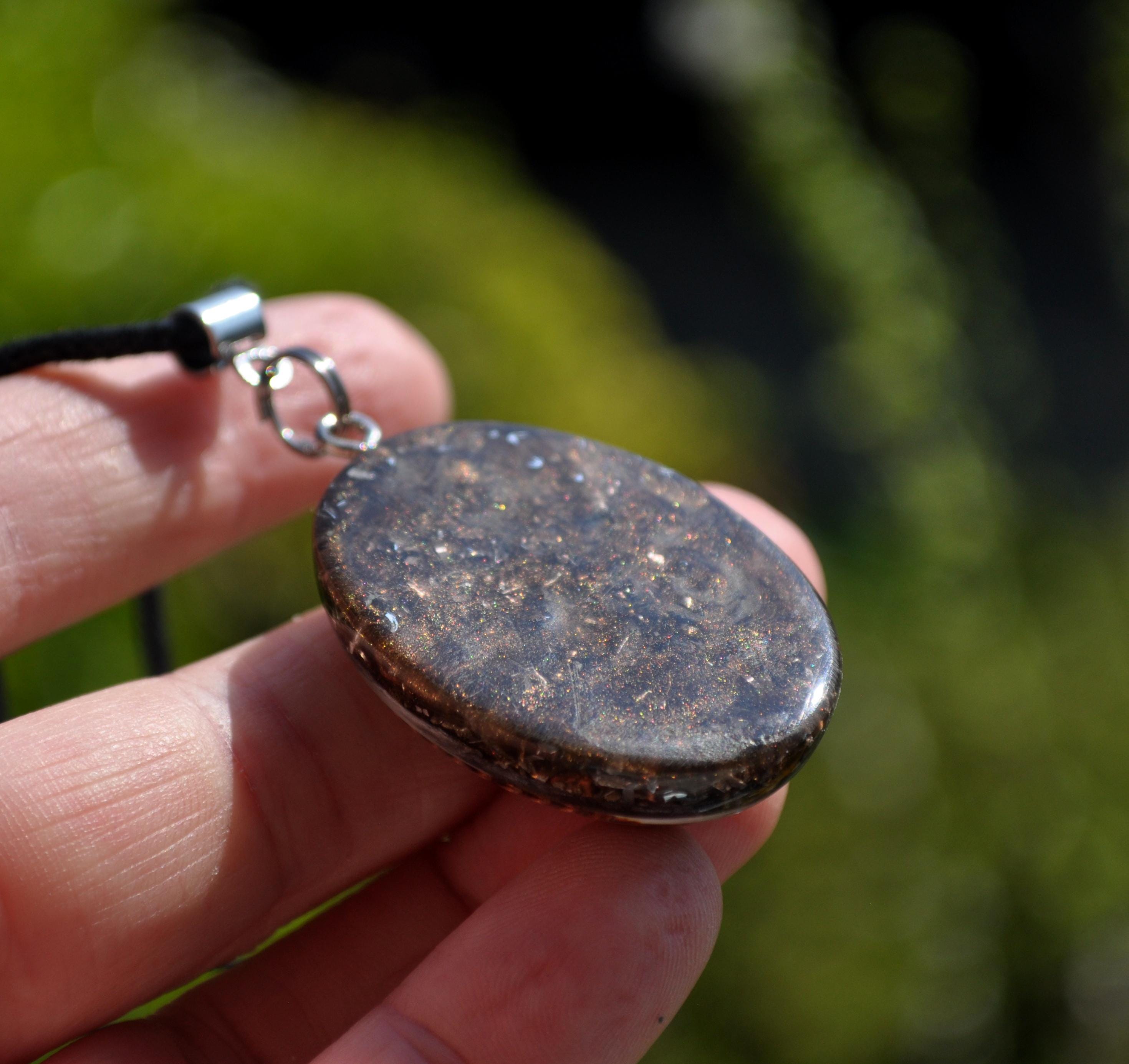 Elevate your personal space and adorn yourself with this handmade Orgonite® pendant, carefully crafted from resin and a blend of brass, bronze, aluminum, and copper shavings. Designed as a tool for energy harmonizing and mindful intention, this pendant draws inspiration from Wilhelm Reich’s orgone principles and modern Orgonite® craftsmanship.