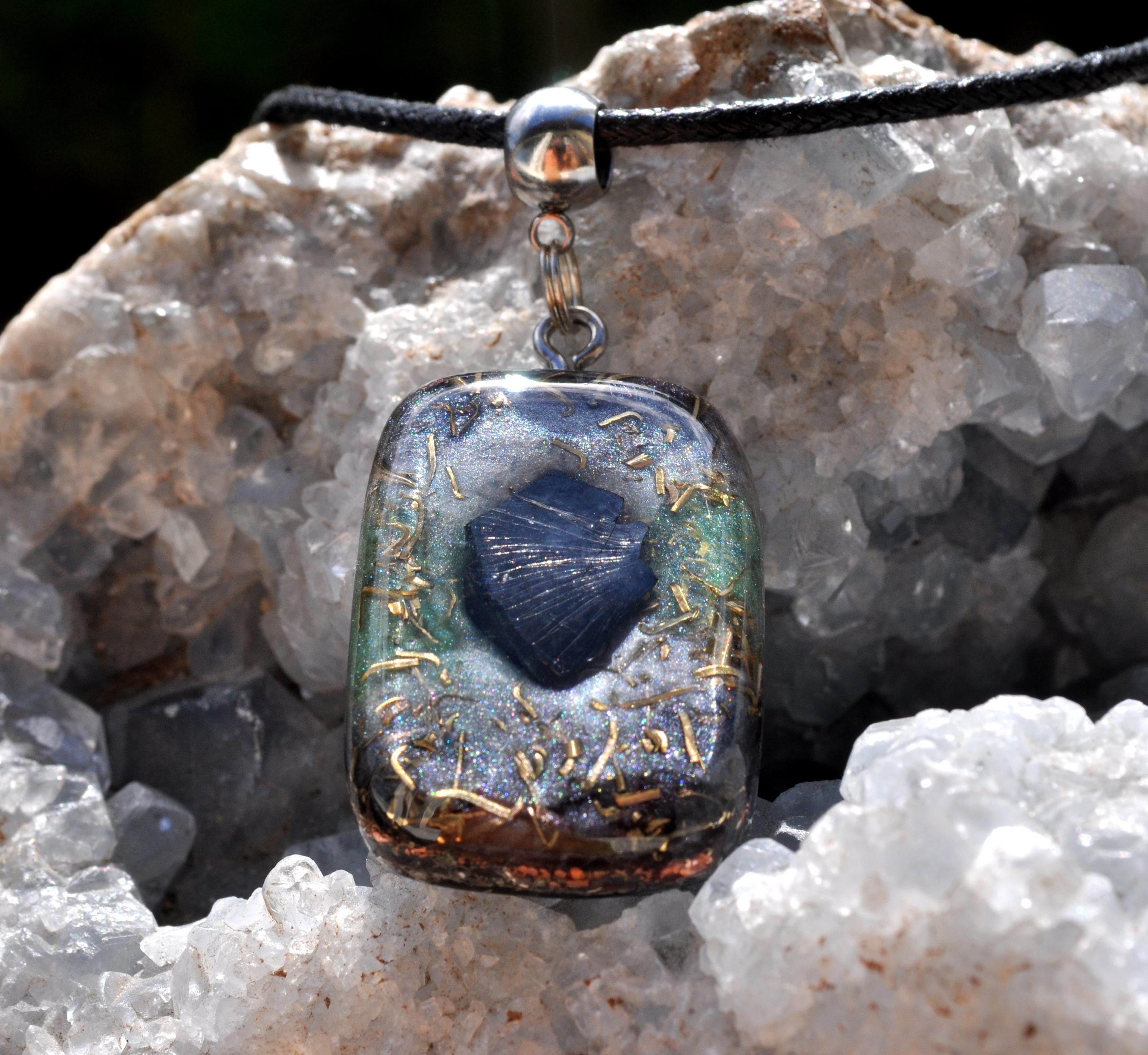 Orgone also includes an encased quartz crystal which has a piezoelectric effect (it produces a small electric charge when put under pressure). This adds to the energy-cleansing effect.