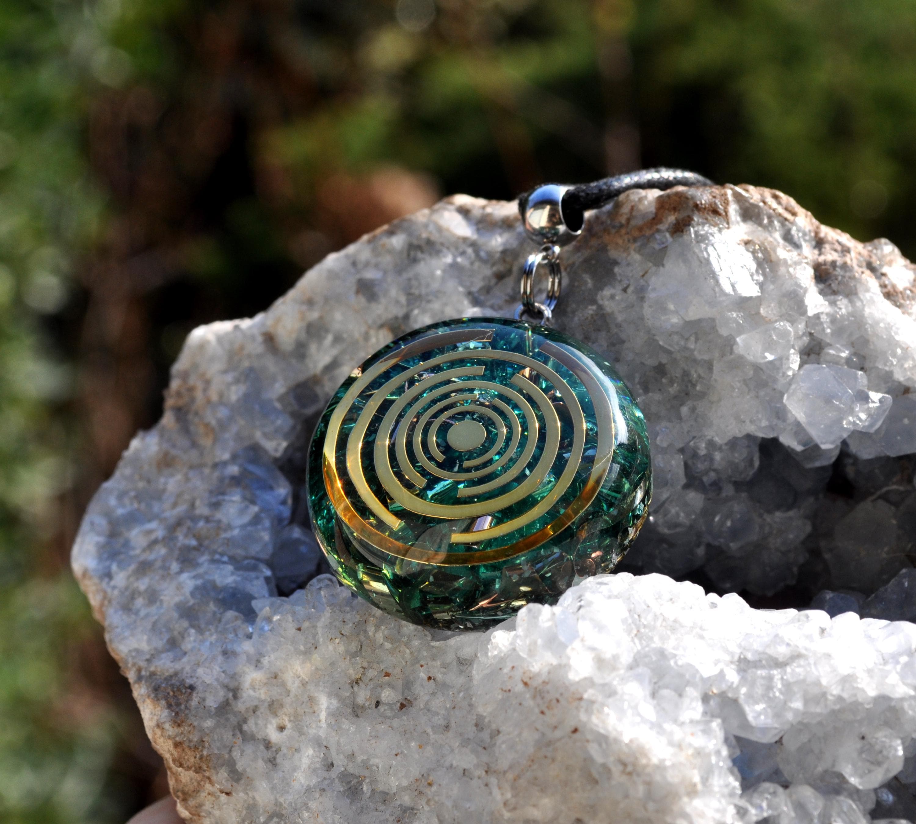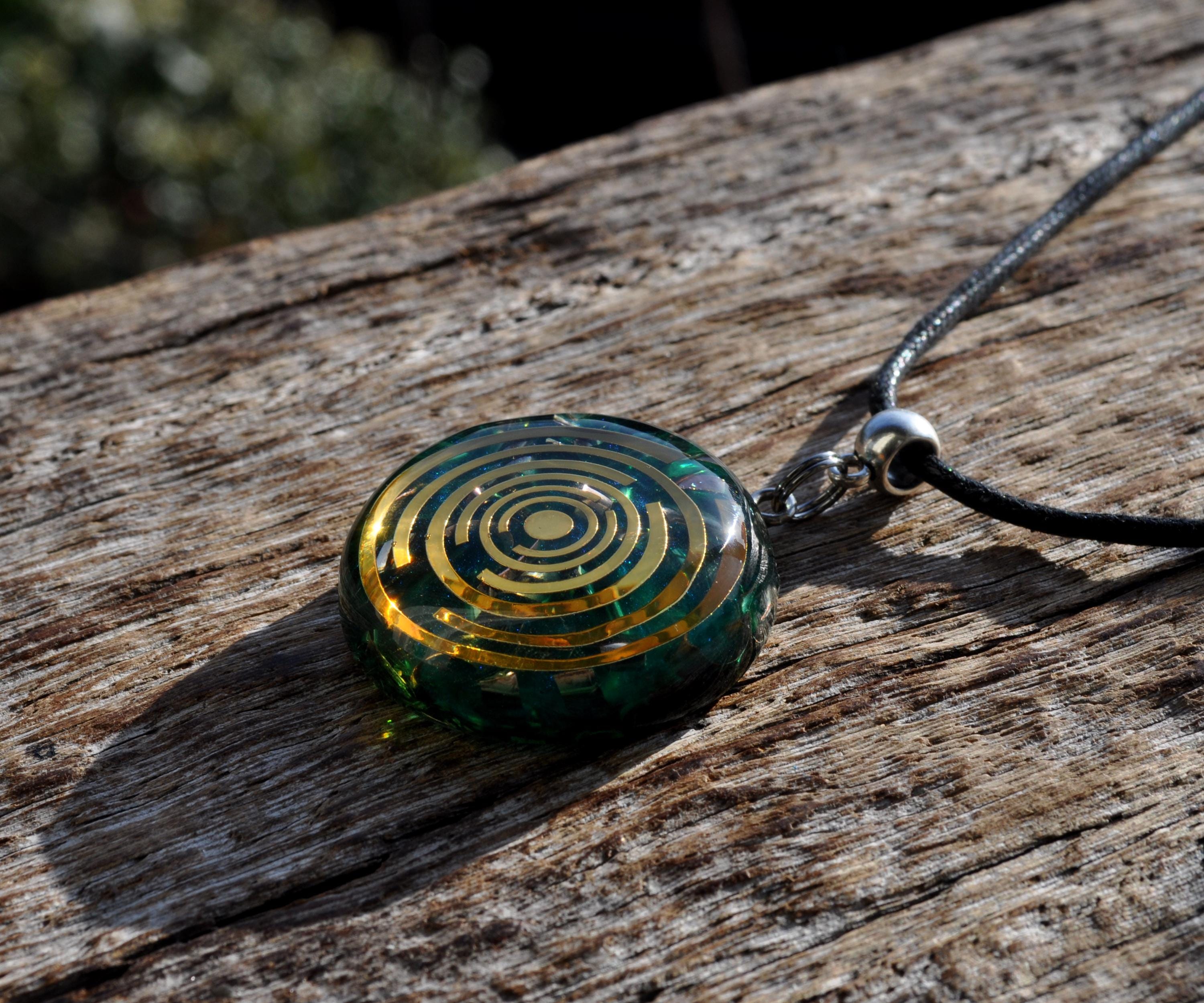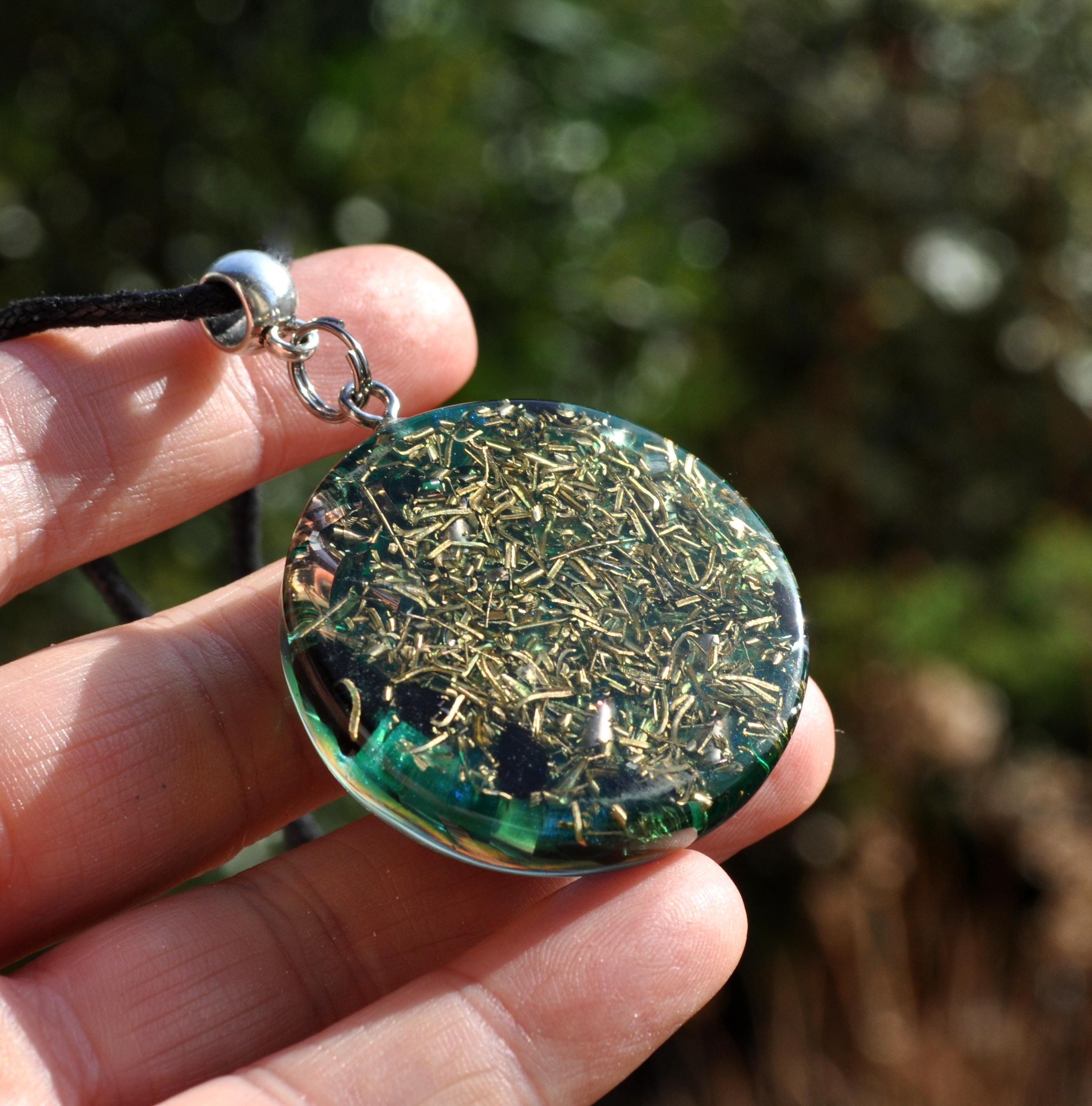 Elevate your style and energy with this handmade orgonite pendant, featuring a stunning copper-plated Lakhovsky Multi-Wave Oscillator (MWO) on the front. Crafted with emerald green resin, abundant metal shavings, and a powerful blend of healing crystals, this one-of-a-kind pendant is both a beautiful accessory and a tool for positive energy. Perfect for those who love spiritual jewelry, EMF protection, or simply unique handmade designs!