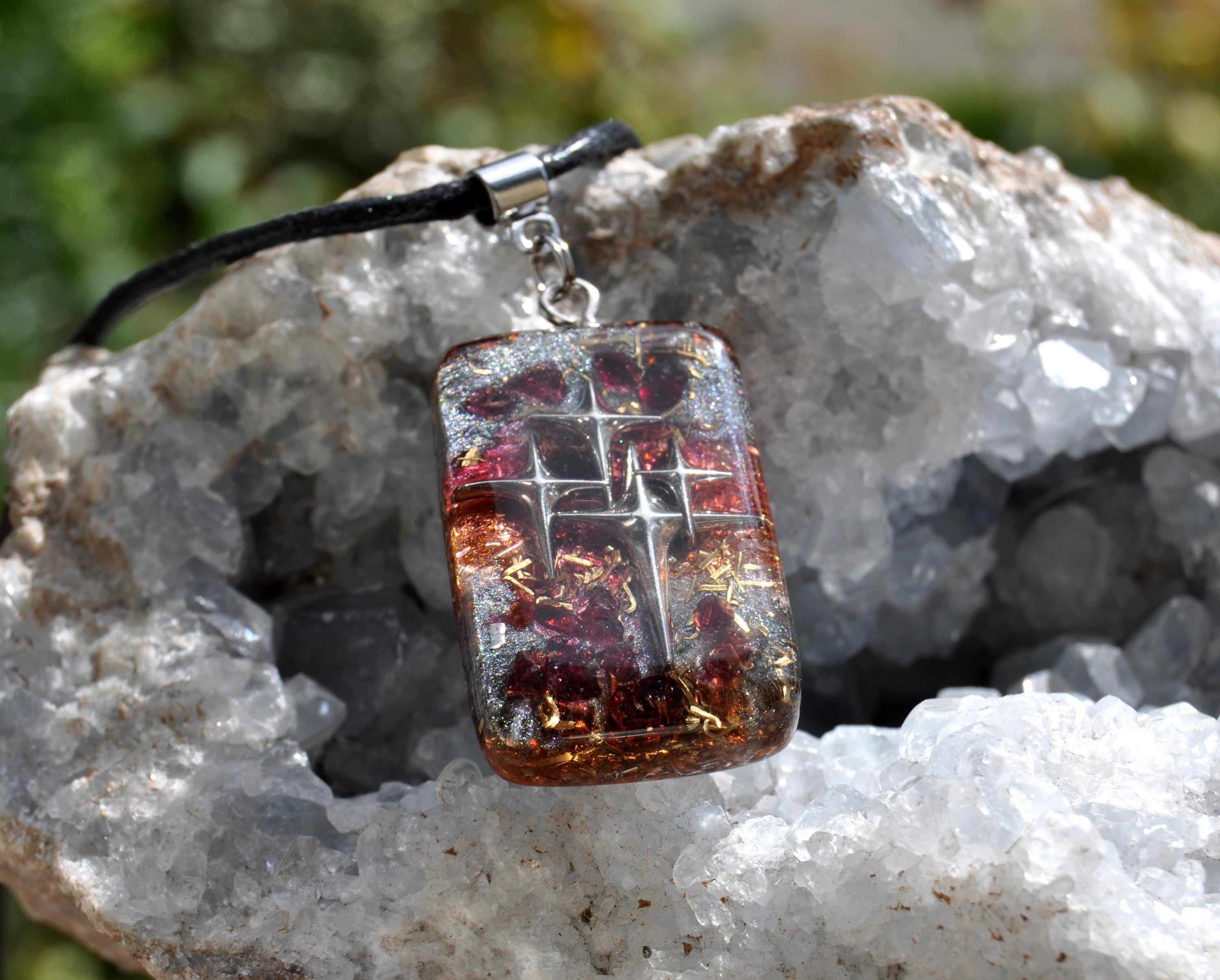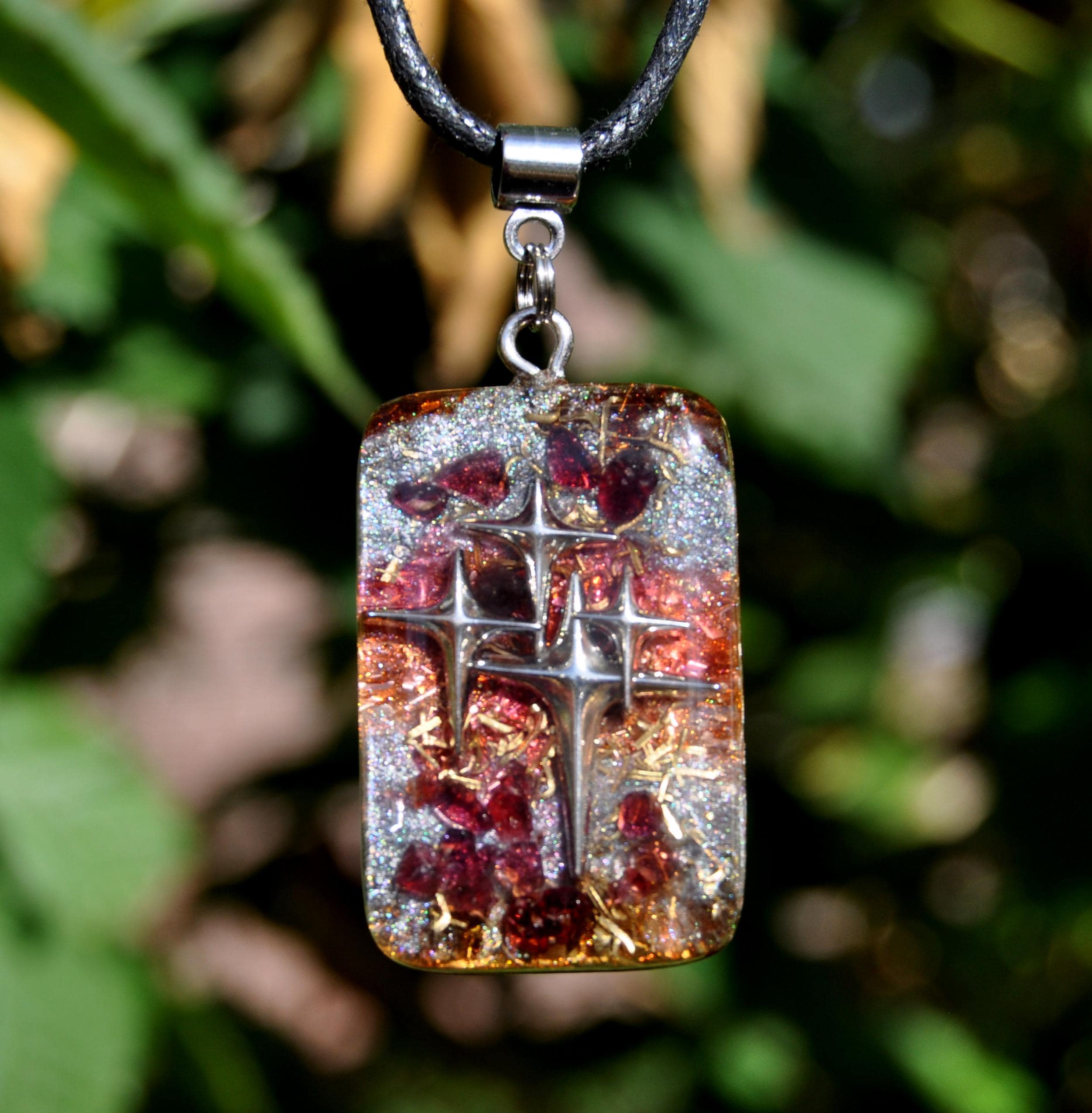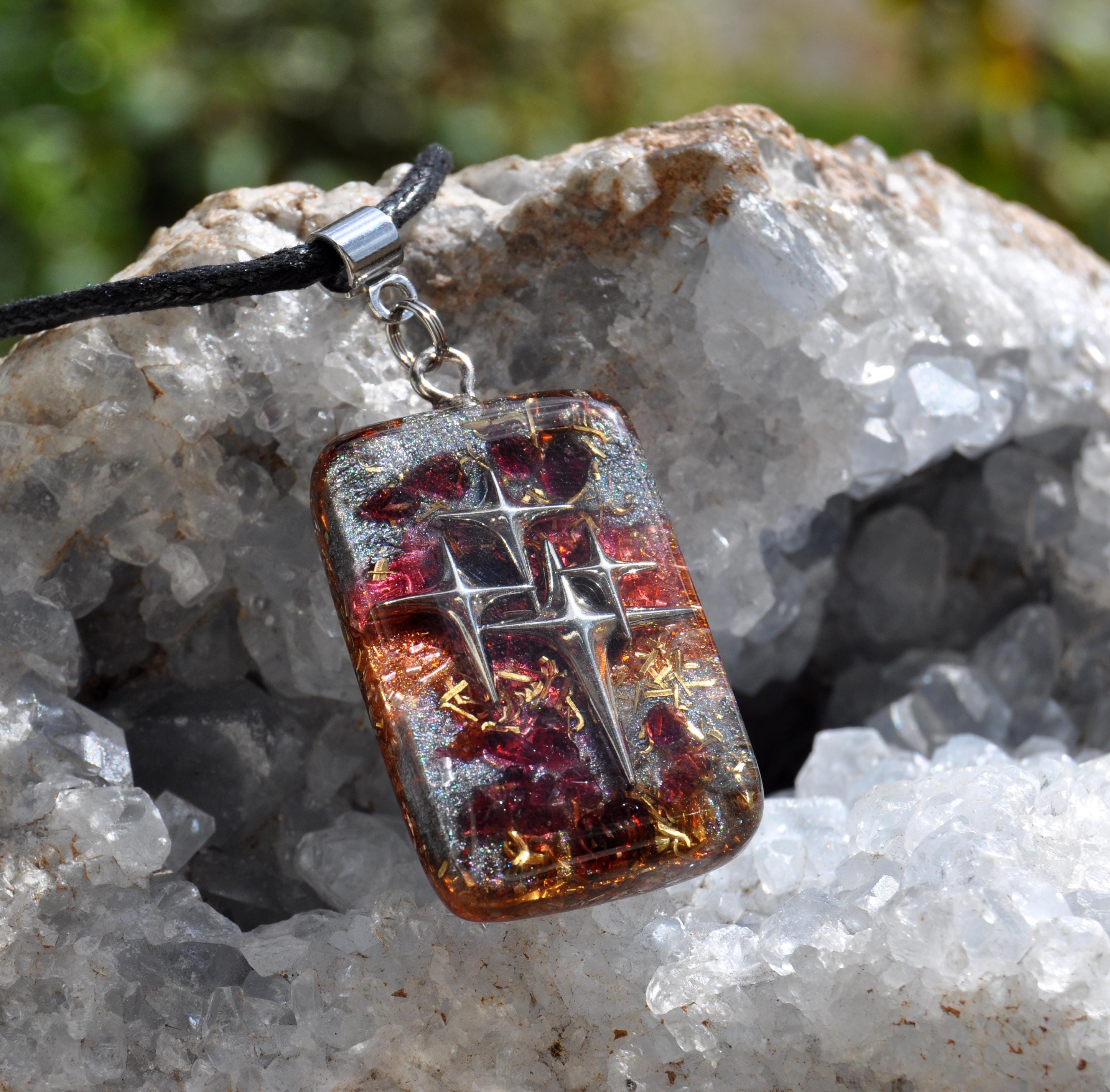 Spiritual seekers, crystal enthusiasts, and anyone drawn to celestial symbolism and grounding energy. This Red Garnet Orgonite® necklace makes a meaningful gift for meditation practitioners, artists, or those exploring personal transformation.