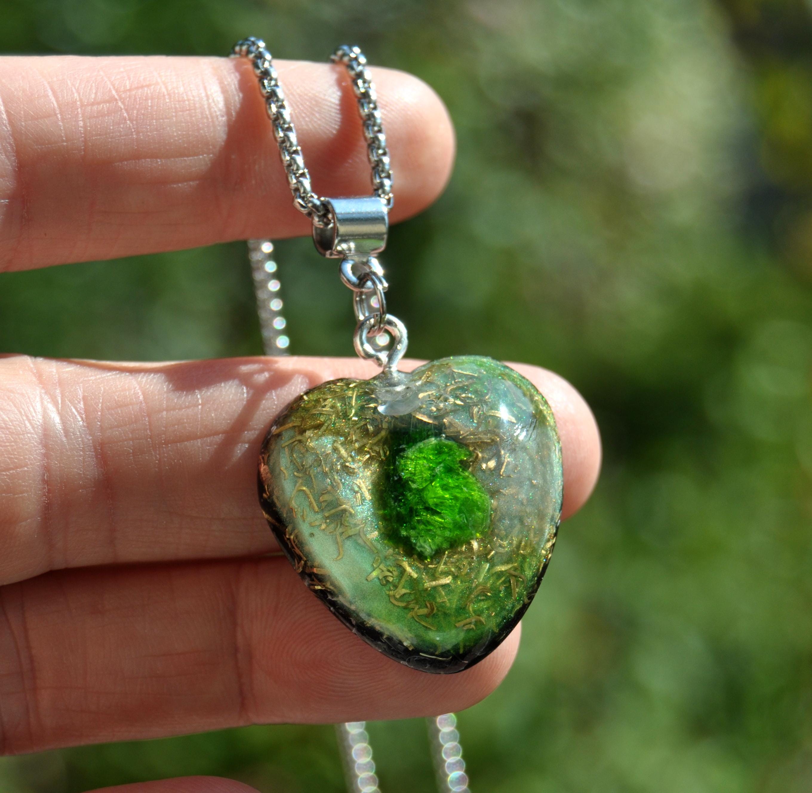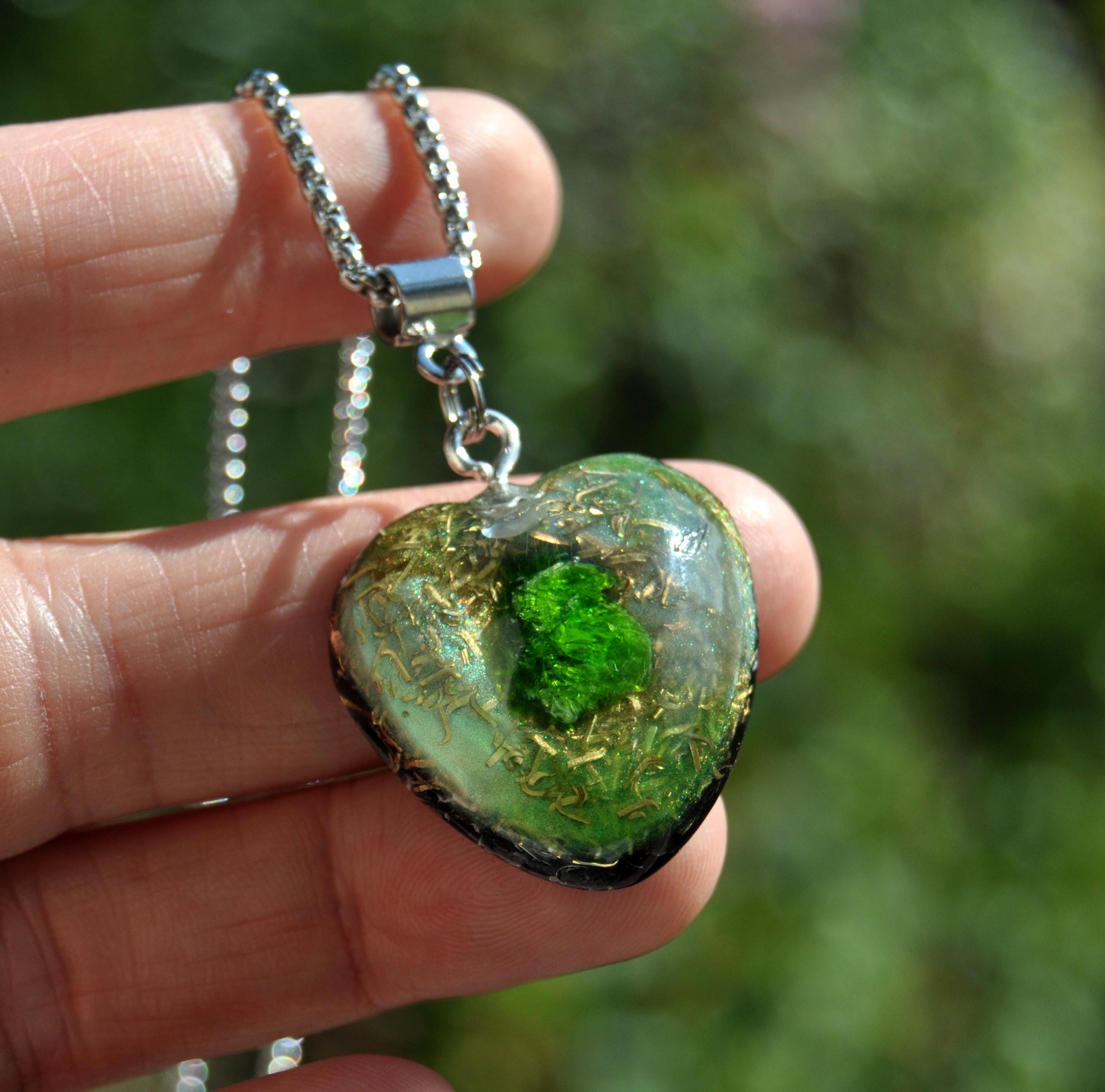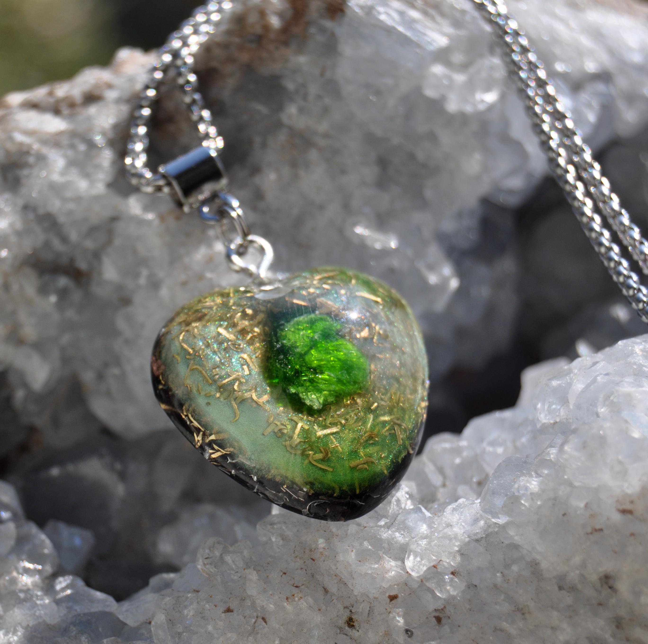 š Heart-Shaped Chrome Diopside OrgoniteĀ® Pendant