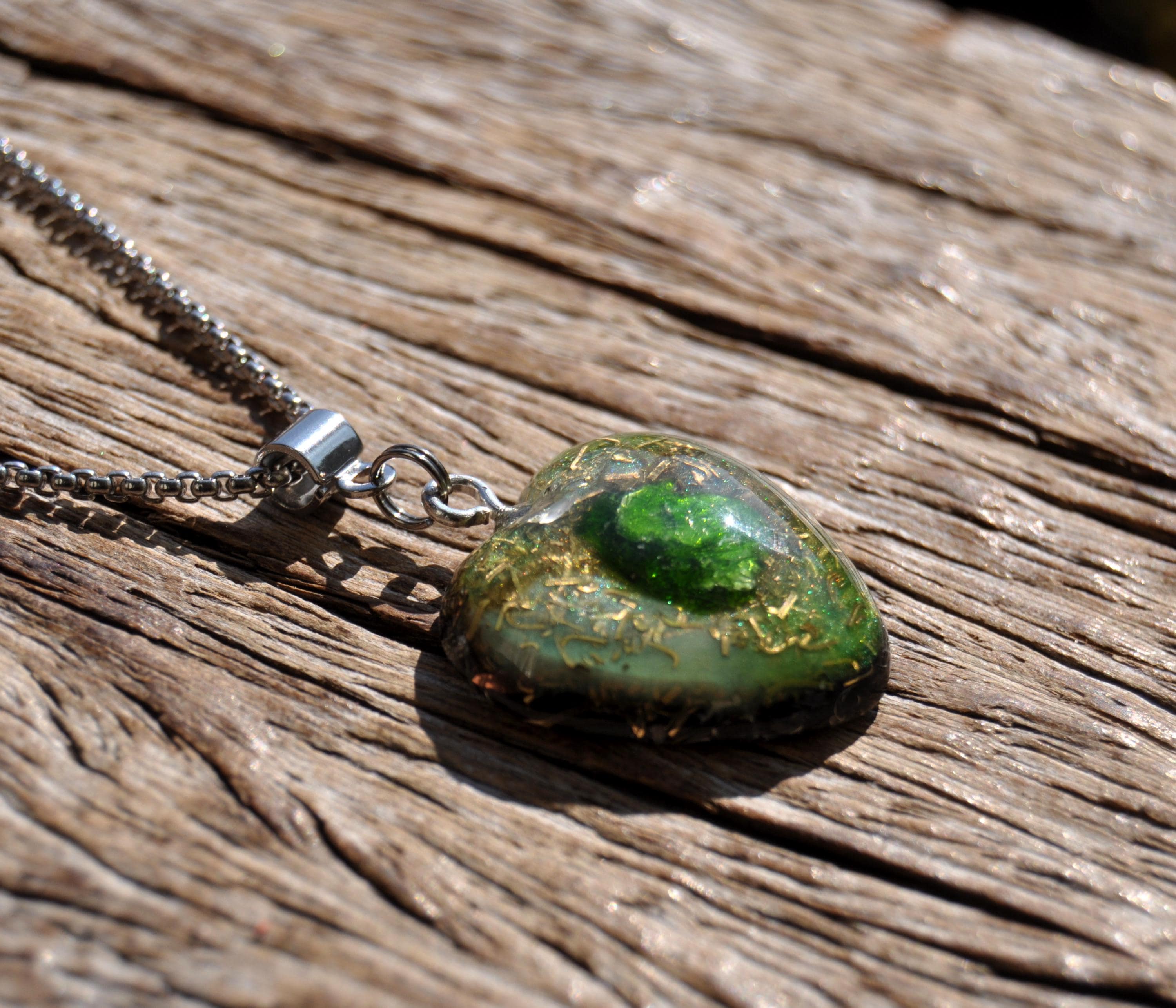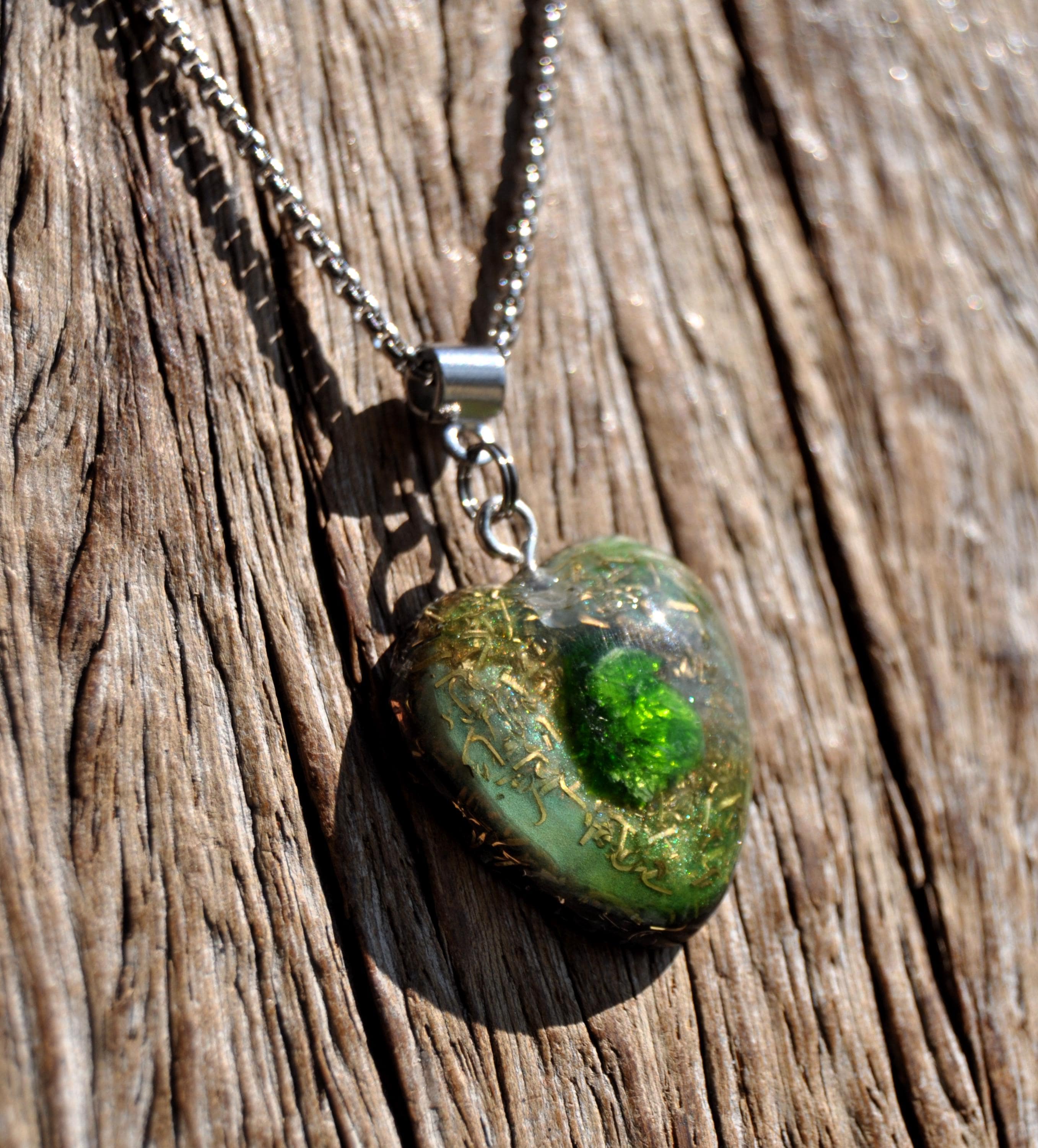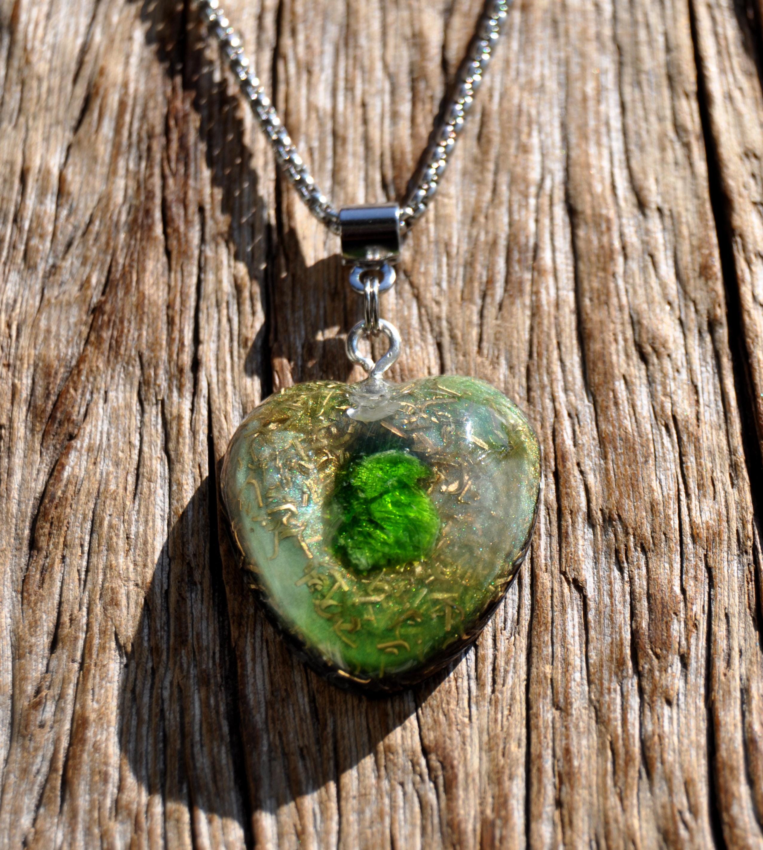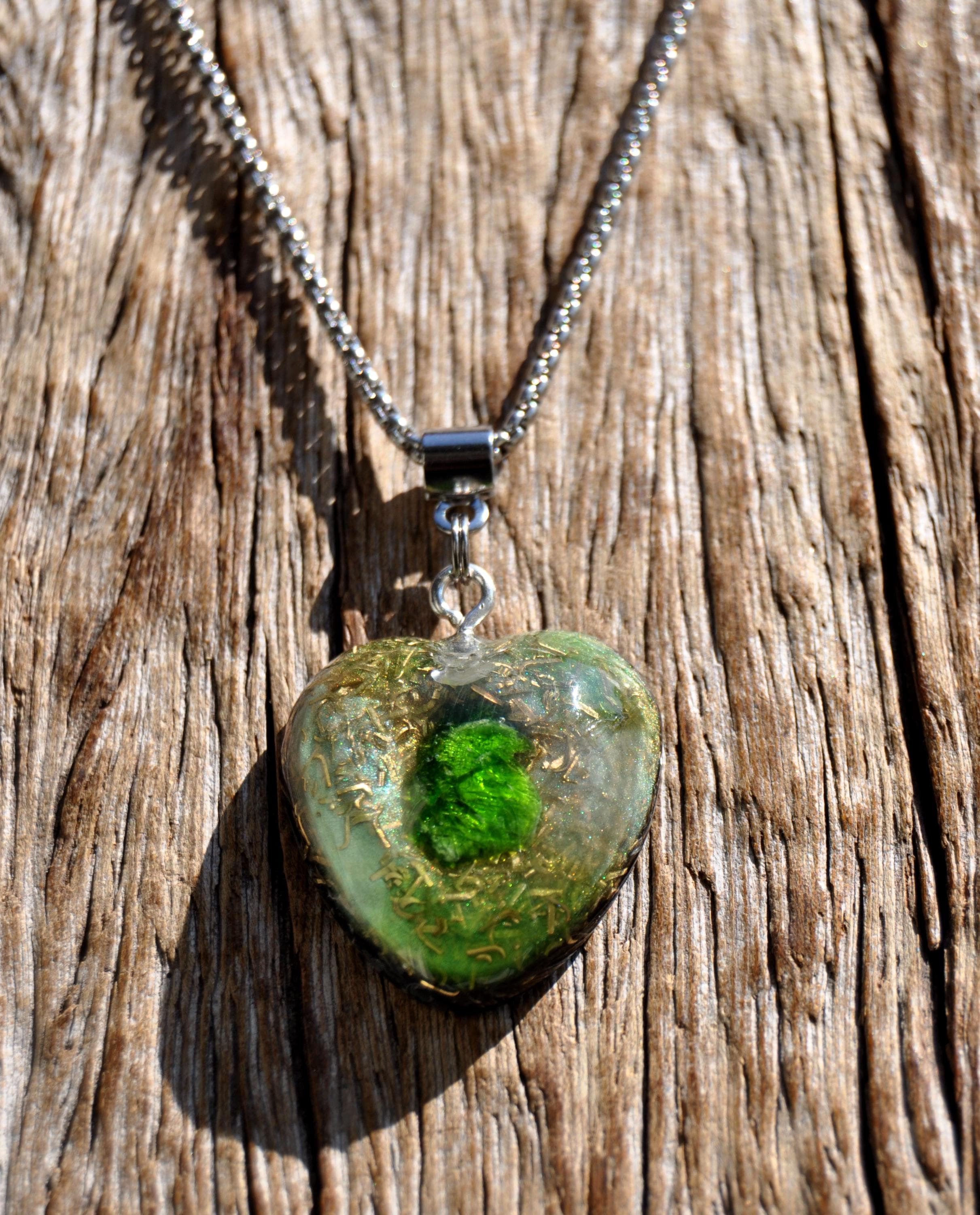 š Heart-Shaped Chrome Diopside OrgoniteĀ® Pendant
