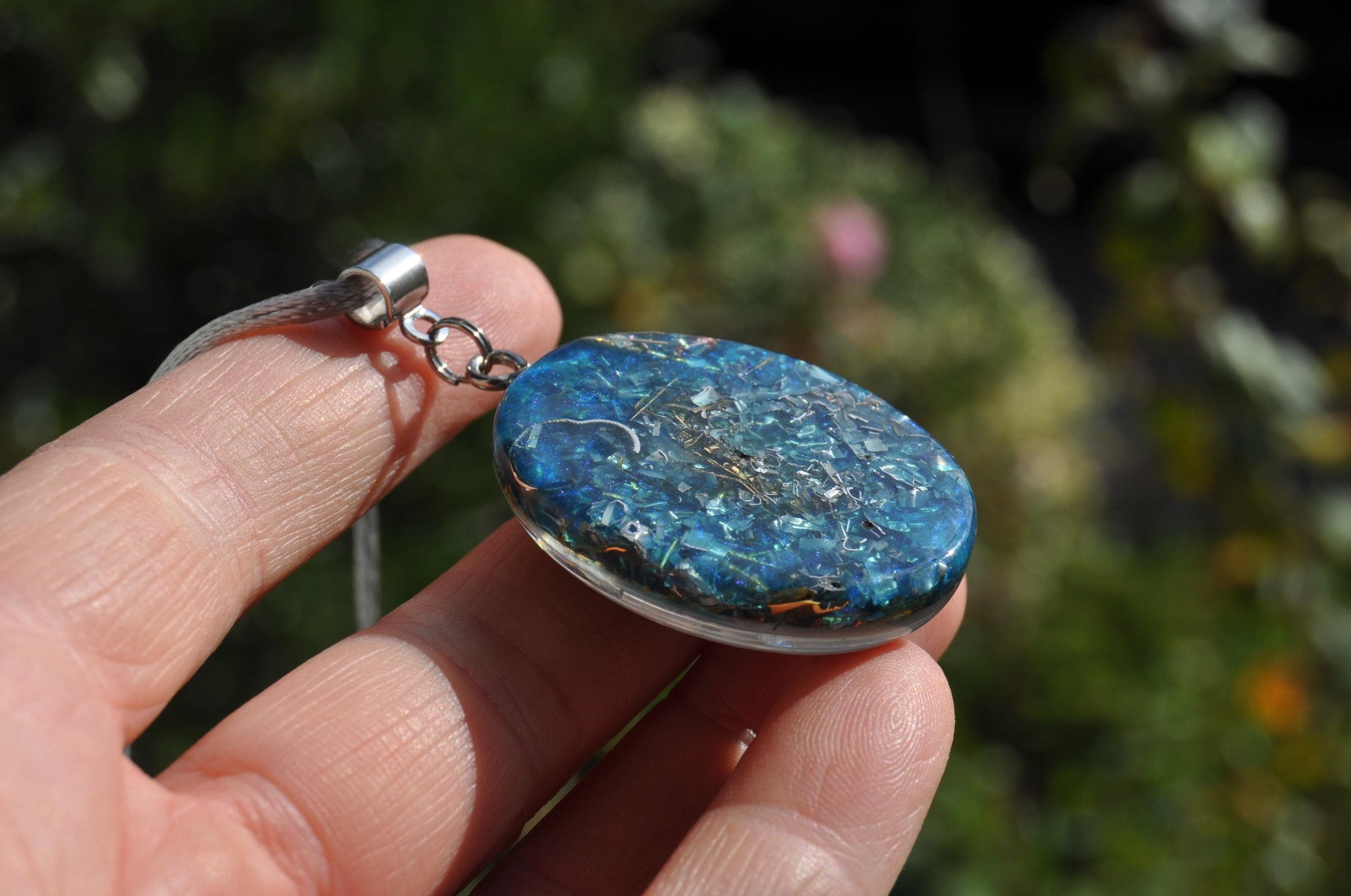 Introducing this handcrafted Orgonite® pendant, carefully designed to merge aesthetic beauty with energy-balancing functionality. This unique piece features a blend of metals—including aluminum, bronze, brass, and copper shavings—encased in durable resin at the optimal 50/50 metal-to-resin ratio, creating a powerful energy harmonizer and visually stunning centerpiece.