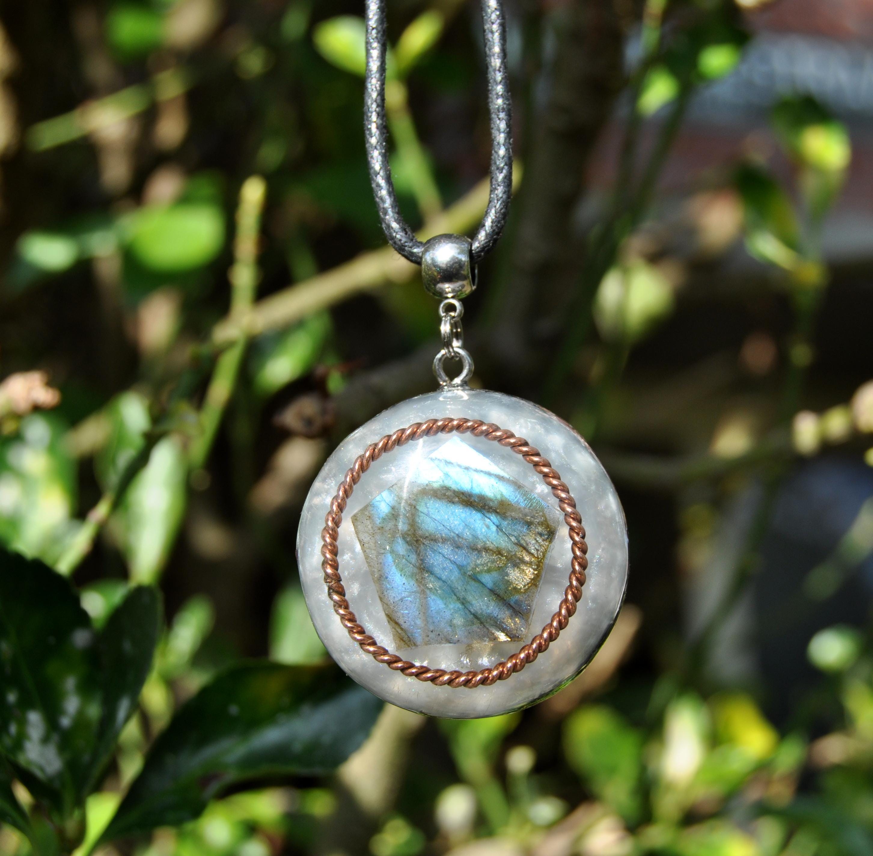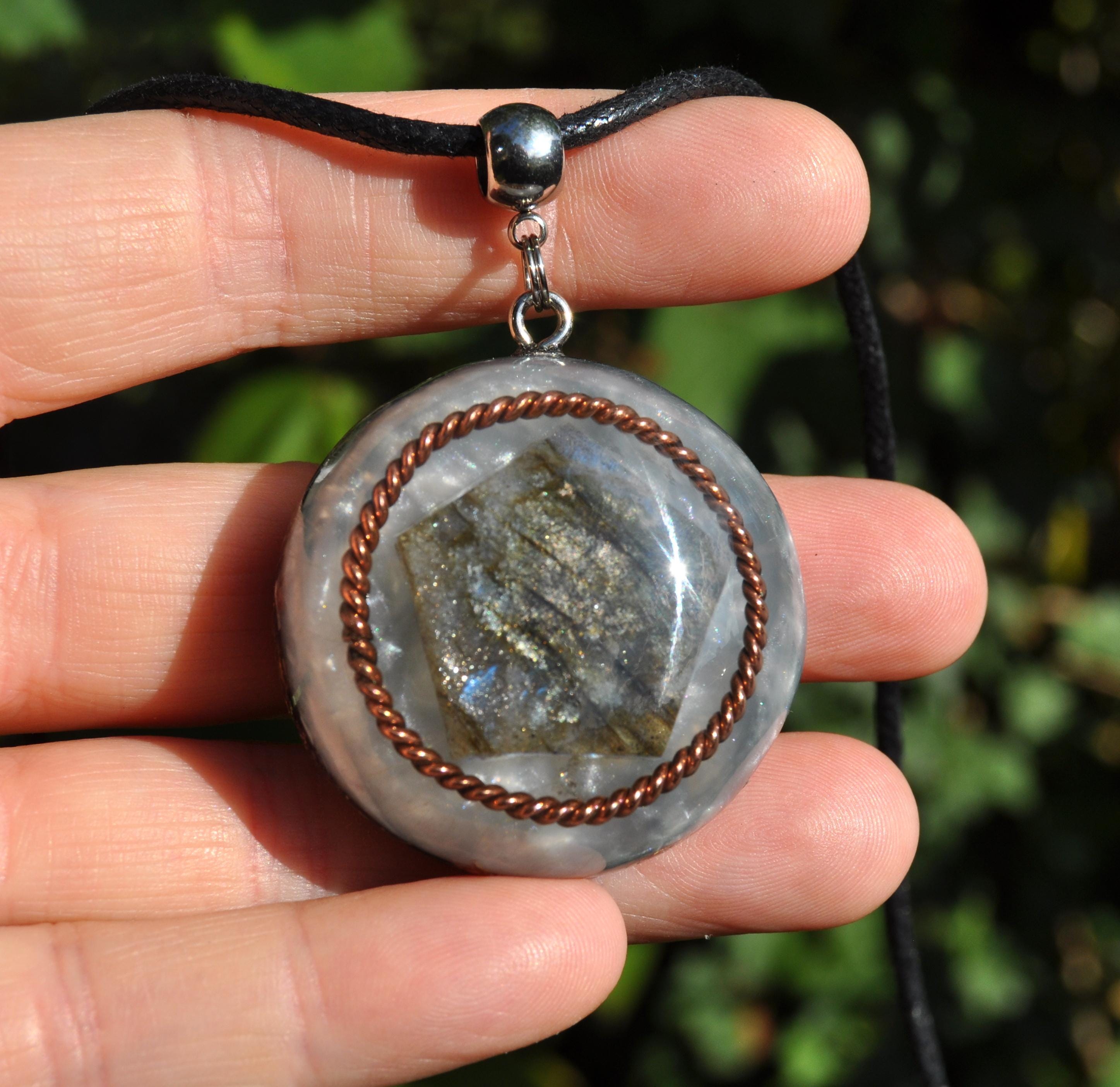 ✨ Orgonite Pendant with Copper Tensor Ring & Labradorite ✨