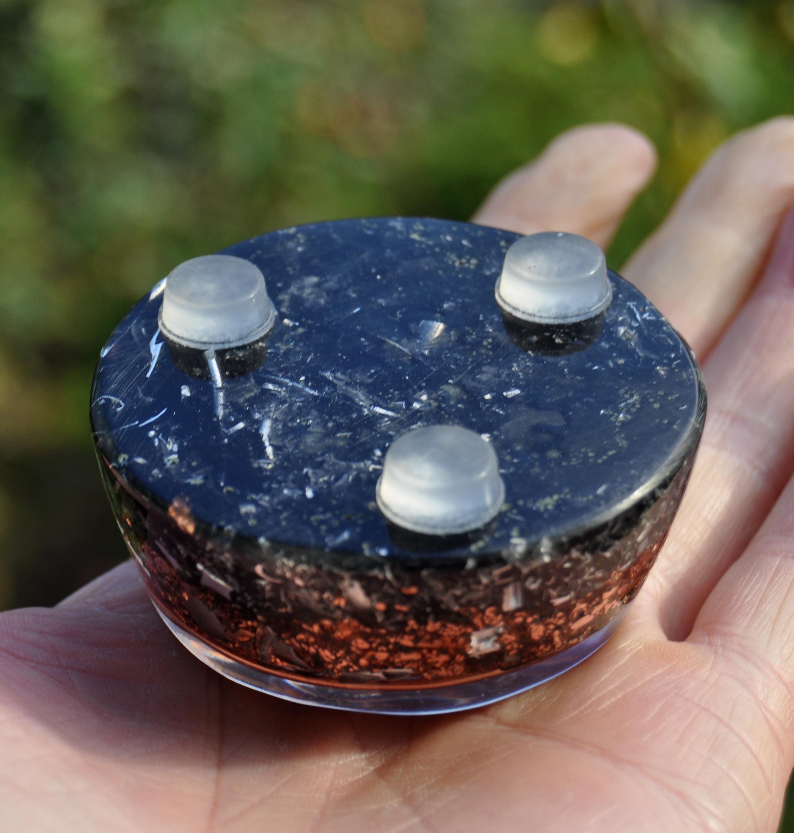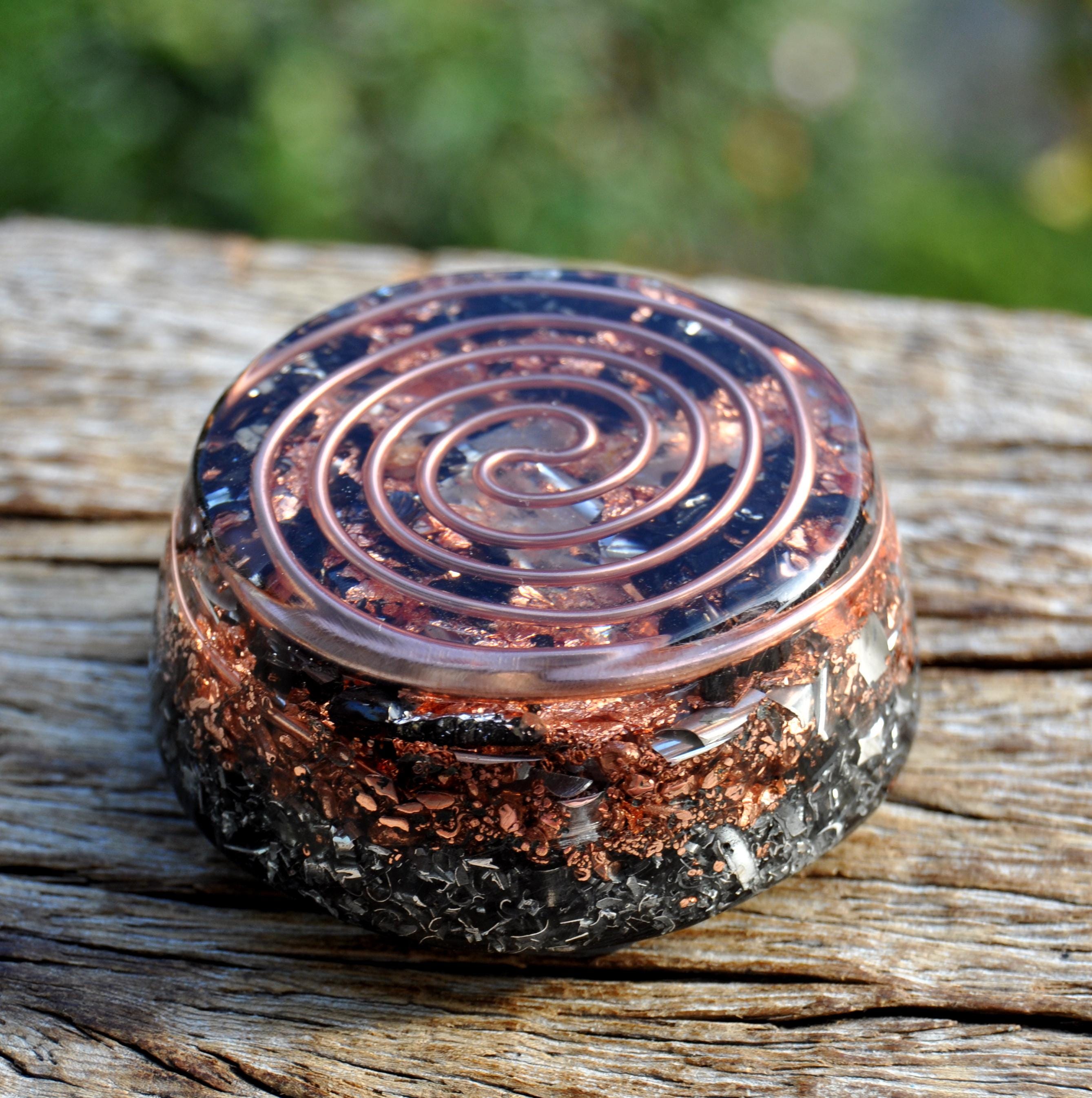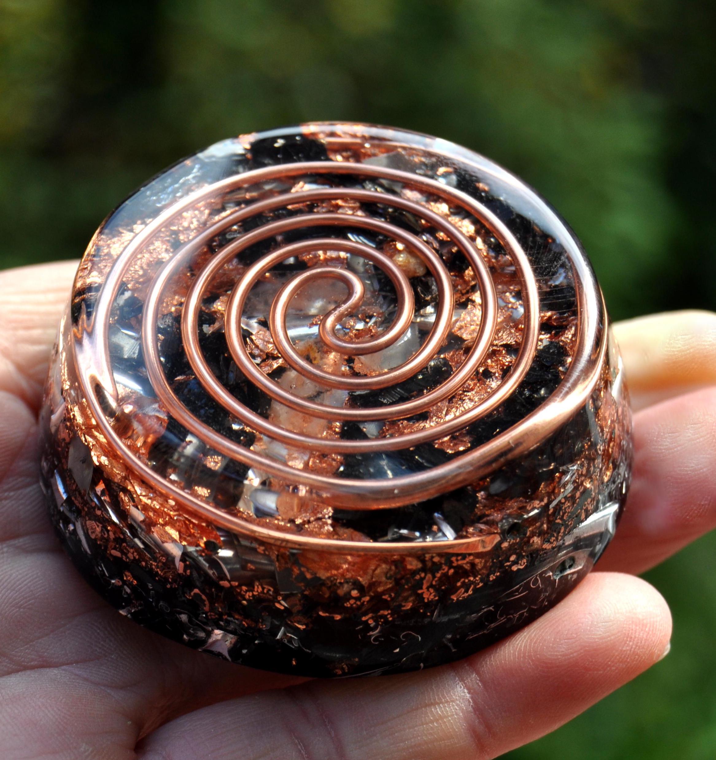 Orgone energy (also known as chi, prana, or ether) is life-force energy. Devices like this Orgonite® Tower Buster are made with layers of resin (organic) and metal (inorganic), plus quartz, creating a matrix that is believed to: