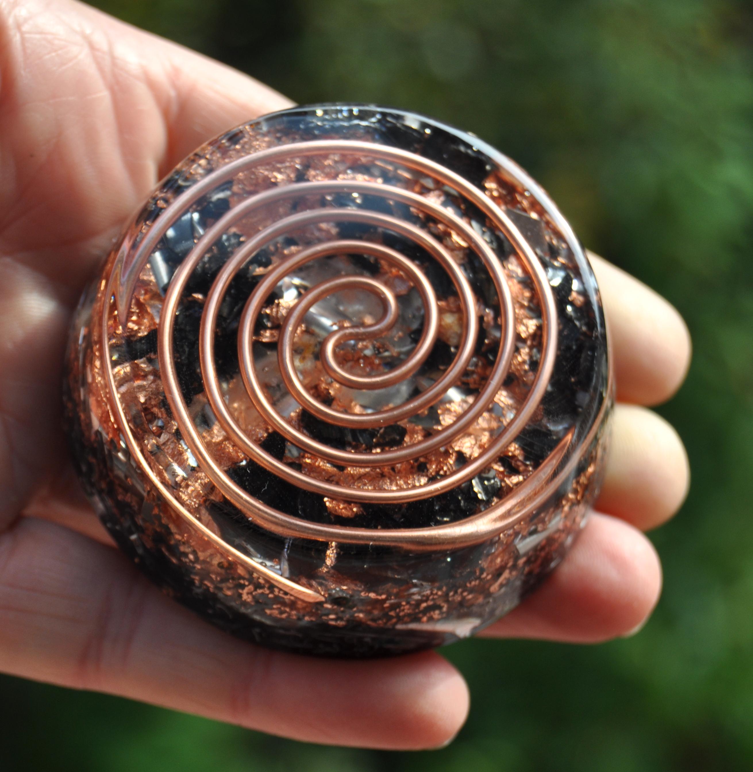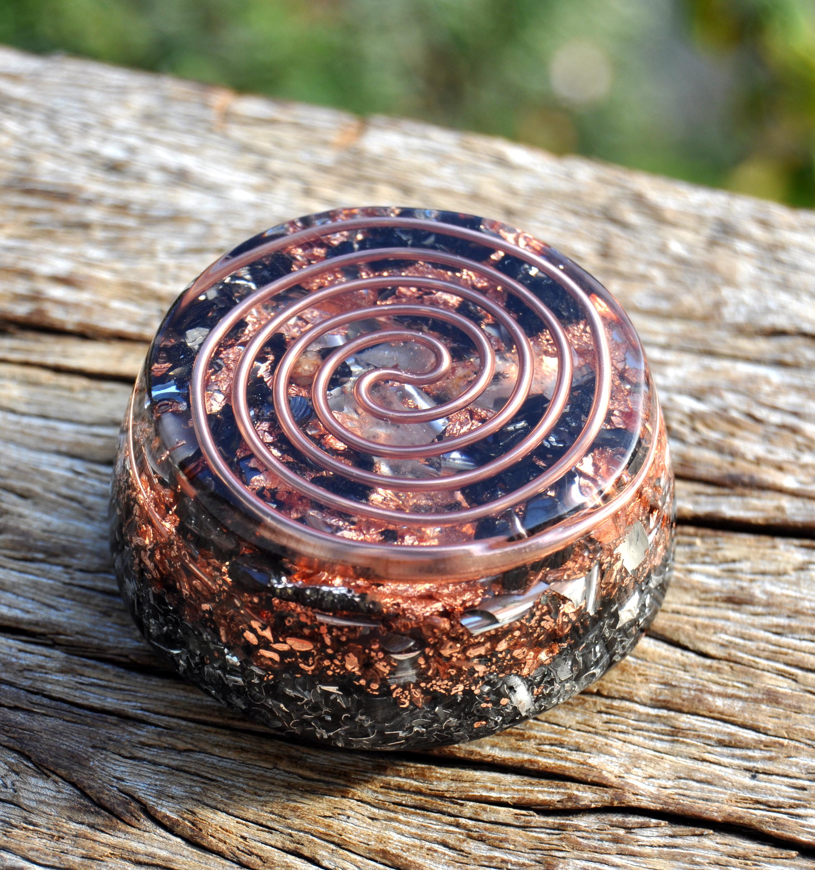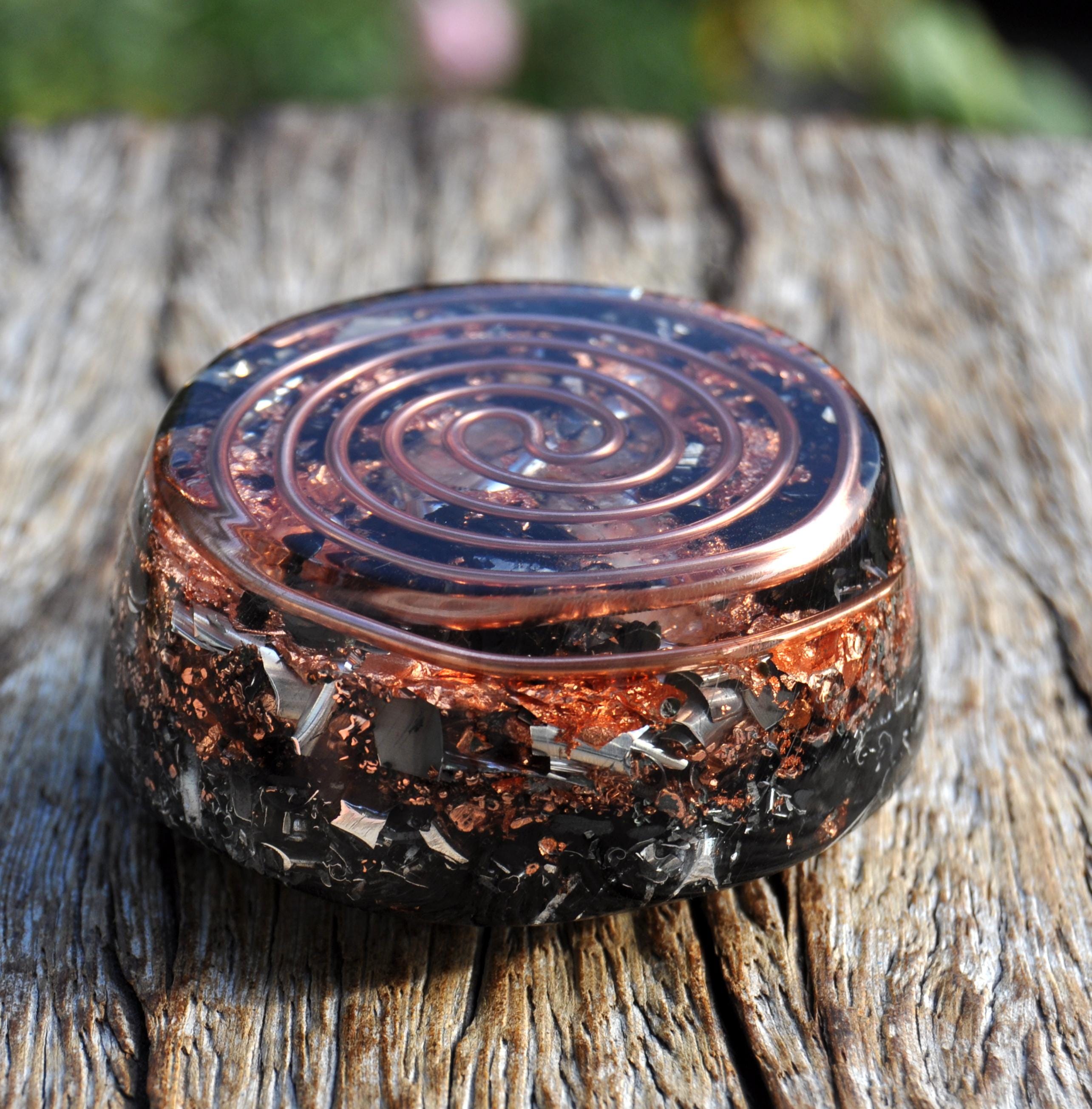 Orgone energy (also known as chi, prana, or ether) is life-force energy. Devices like this Orgonite® Tower Buster are made with layers of resin (organic) and metal (inorganic), plus quartz, creating a matrix that is believed to: