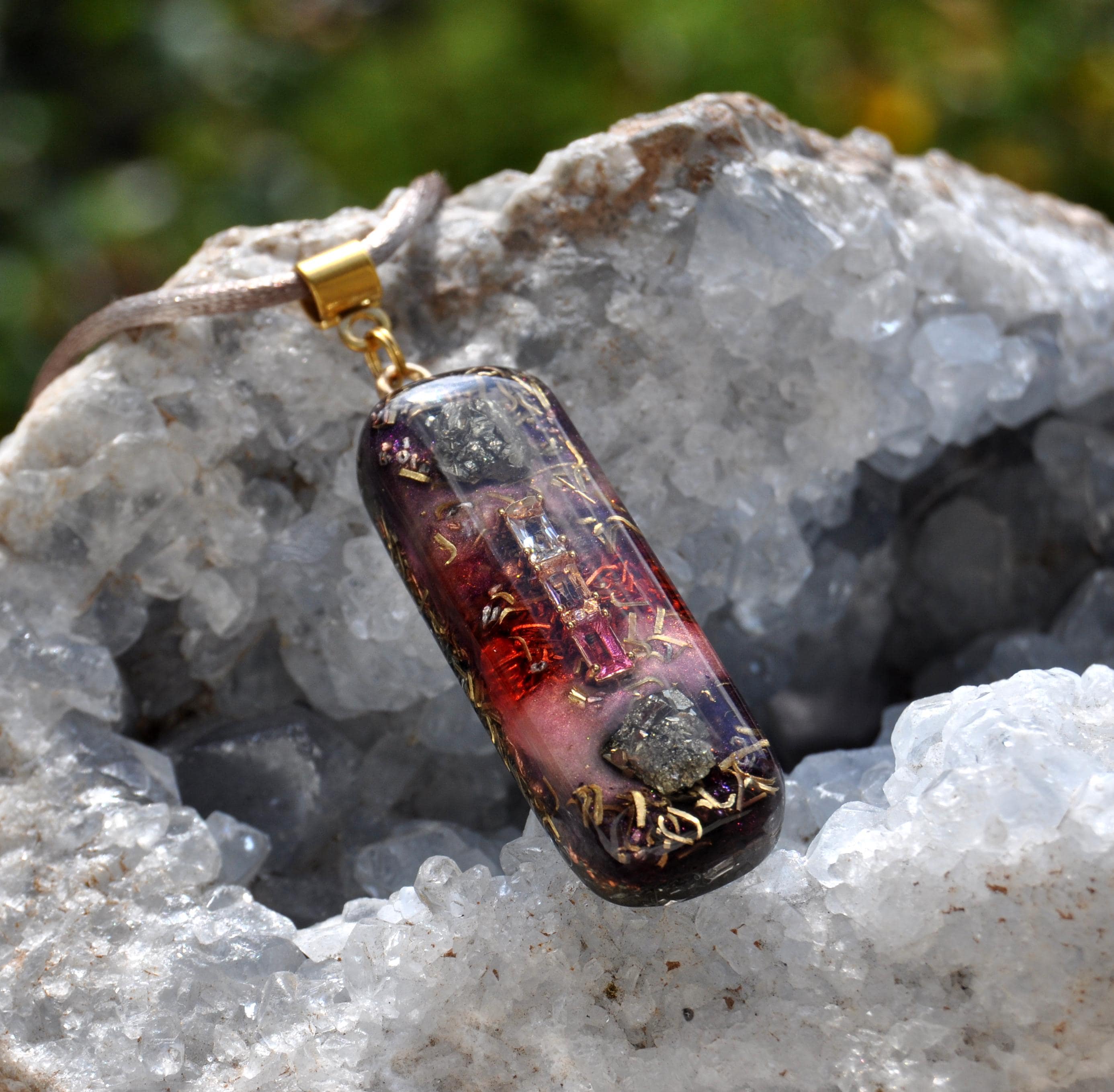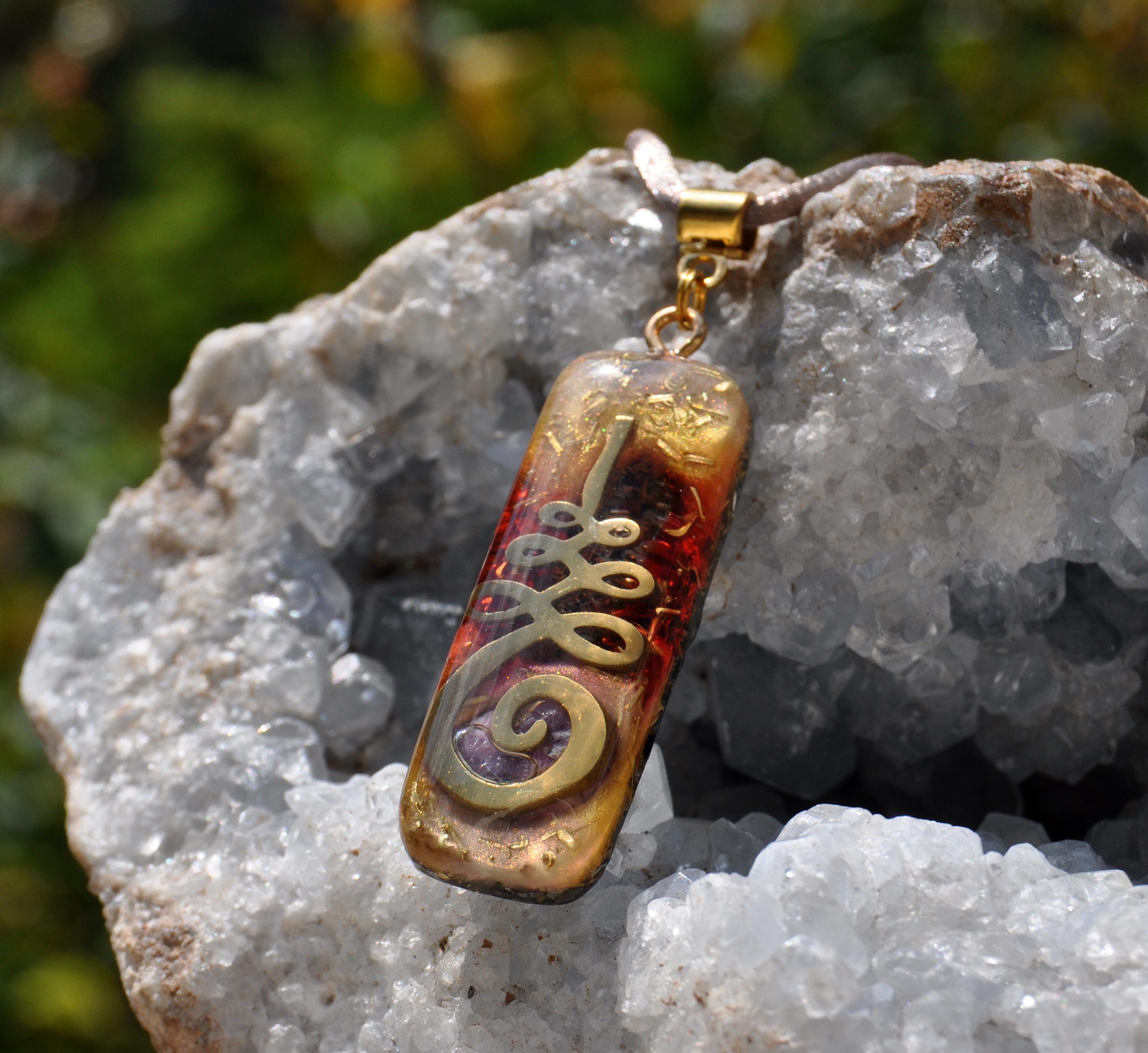Custom Orgonite Pendant Set – Umalome with Ruby & Decorative Crystal with Pyrite – Handmade Crystal Jewelry