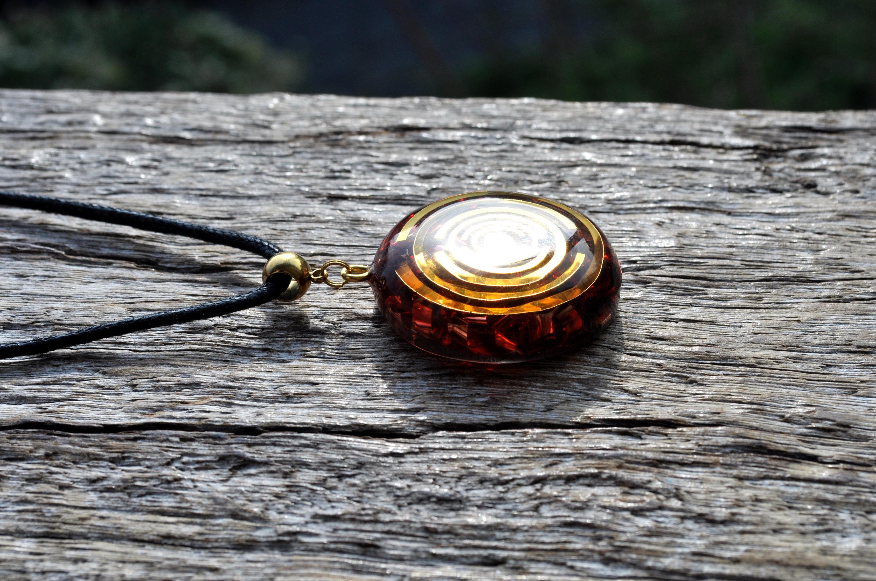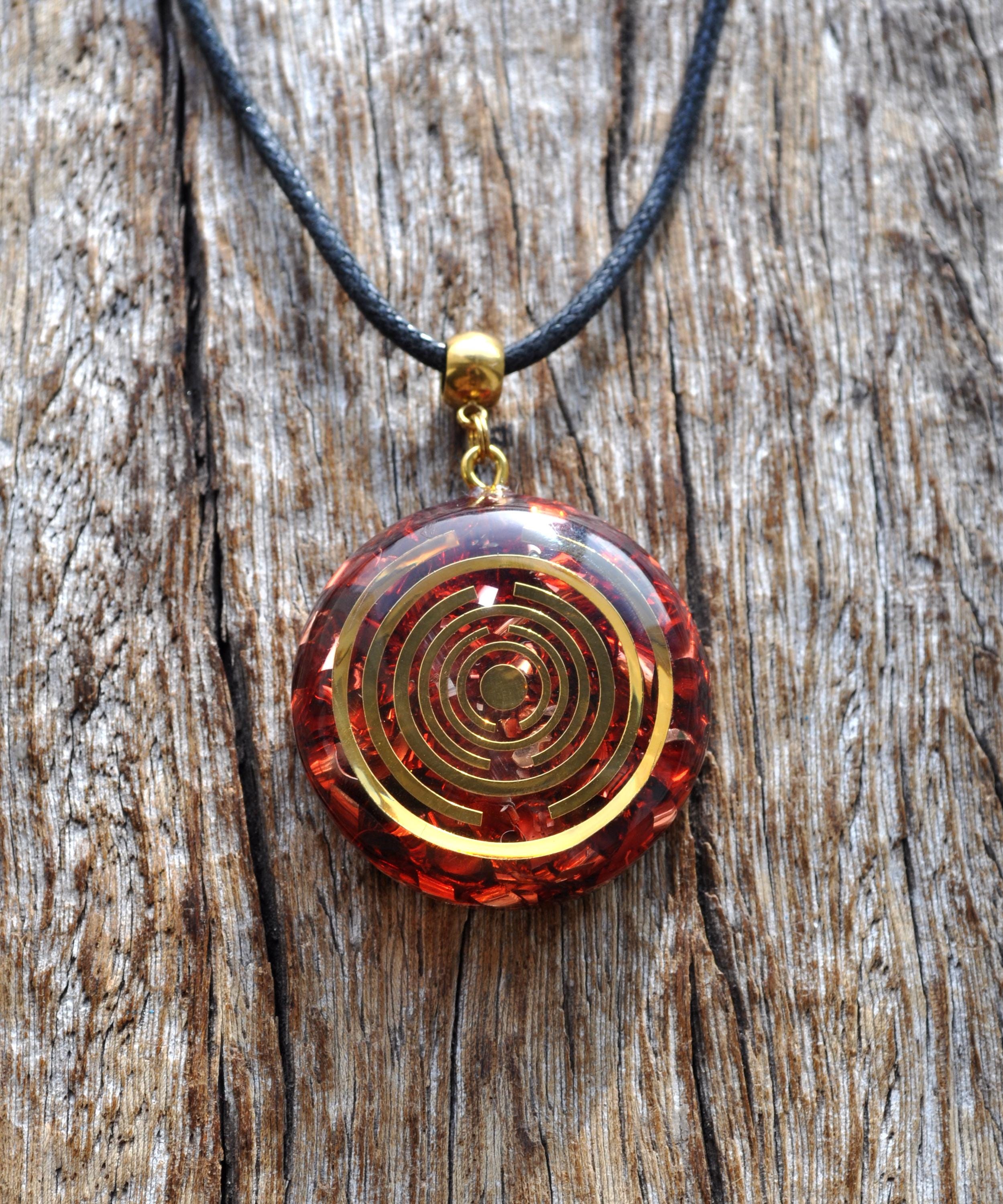 This special orgonite pendant features a striking copper-plated Lakhovsky Multi-Wave Oscillator (MWO) symbol right in the center. Made with clear resin, metal shavings, and a powerful mix of natural crystals, every piece is unique, glossy, and full of charm.
