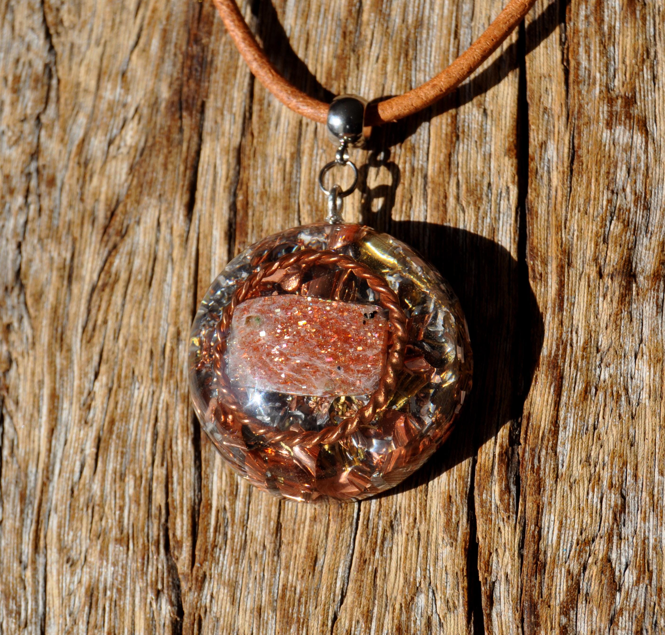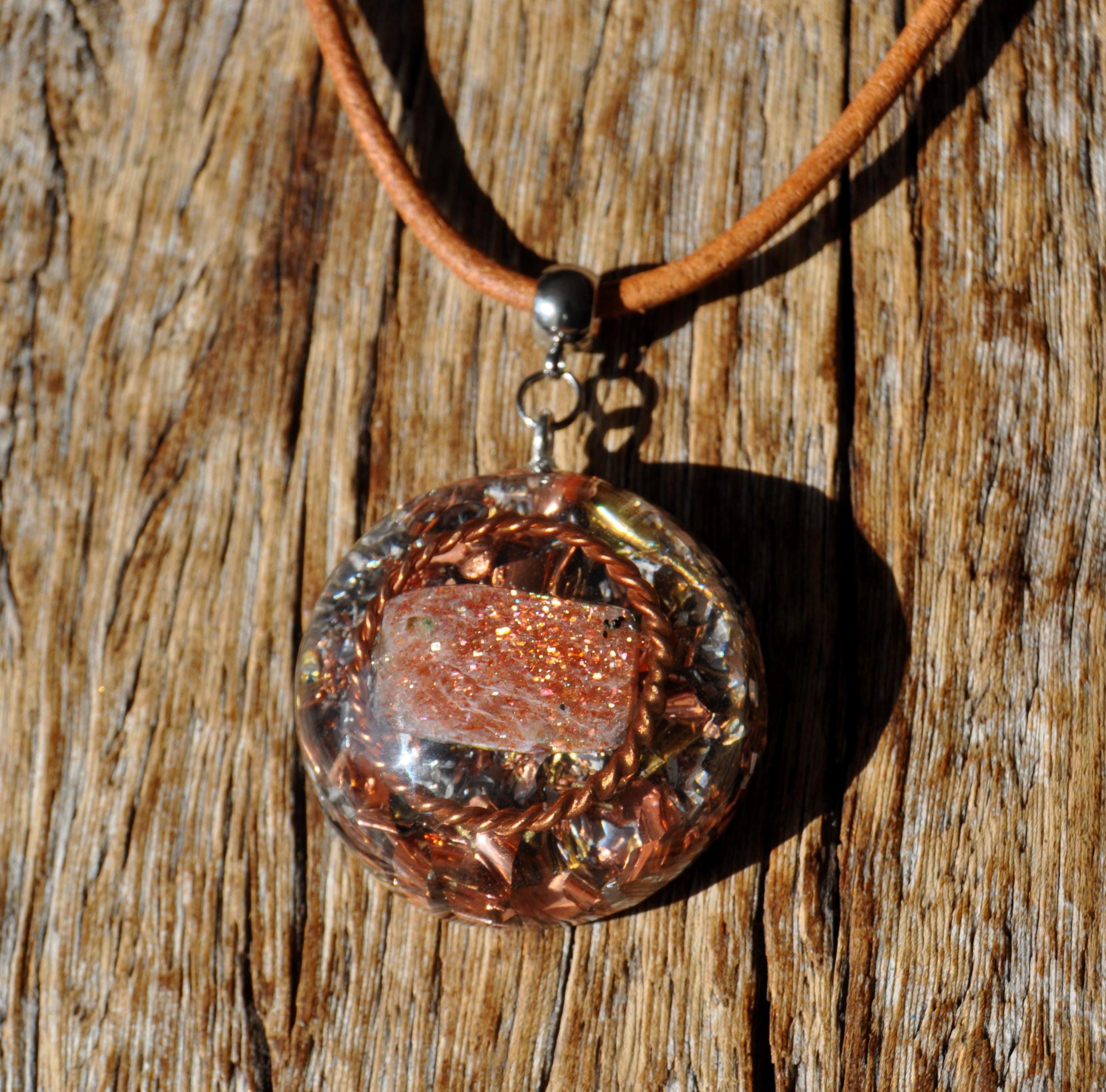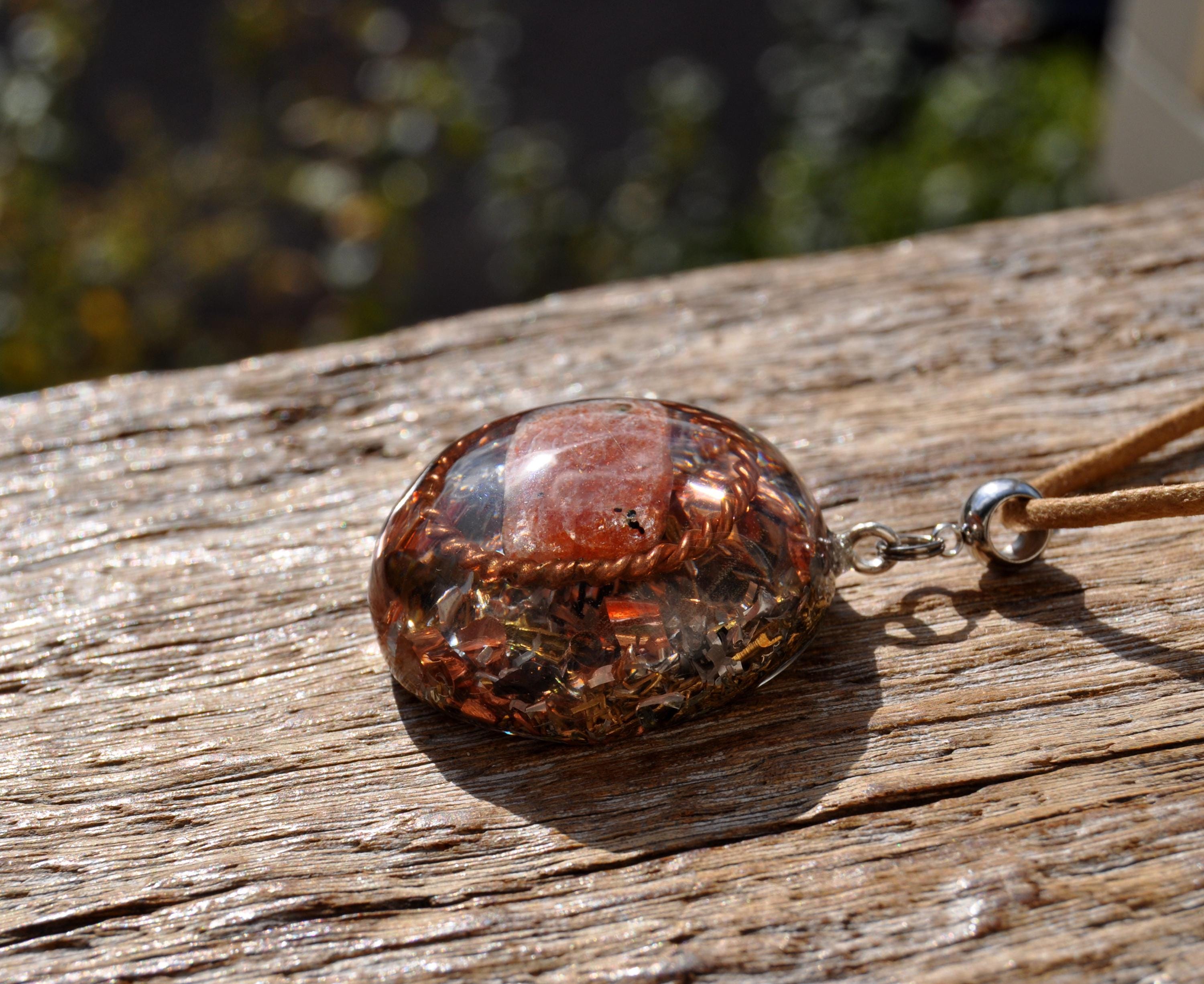 š Handmade Orgonite Sunstone Necklace with Copper Tensor Ring ā Uplifting Energy, Positivity & Balance