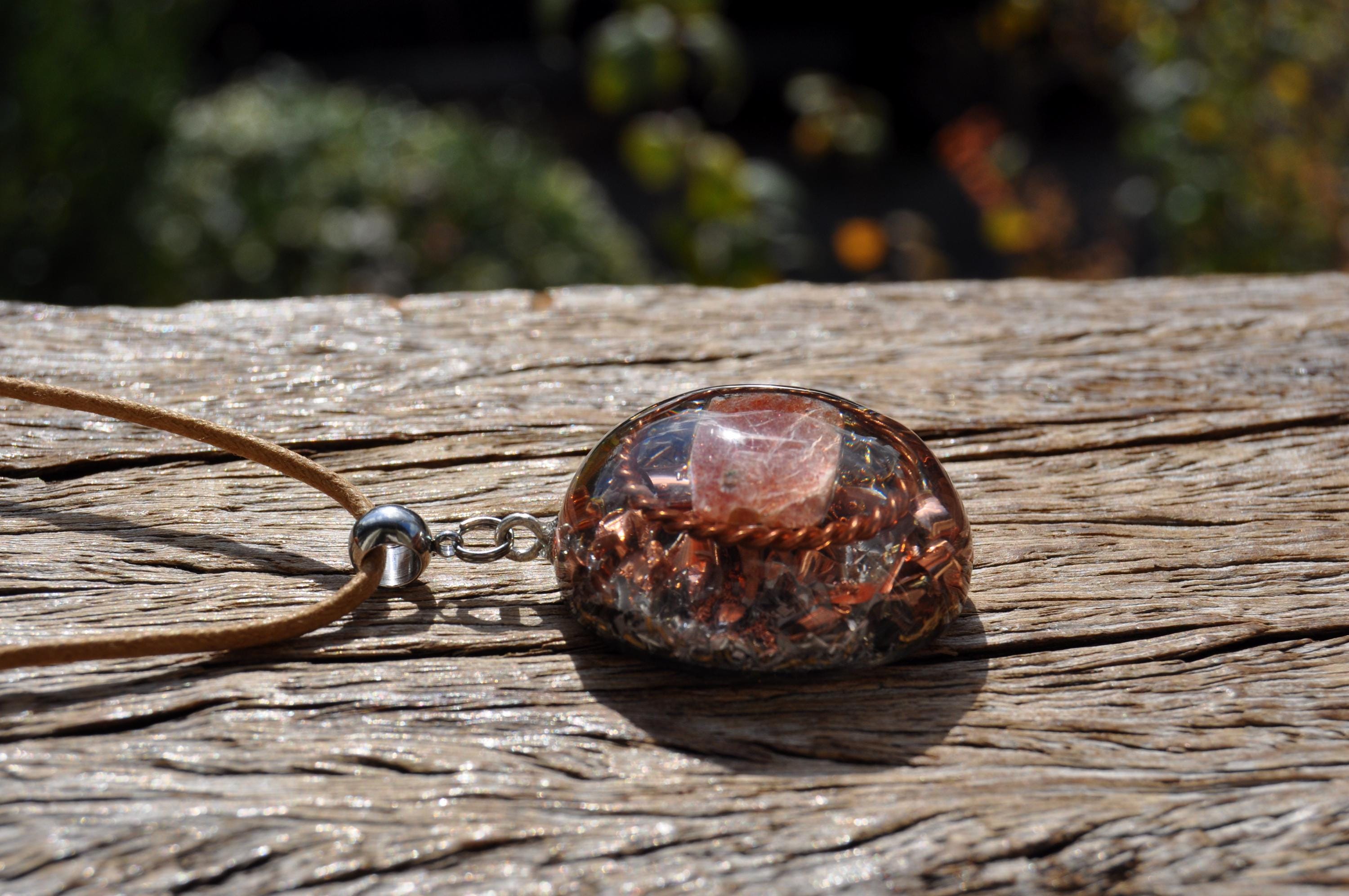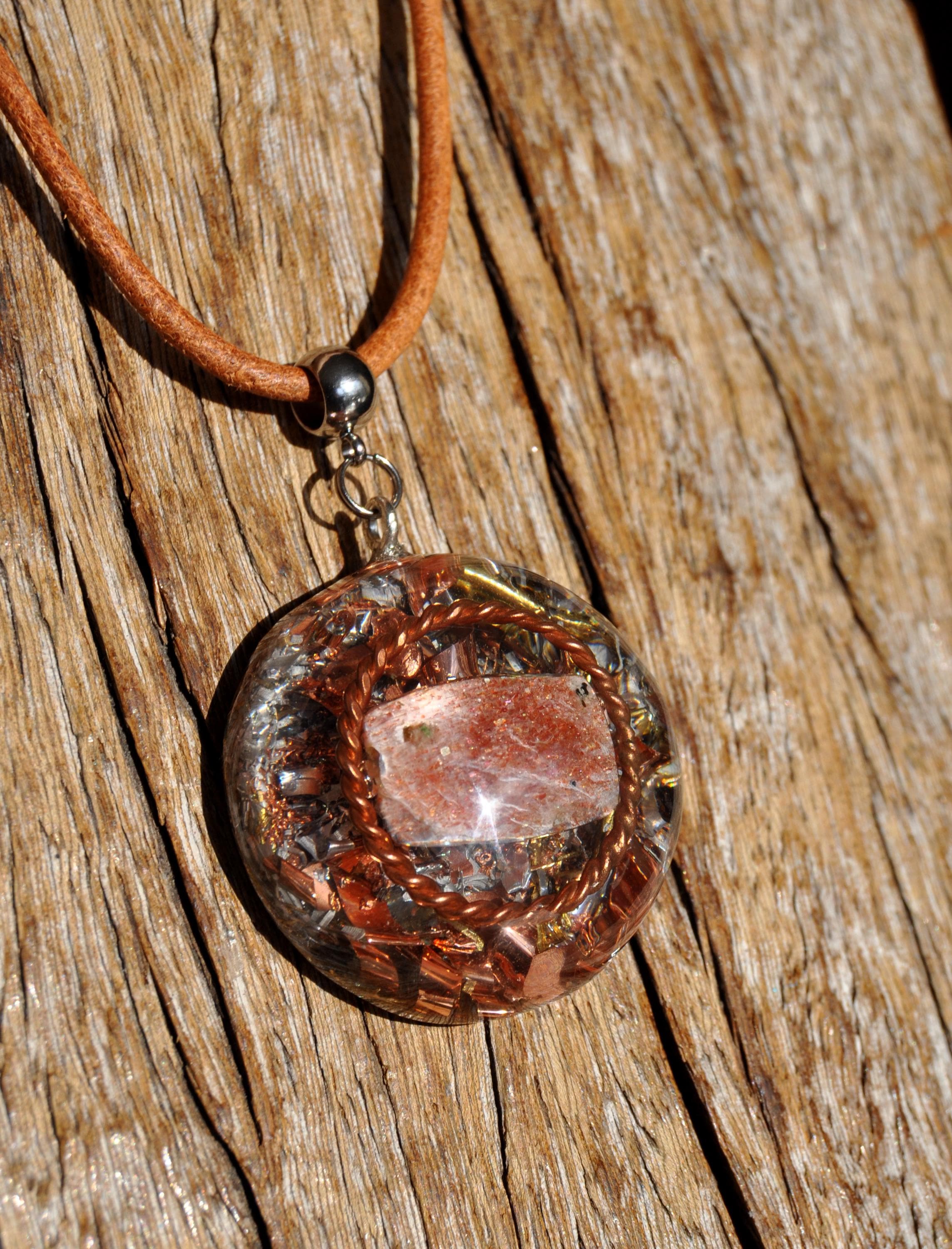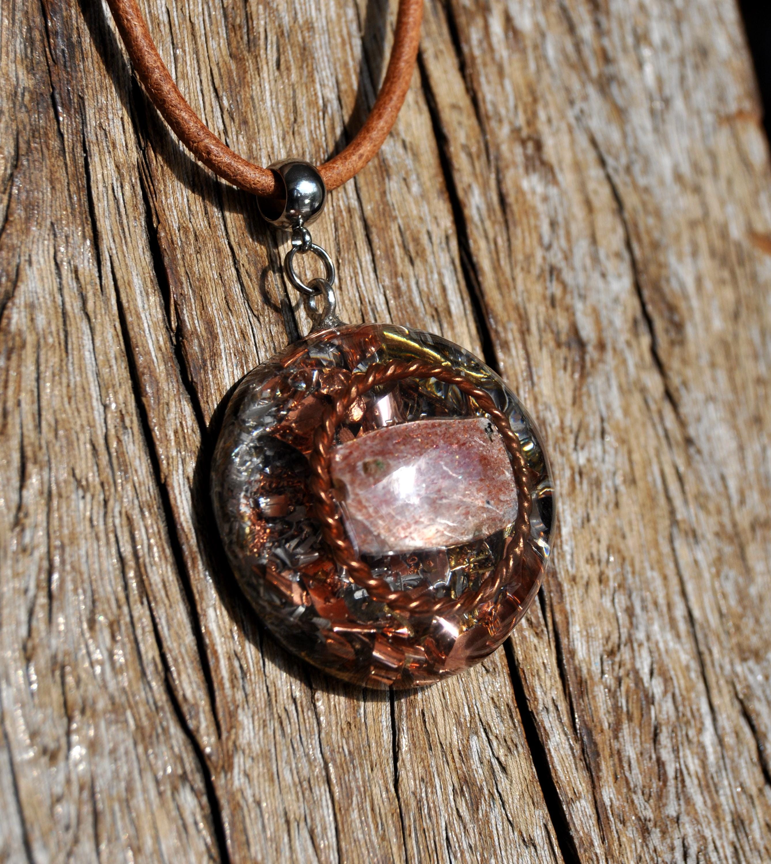 š Handmade Orgonite Sunstone Necklace with Copper Tensor Ring ā Uplifting Energy, Positivity & Balance