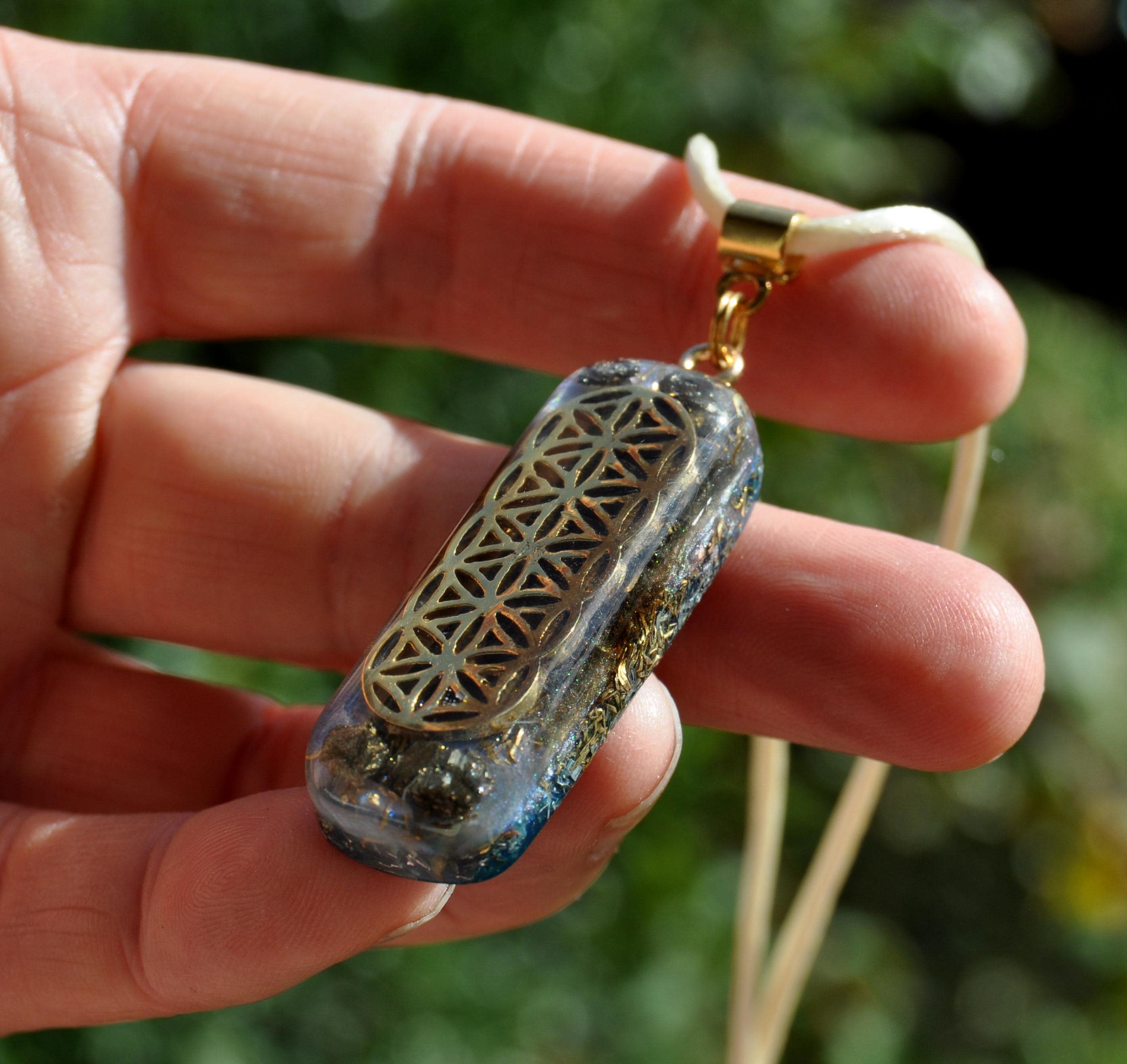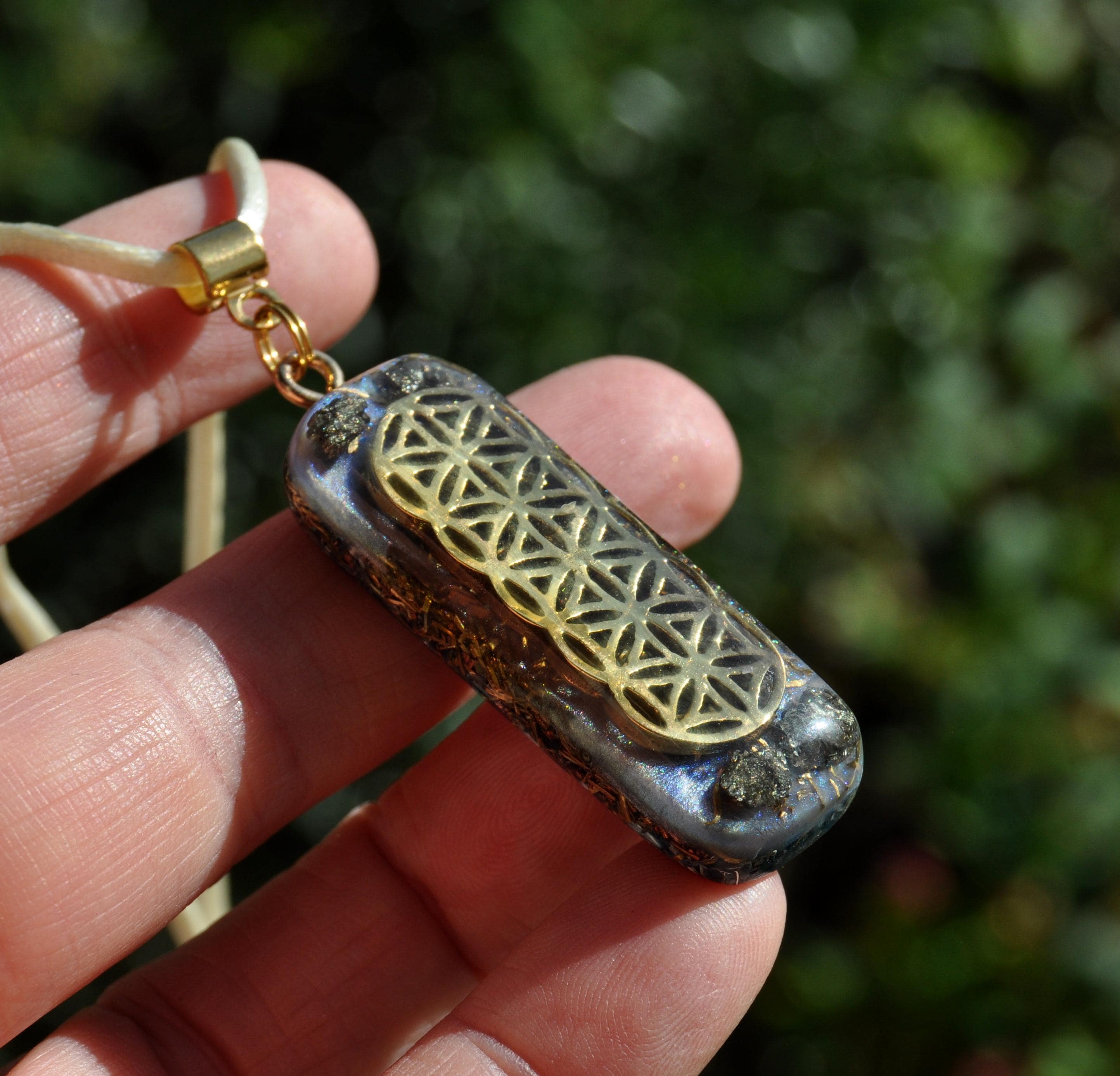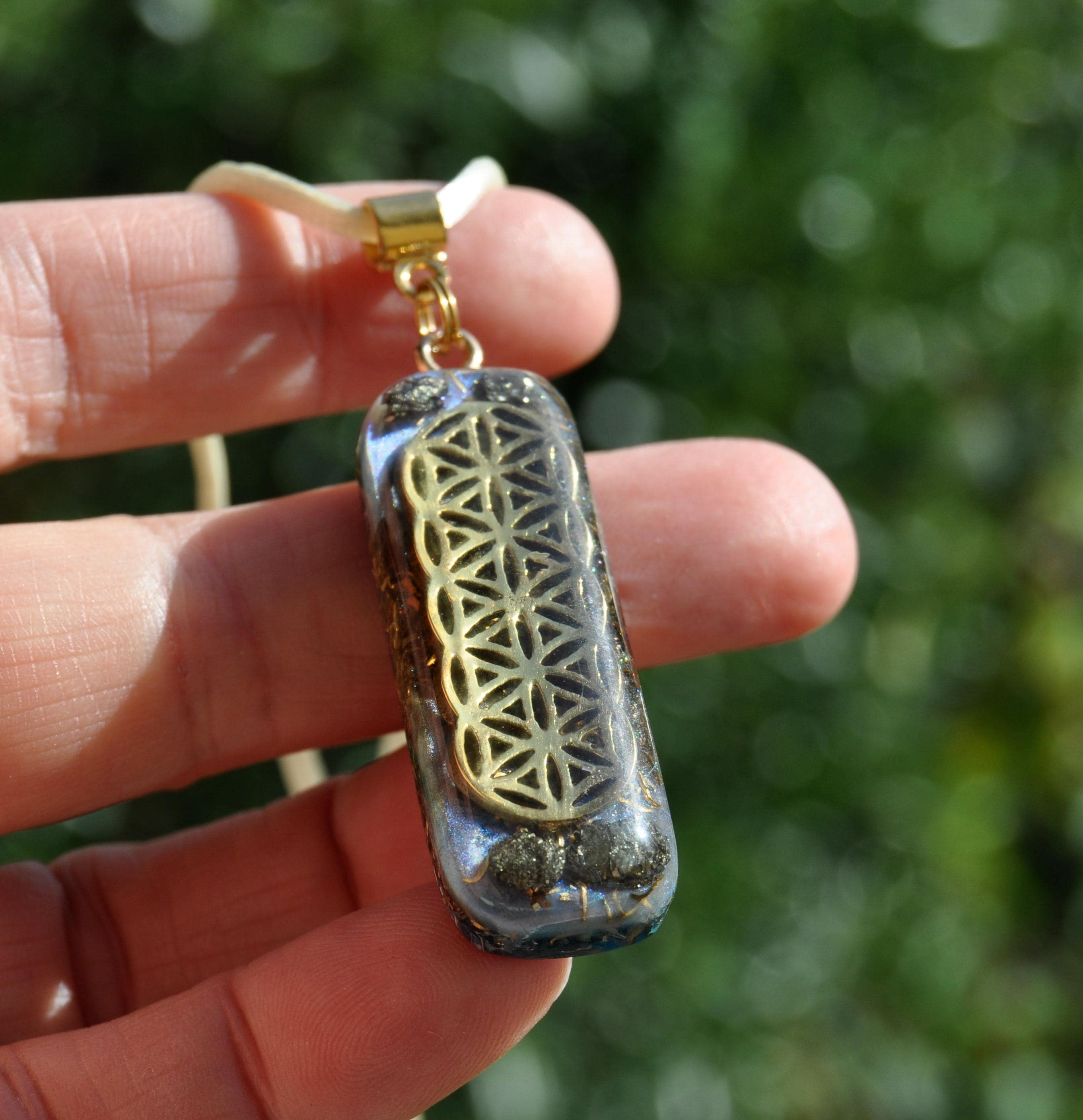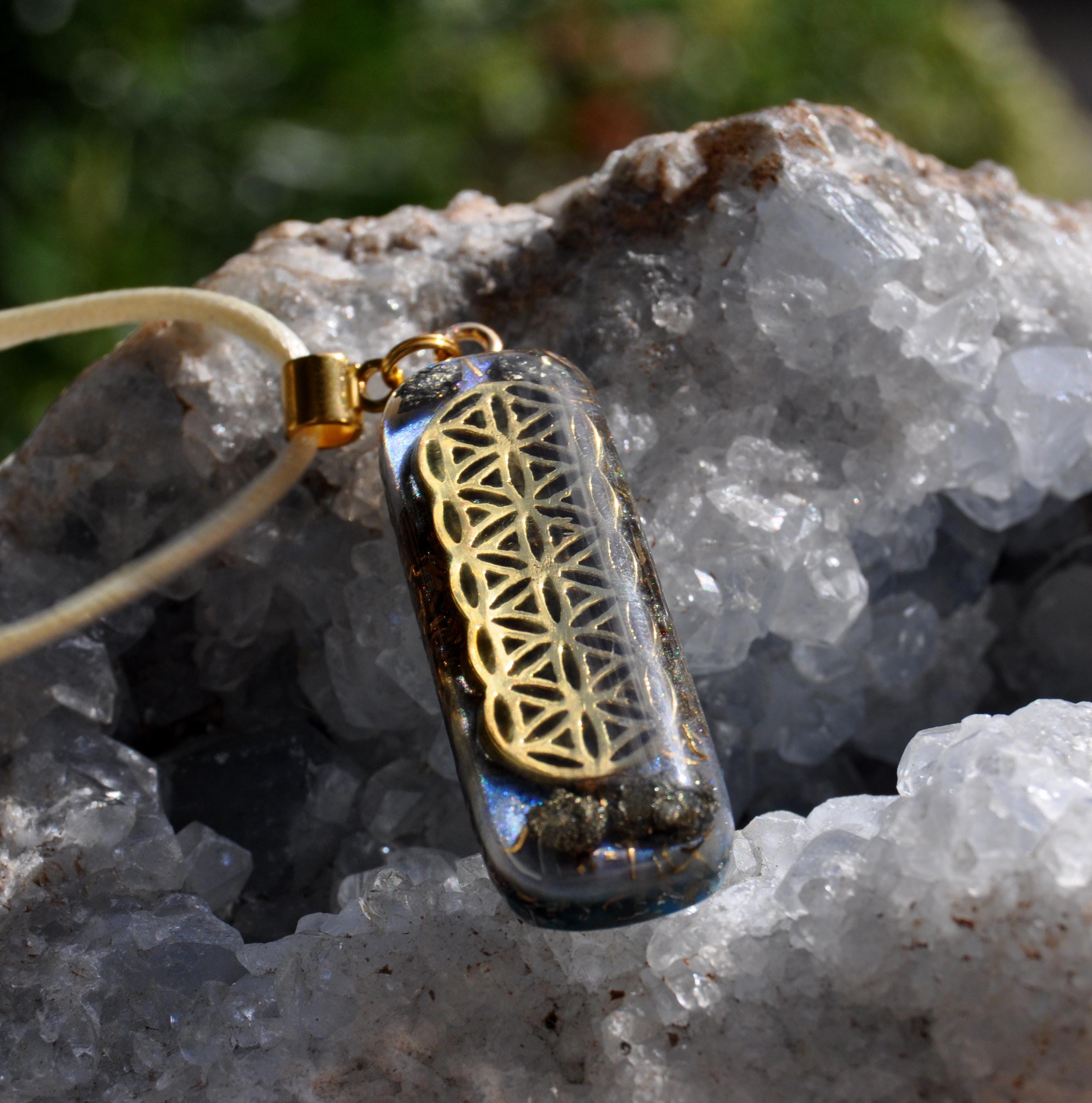Orgonite® Flower of Life Pendant with Pyrite Clusters • EMF Energy Necklace • Handmade Crystal Jewelry for Balance & Positive Vibes - Unisex