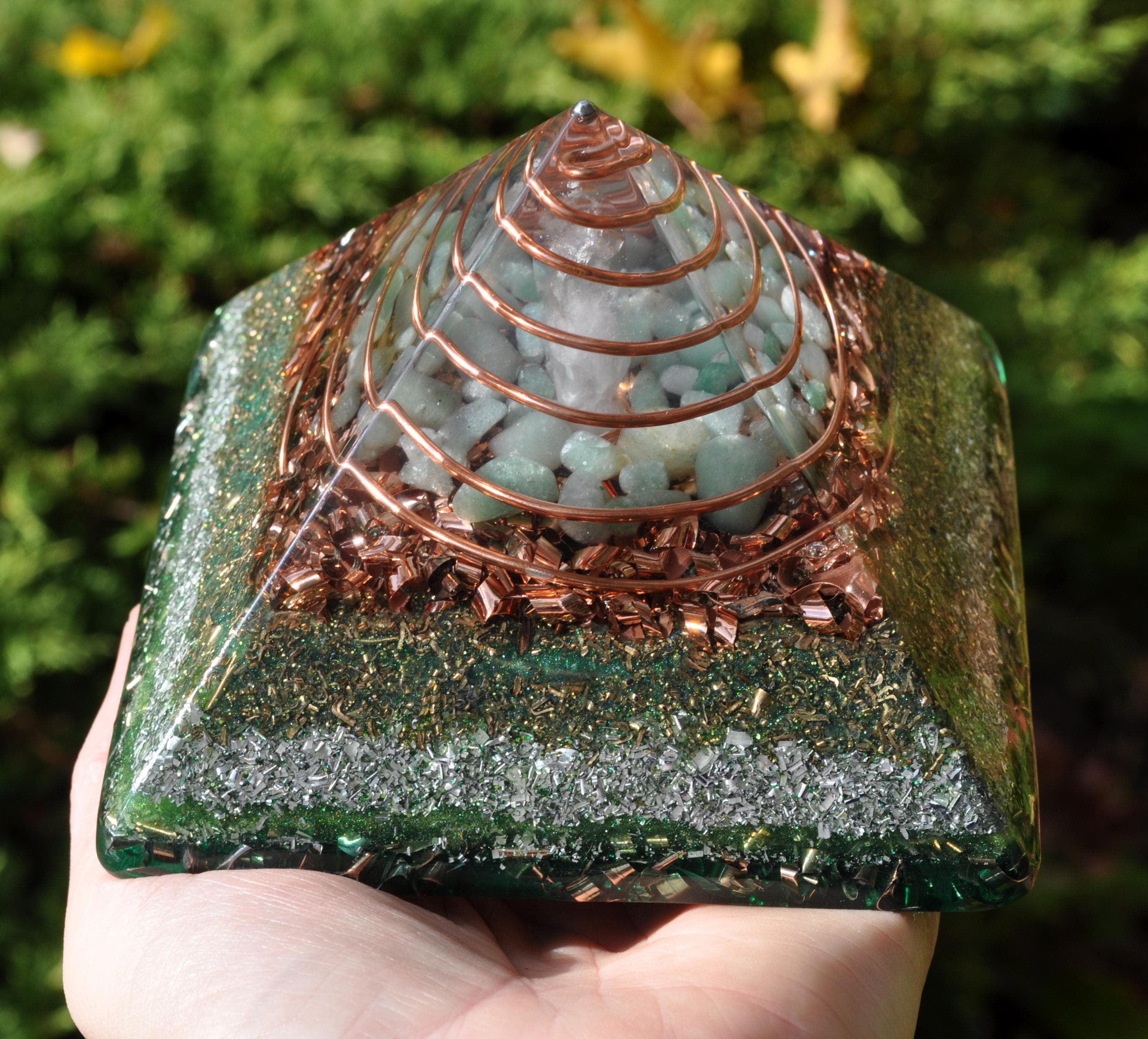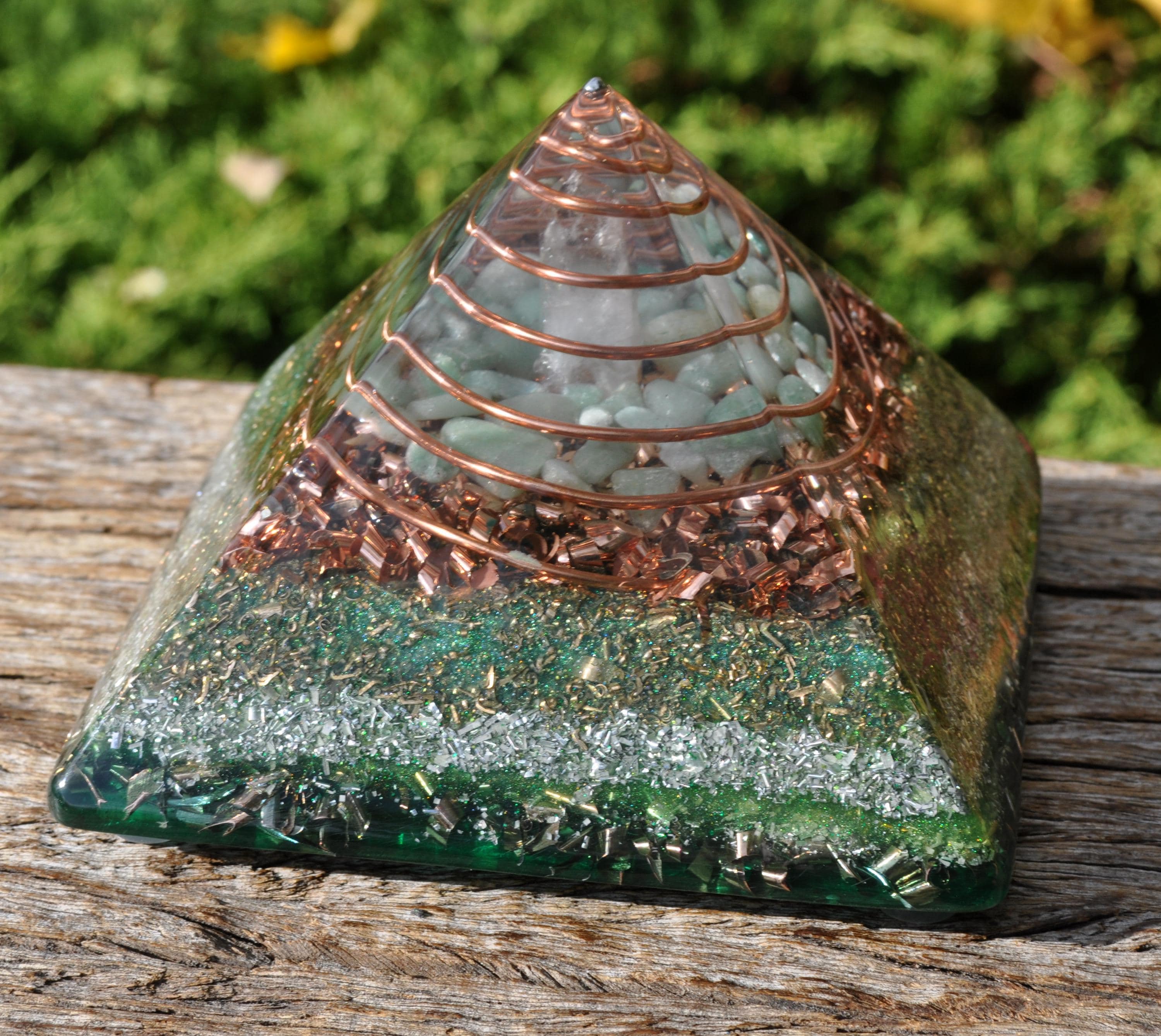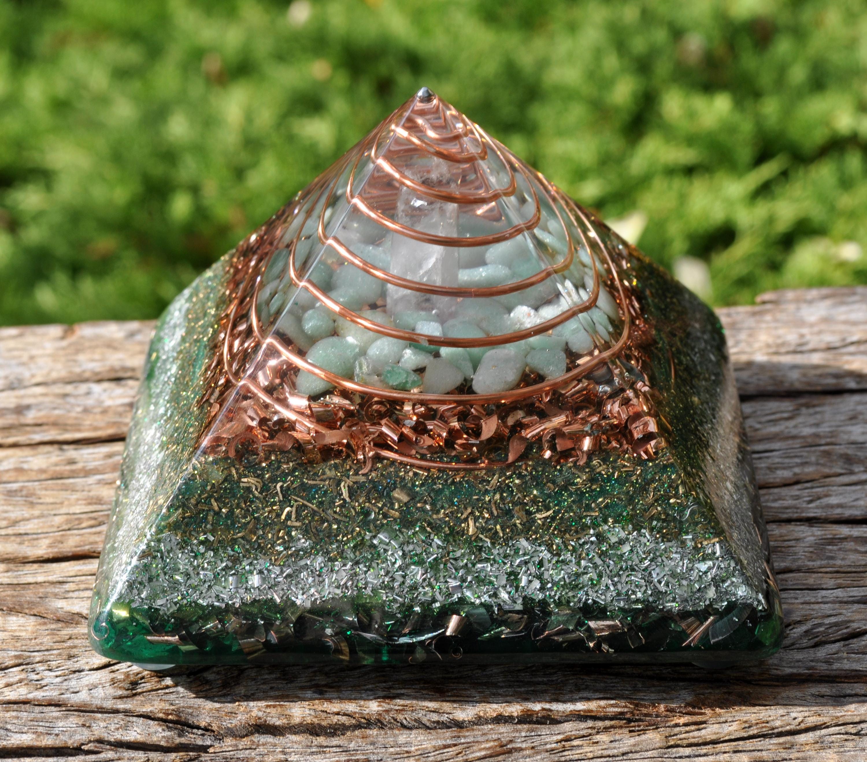 Handcrafted Orgonite® Giza Pyramid – Green Aventurine, Quartz & Tourmaline Energy Generator