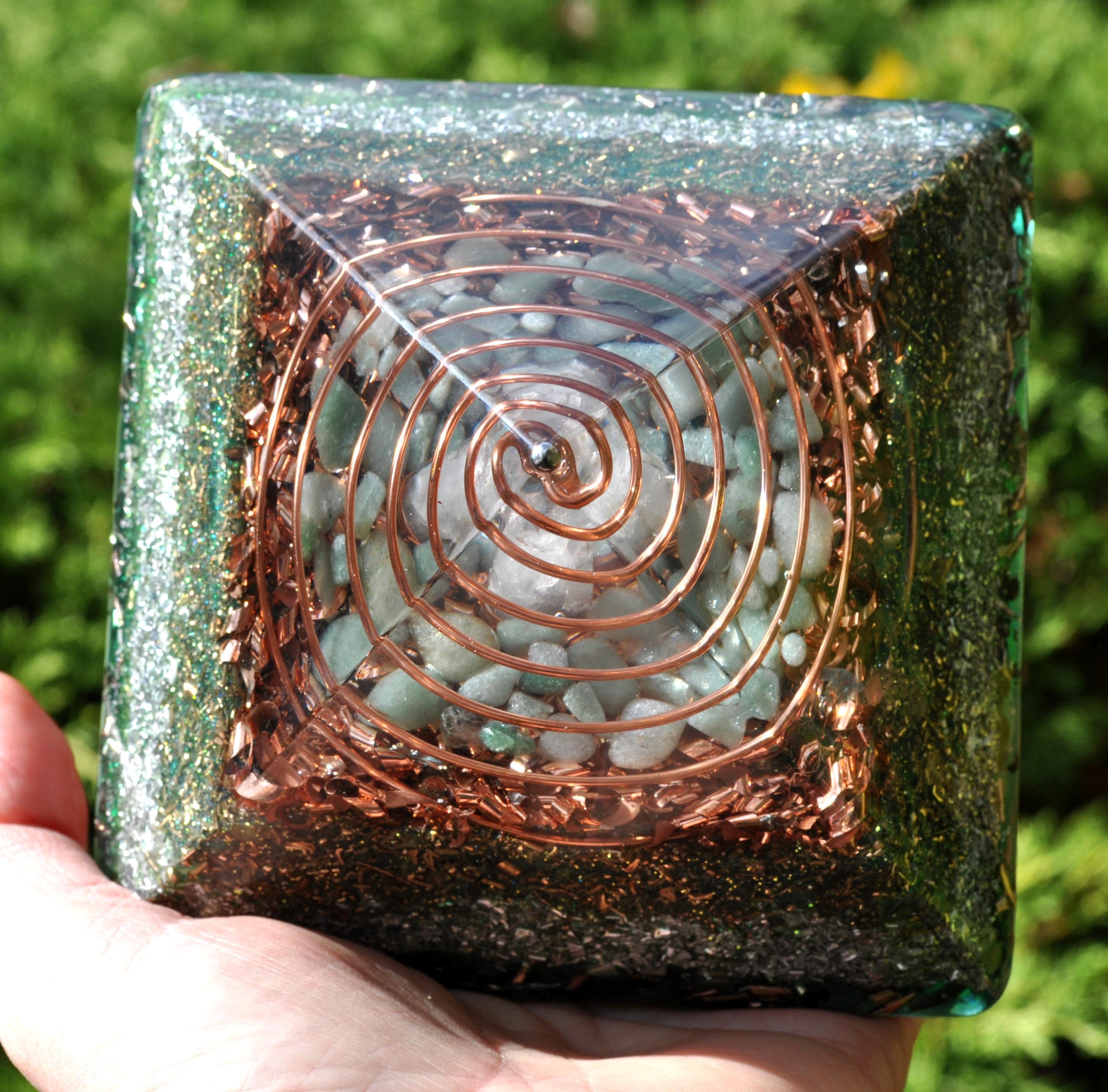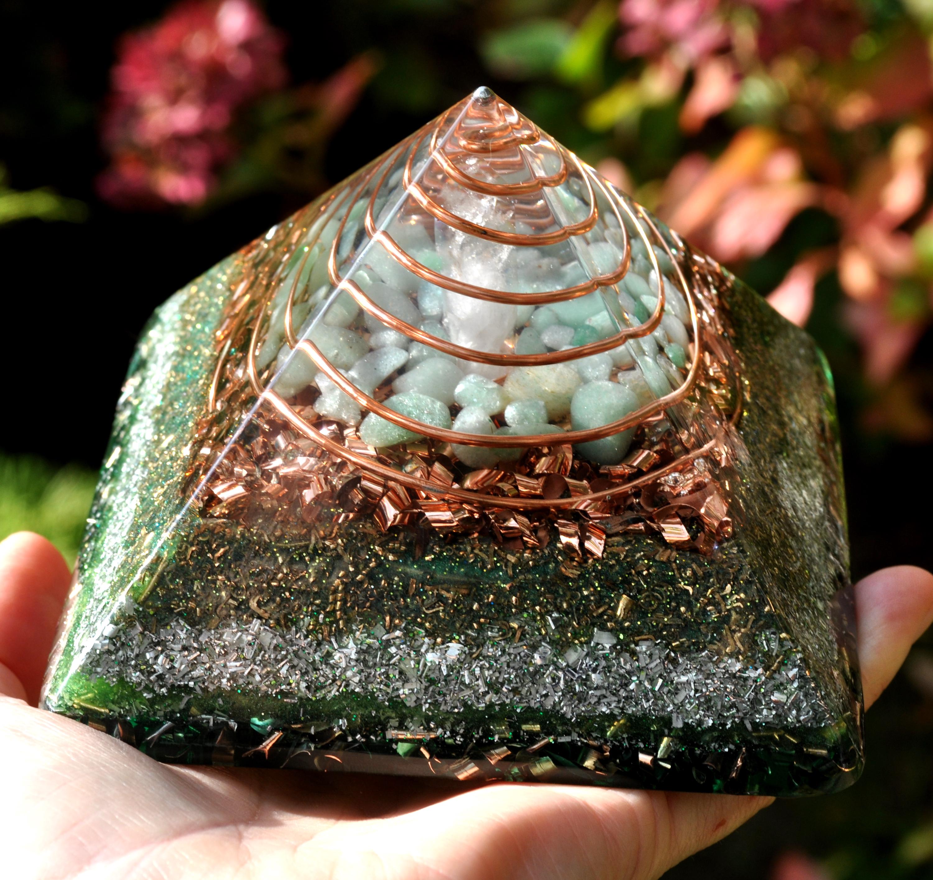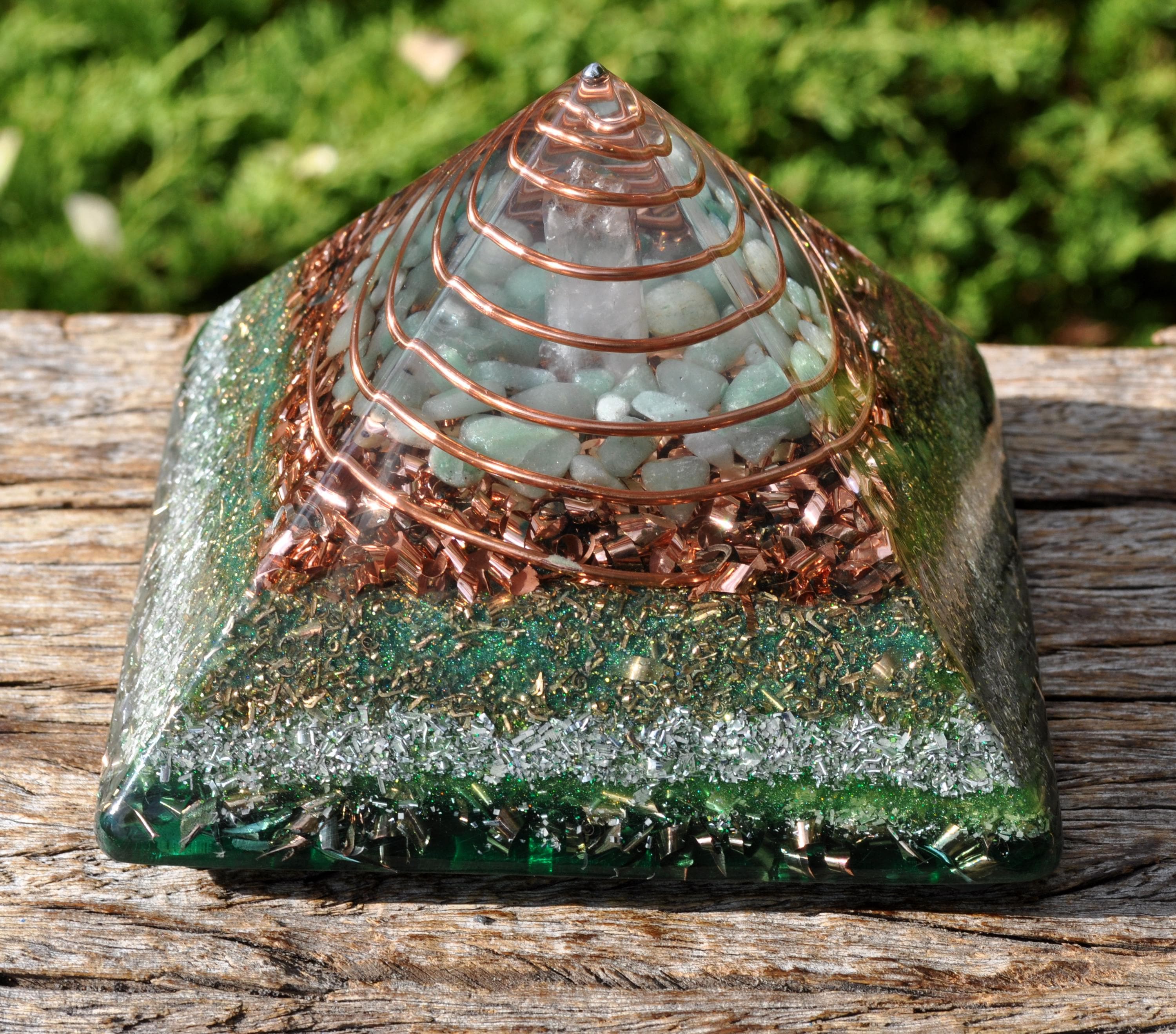 Handcrafted Orgonite® Giza Pyramid – Green Aventurine, Quartz & Tourmaline Energy Generator