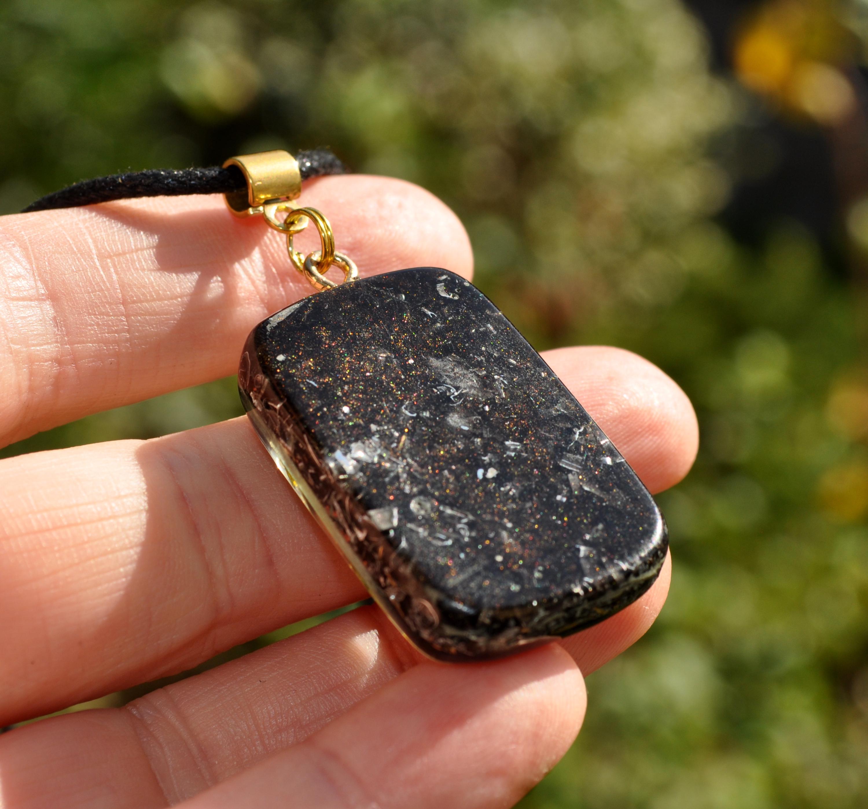 All elements are set within a high-quality resin base containing over 50% metal shavings, following the principles of Wilhelm Reich’s orgone research regarding the interaction between organic and inorganic materials.