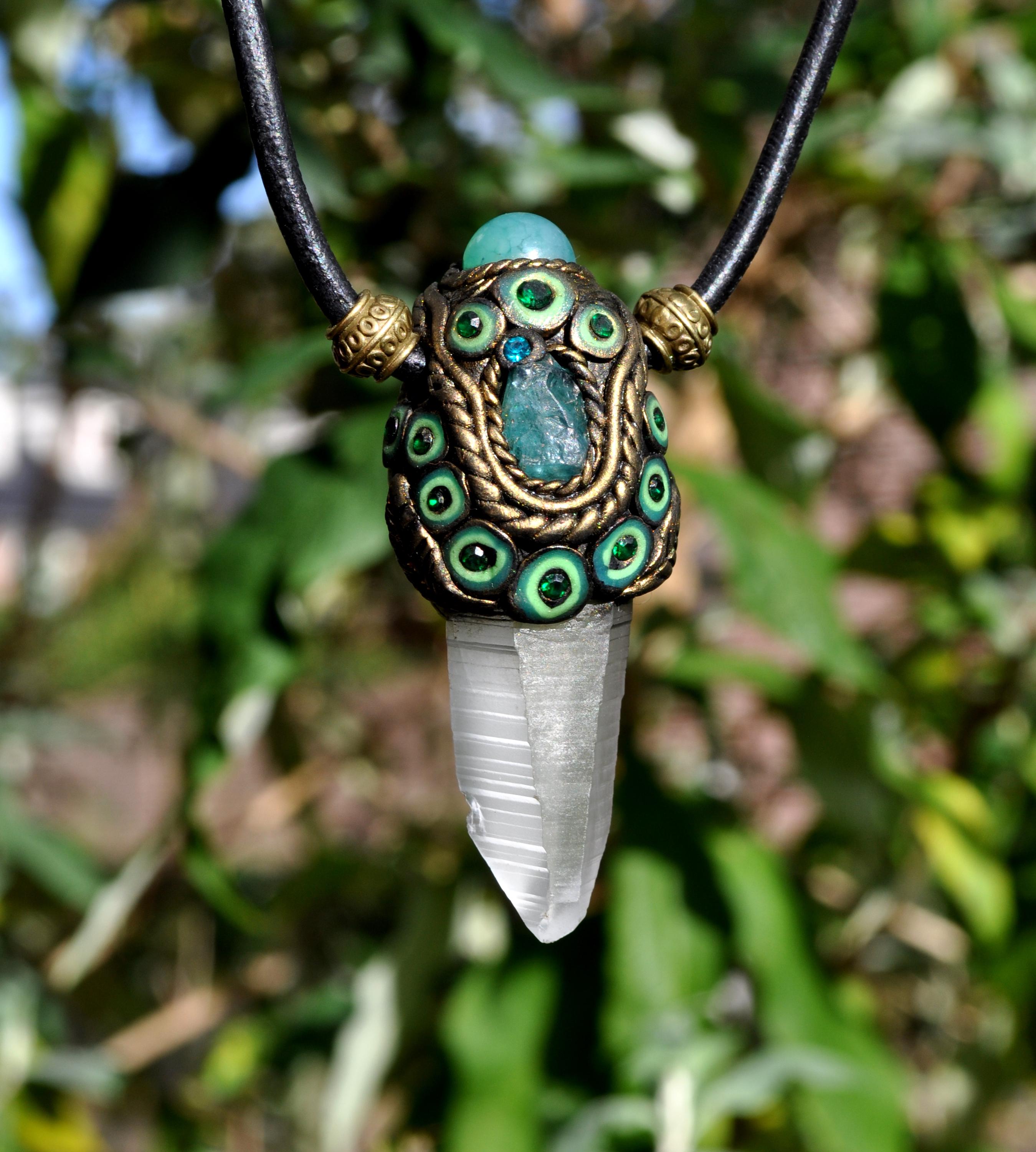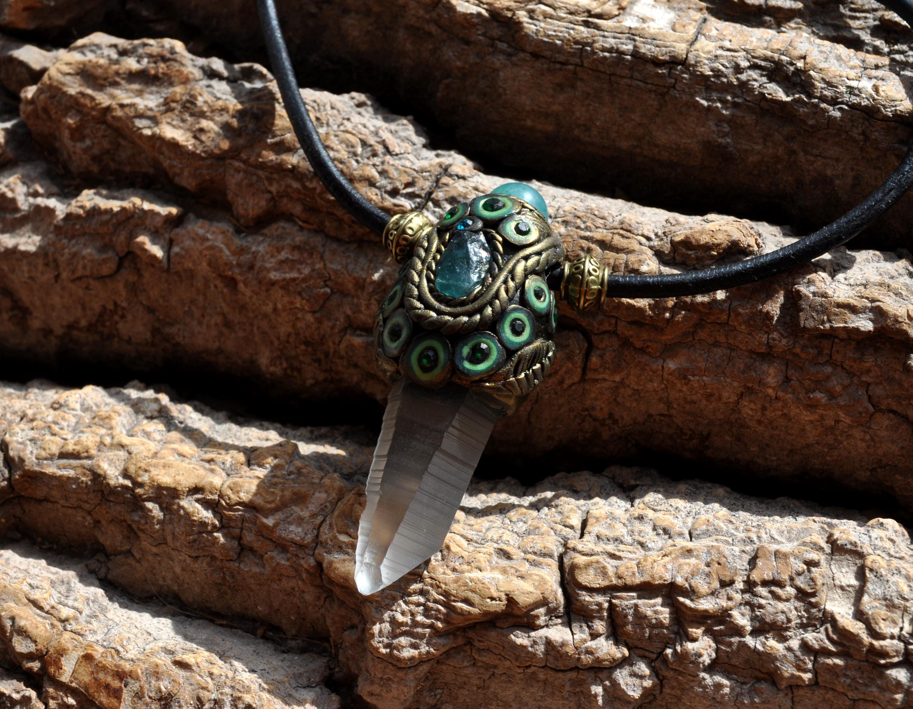 Handcrafted Lemurian Quartz Pendant with Blue Apatite & Agate – Customizable Suede Necklace