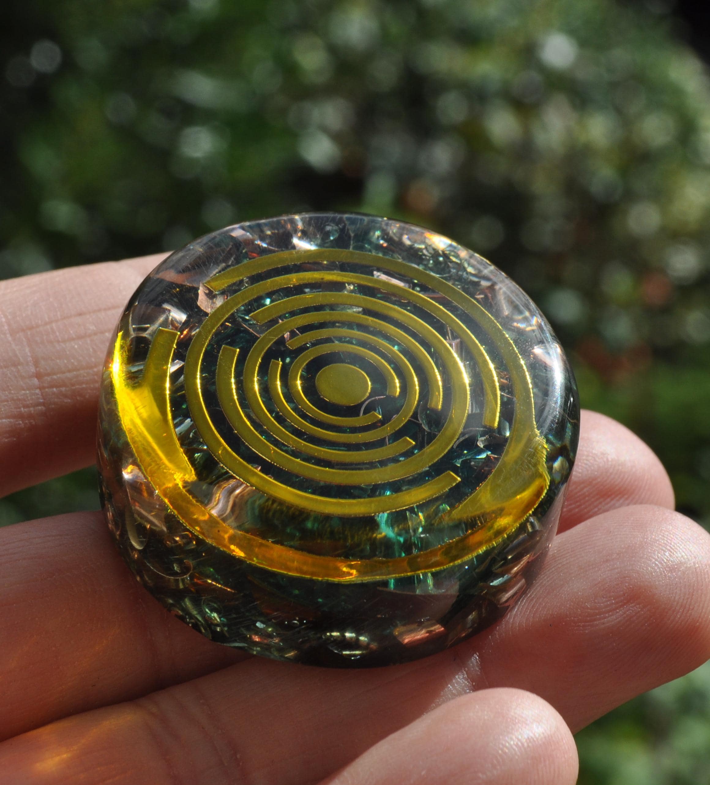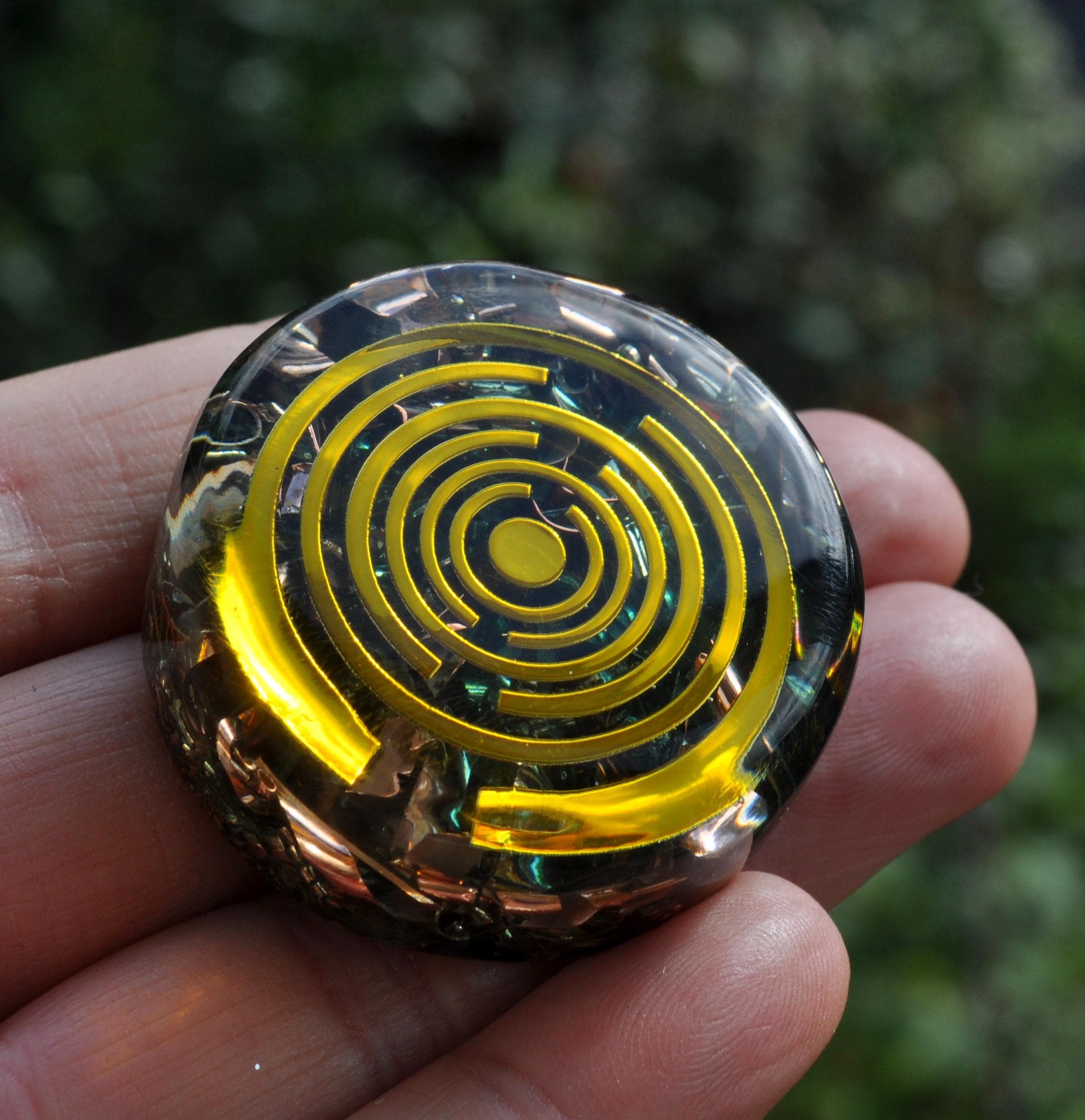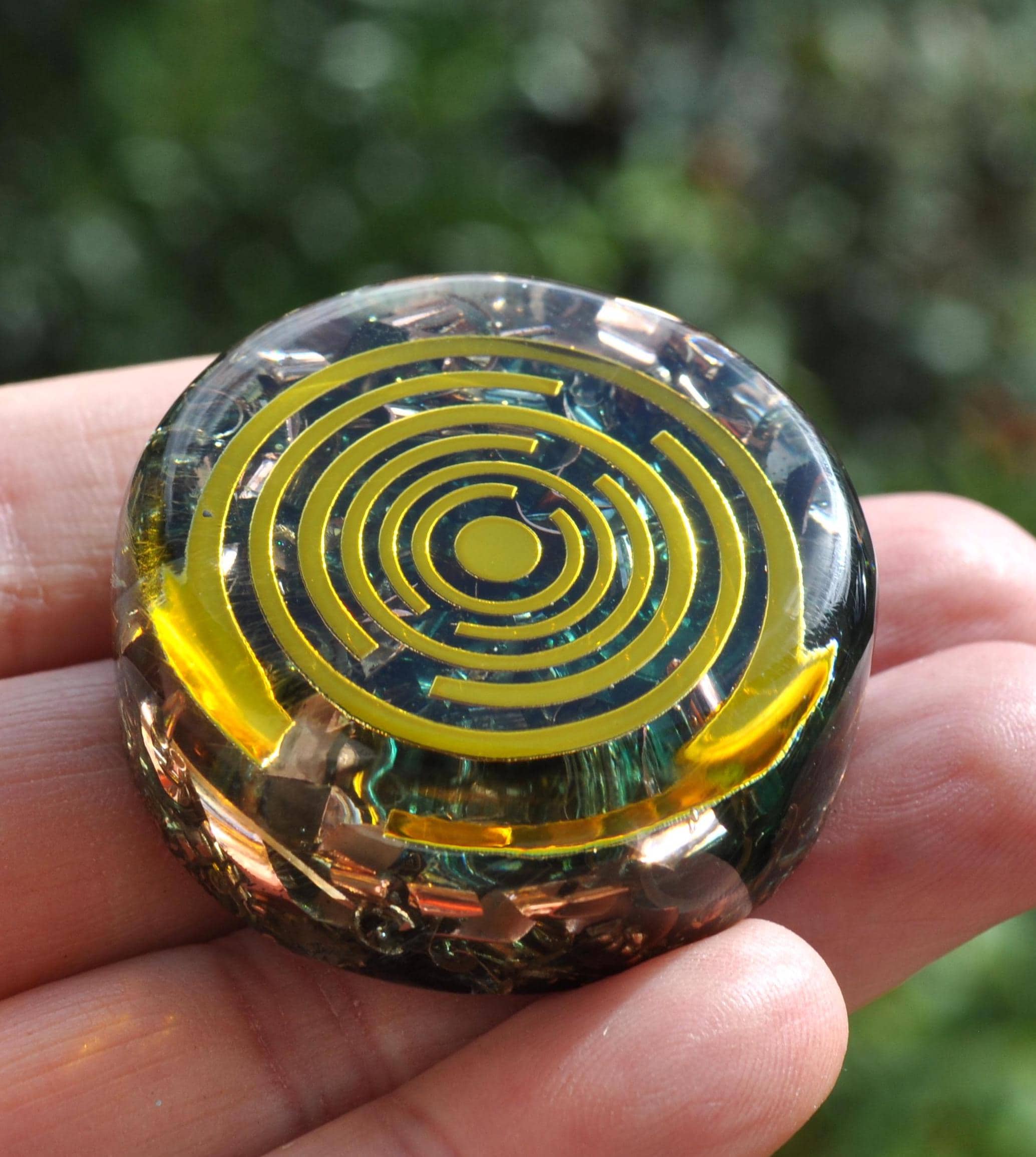 Bring balance, protection, and positive energy wherever you go with this Small Handmade Pocket Orgonite Orgone Generator — a one-of-a-kind piece designed to harmonize energy fields and promote a deep sense of well-being. Each orgonite is carefully handcrafted, making every piece completely unique in appearance and energy flow.