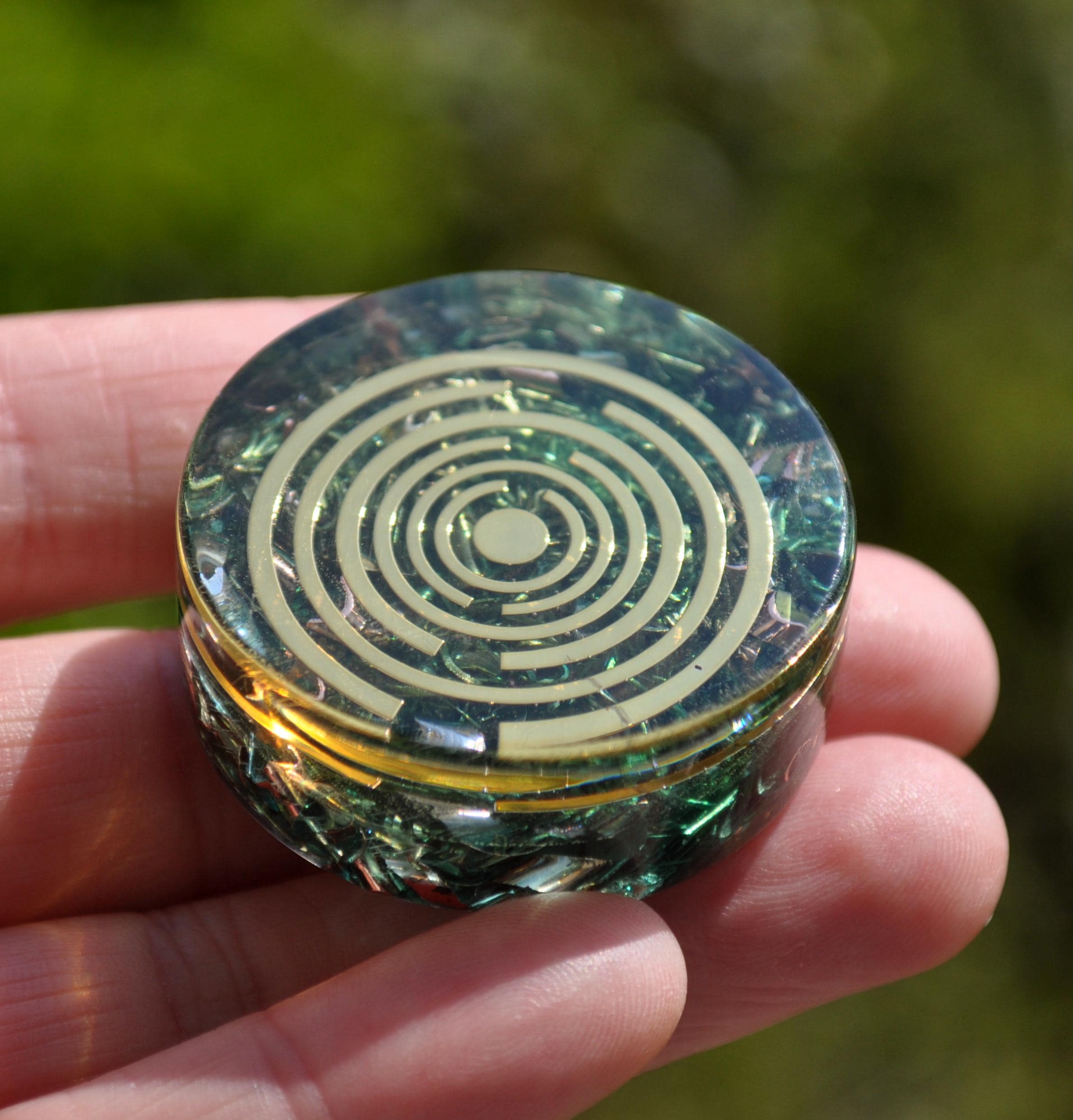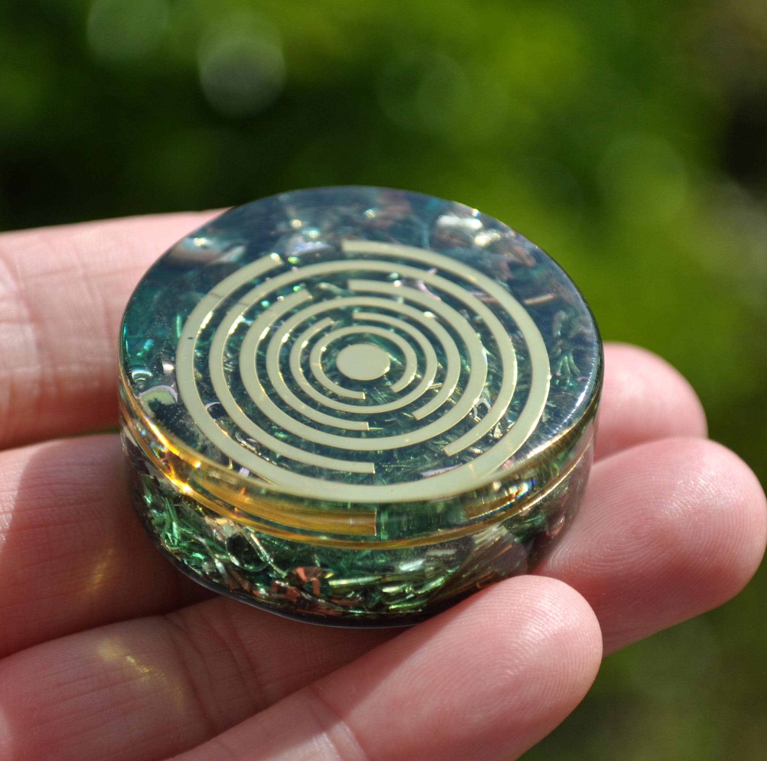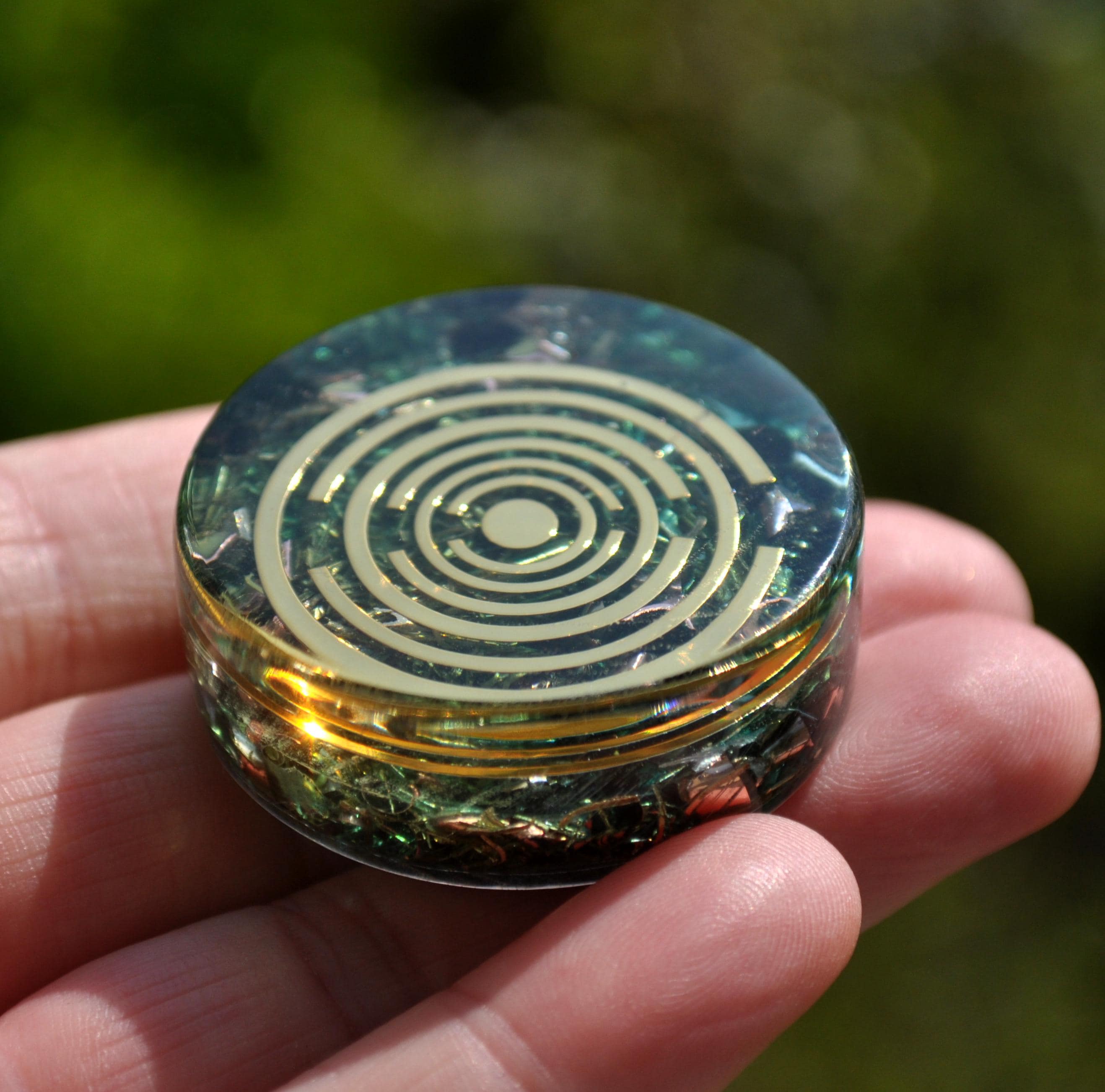 This compact orgonite features a copper-plated Lakhovsky MWO (Multi-Wave Oscillator) — a design inspired by Georges Lakhovsky’s early frequency experiments, believed to radiate a wide spectrum of natural harmonizing frequencies. The copper plating helps enhance conductivity and energy flow, supporting the orgonite’s efficiency in creating a neutralizing influence on environmental EMF and promoting energetic balance. It serves as the energetic “heart” of the piece, creating a gentle but noticeable harmonizing field around you.