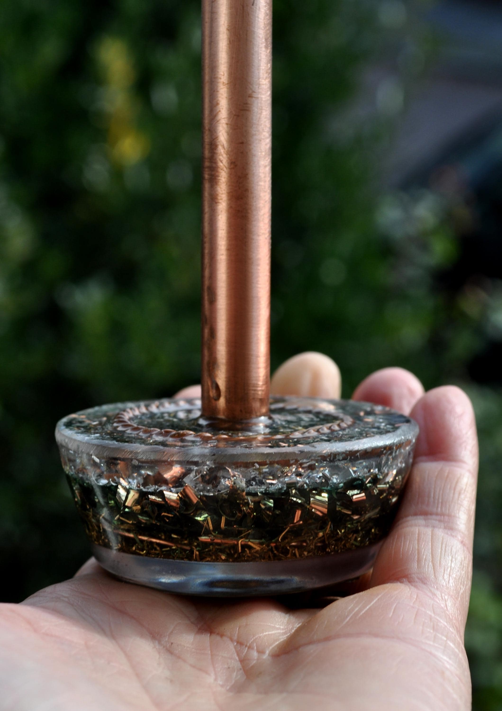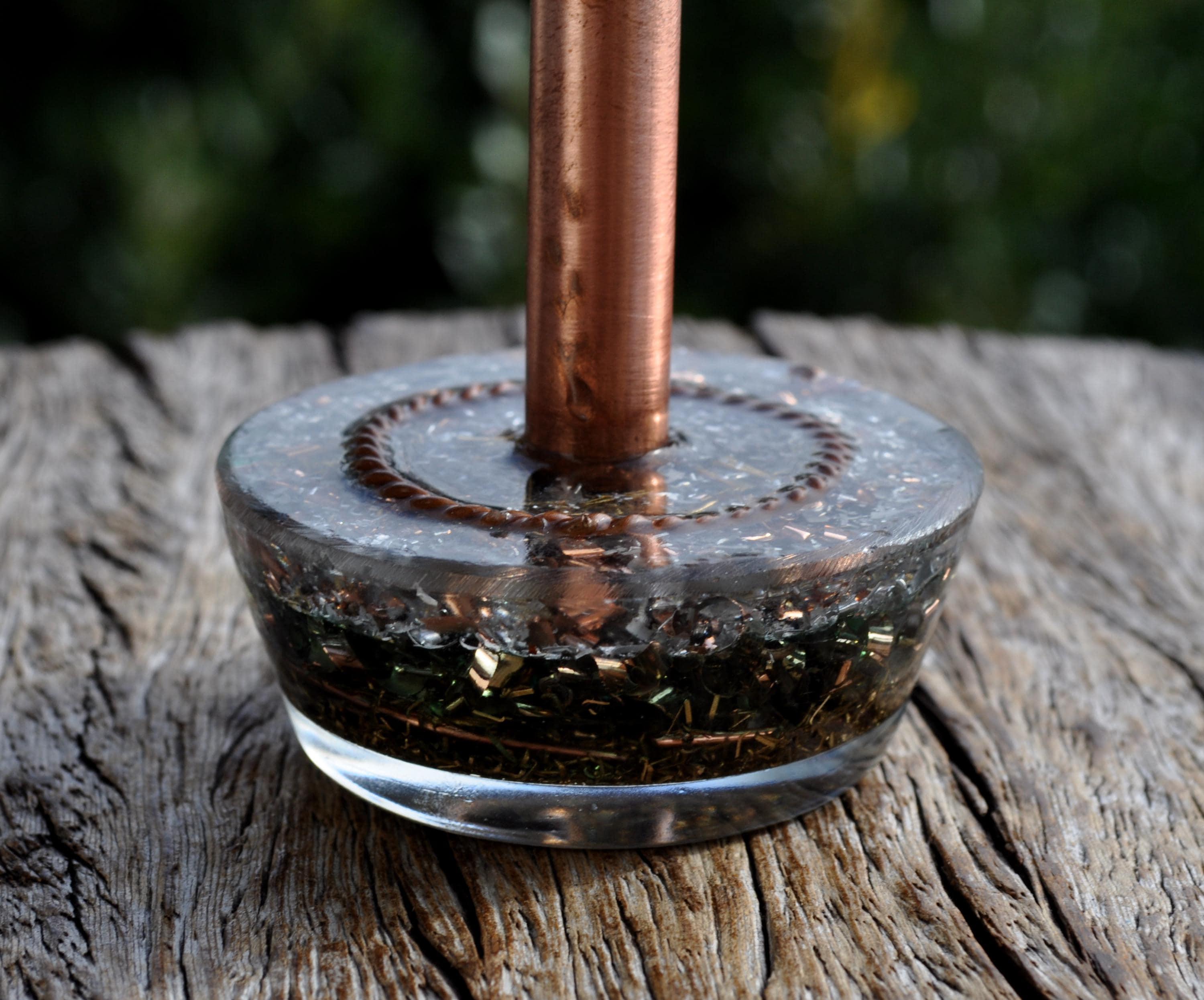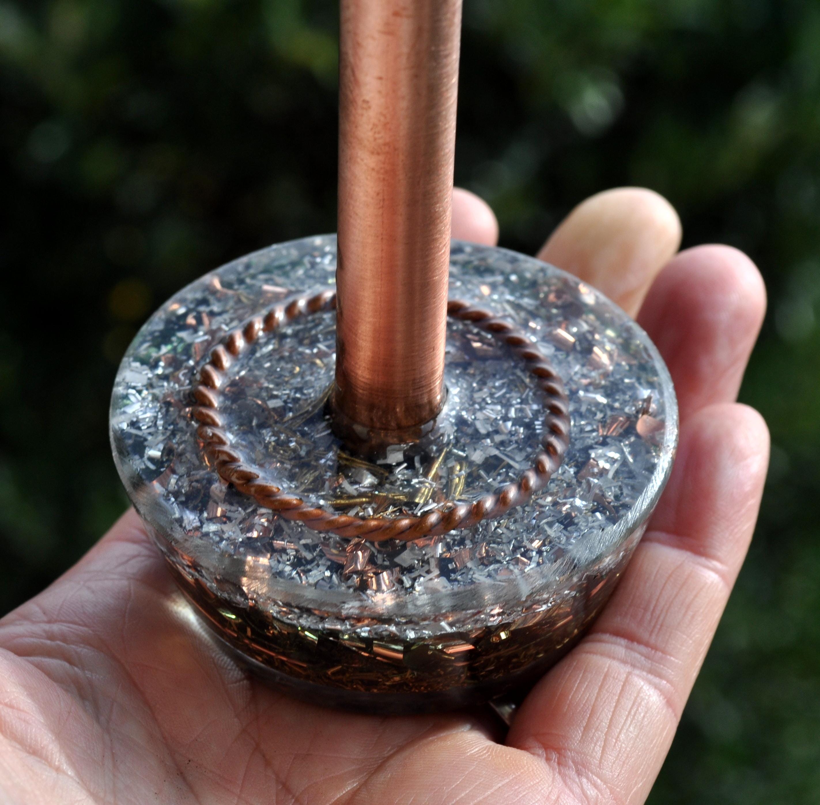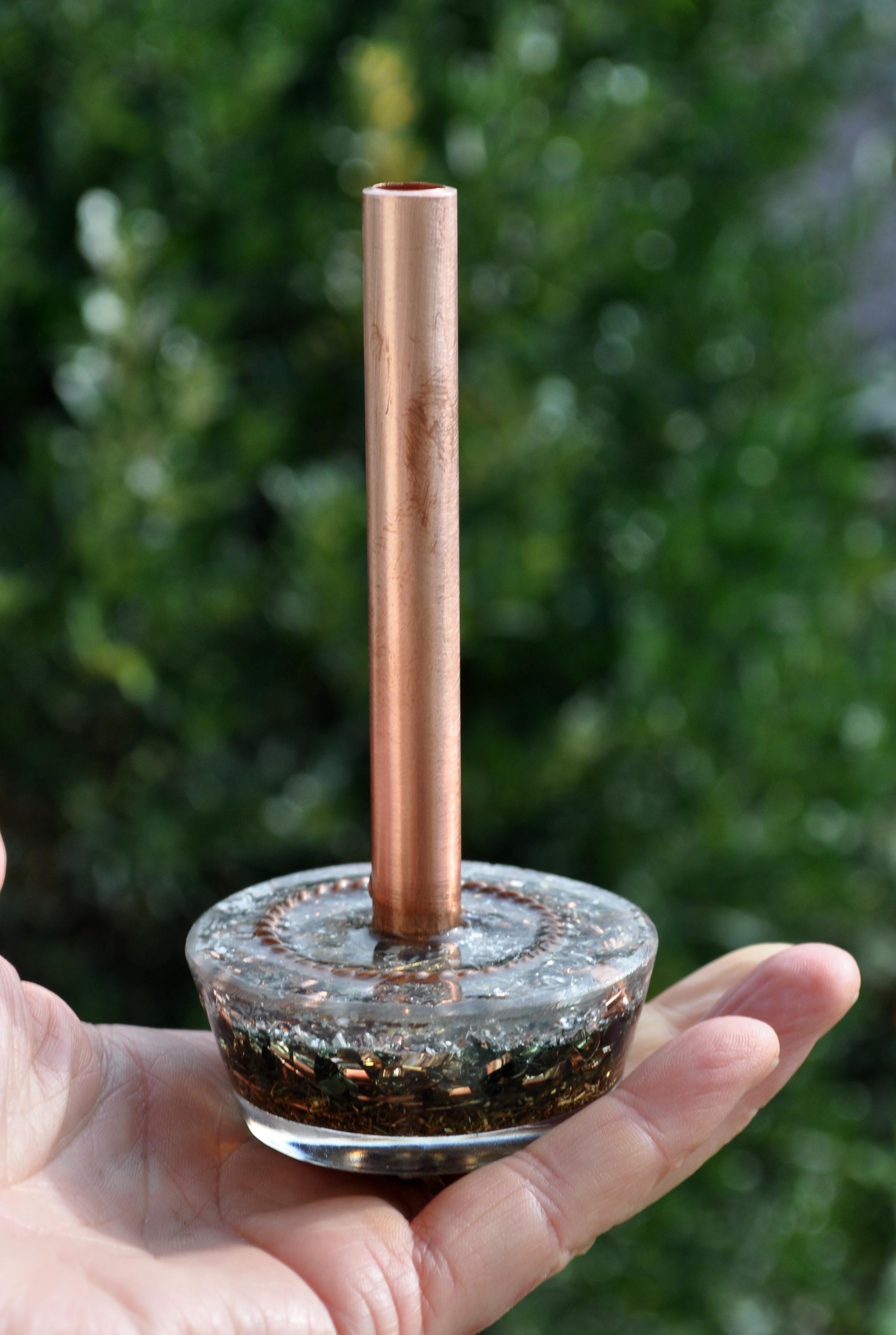 Experience the beauty and intention of this Handmade Mini Cloudbuster, also known as a Mini Orgonite Chembuster — a compact sculpture designed to bring harmony, balance, and positive energy to your space.