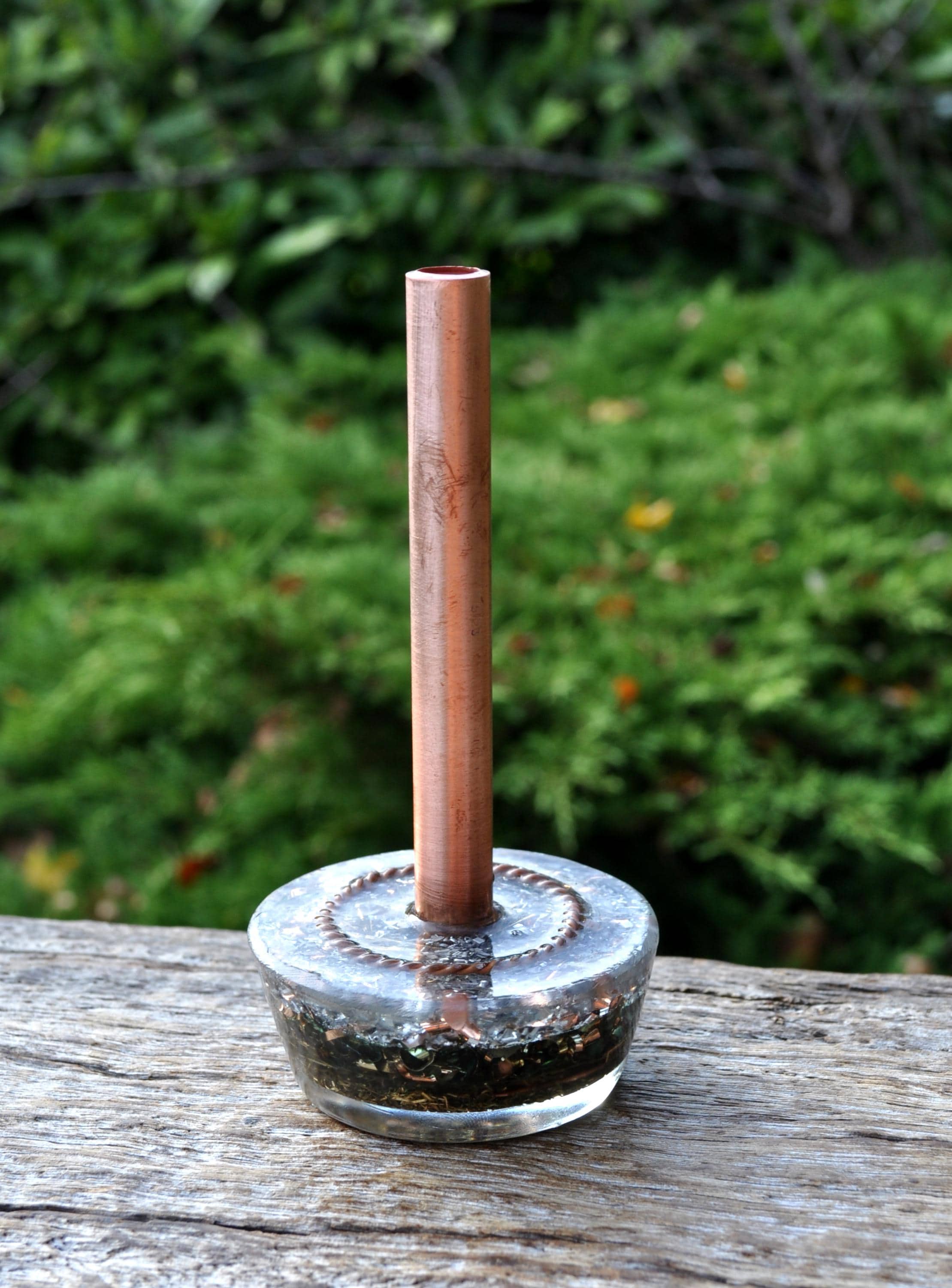 This Mini Cloudbuster is a symbolic orgonite sculpture designed to harmonize and refresh the atmosphere wherever it is placed.