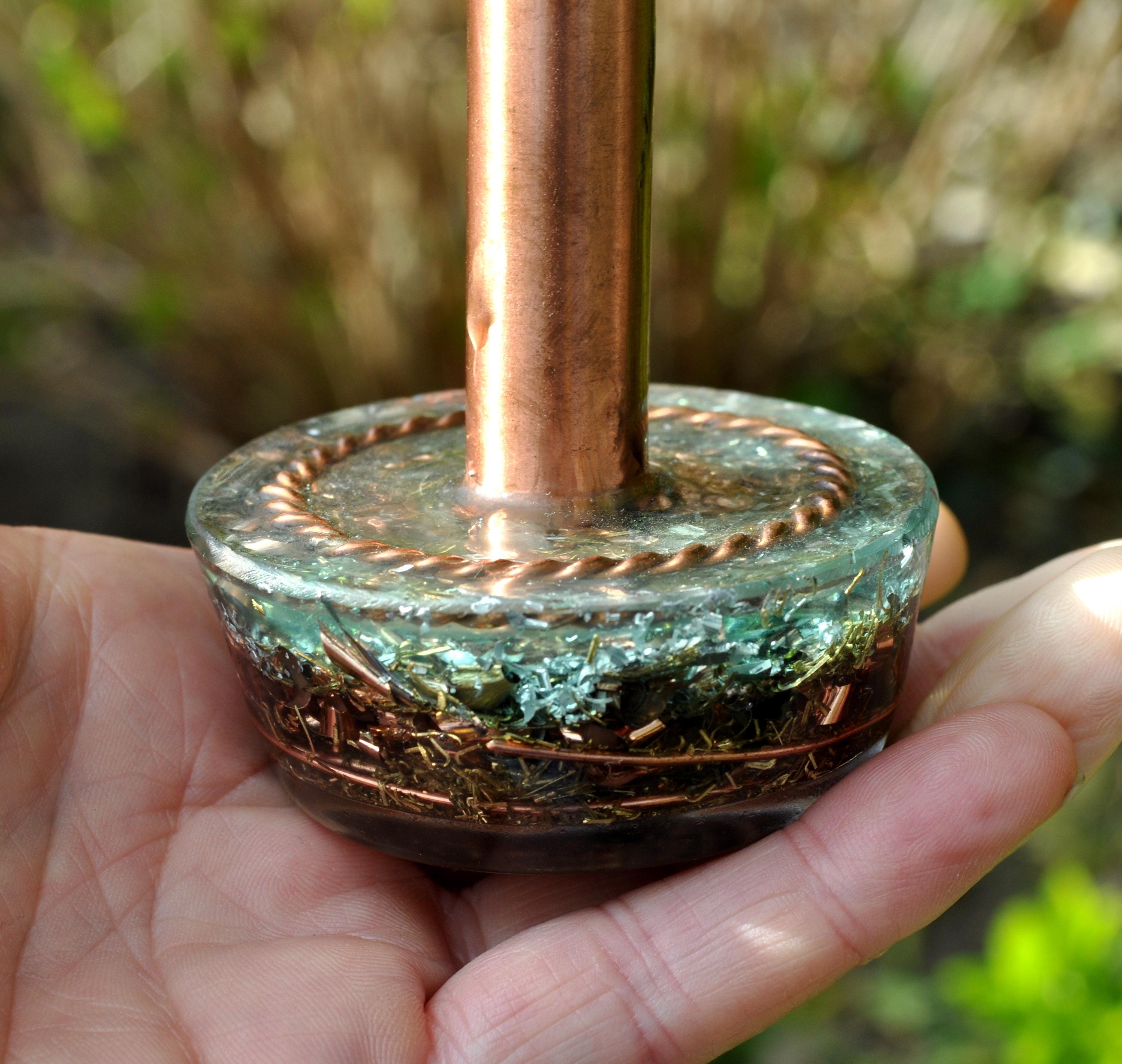 Experience the beauty and intention of this Handmade Mini Cloudbuster, also known as a Mini Orgonite Chembuster — a compact sculpture designed to bring harmony, balance, and positive energy to your space.
