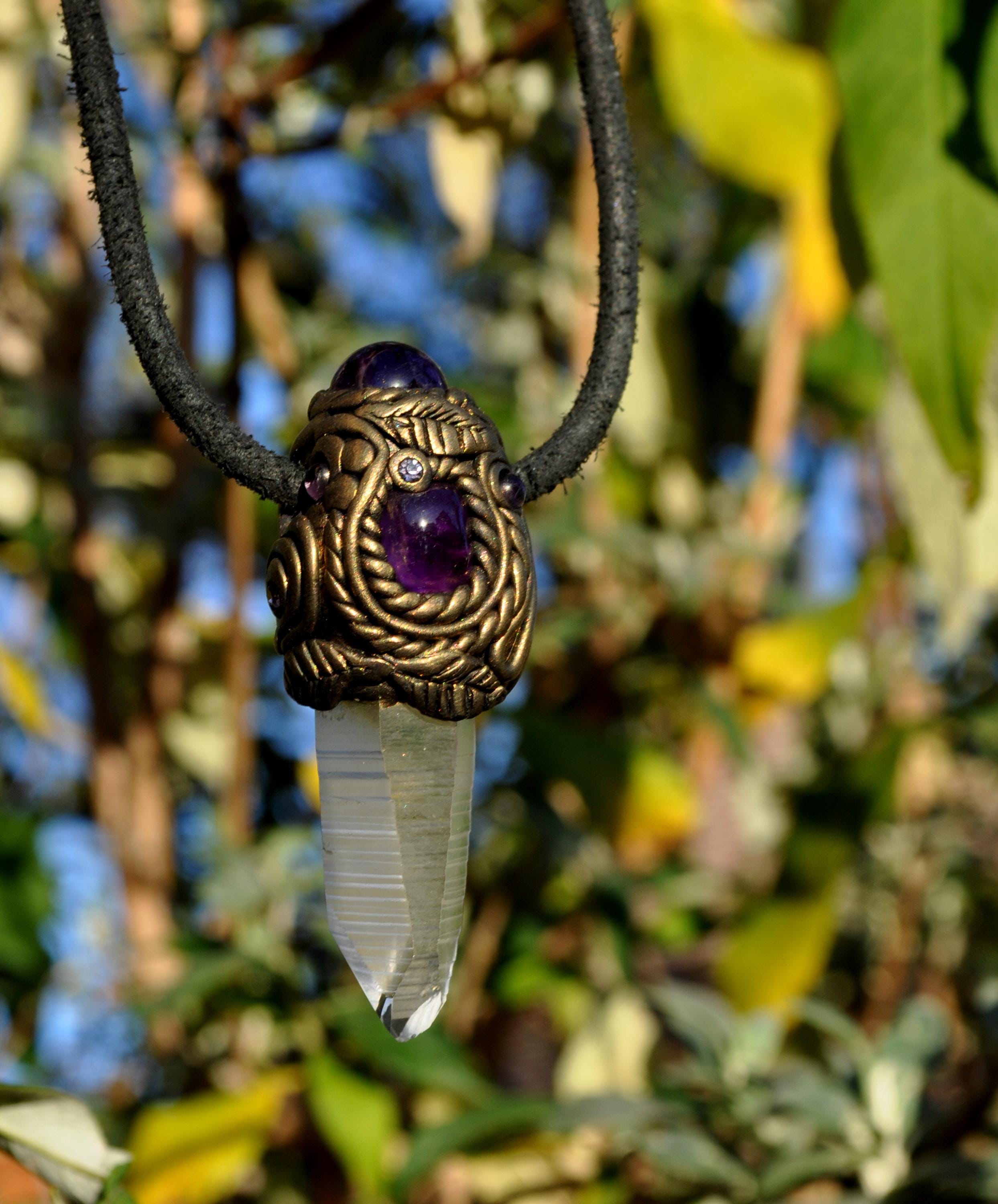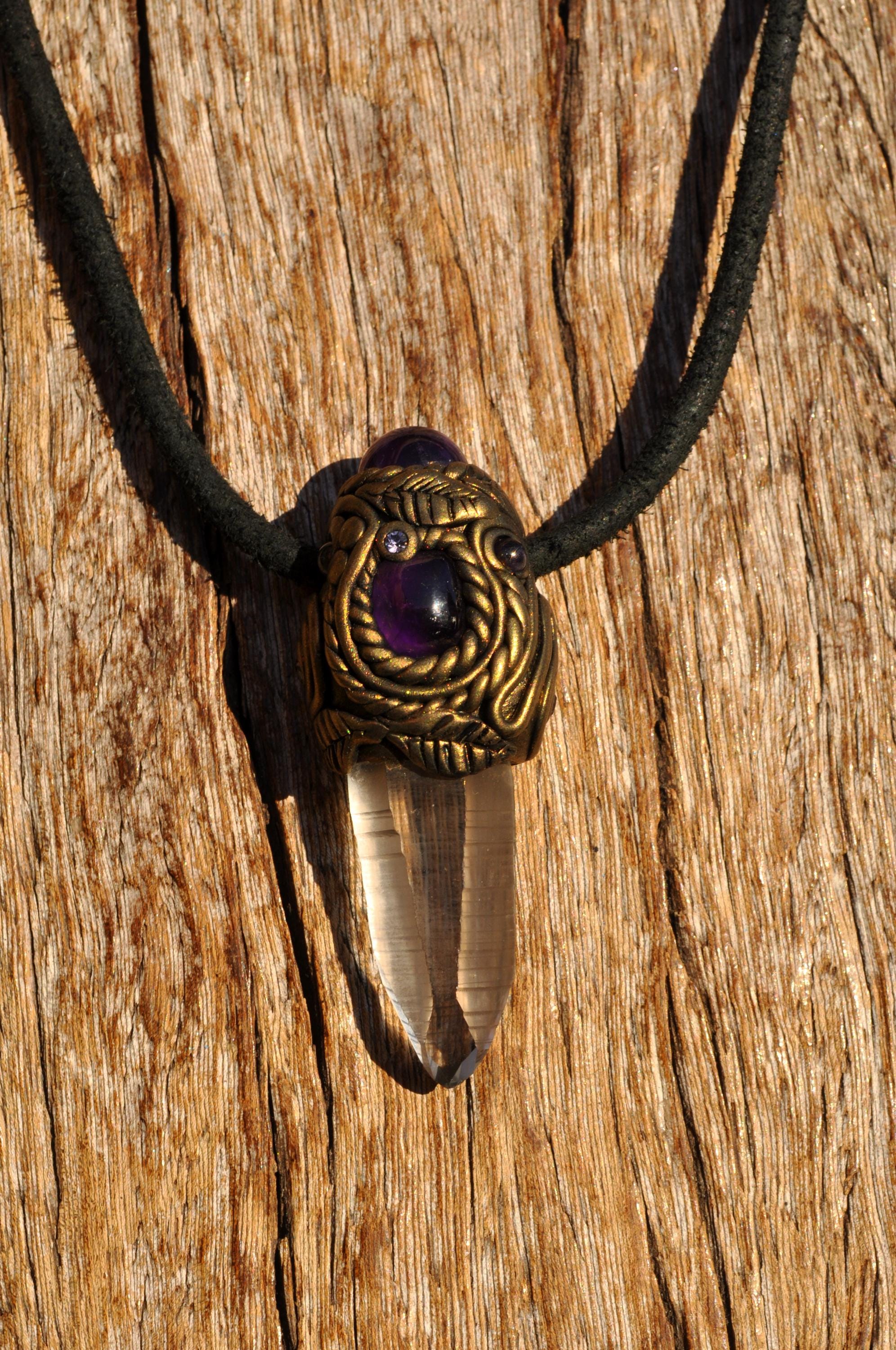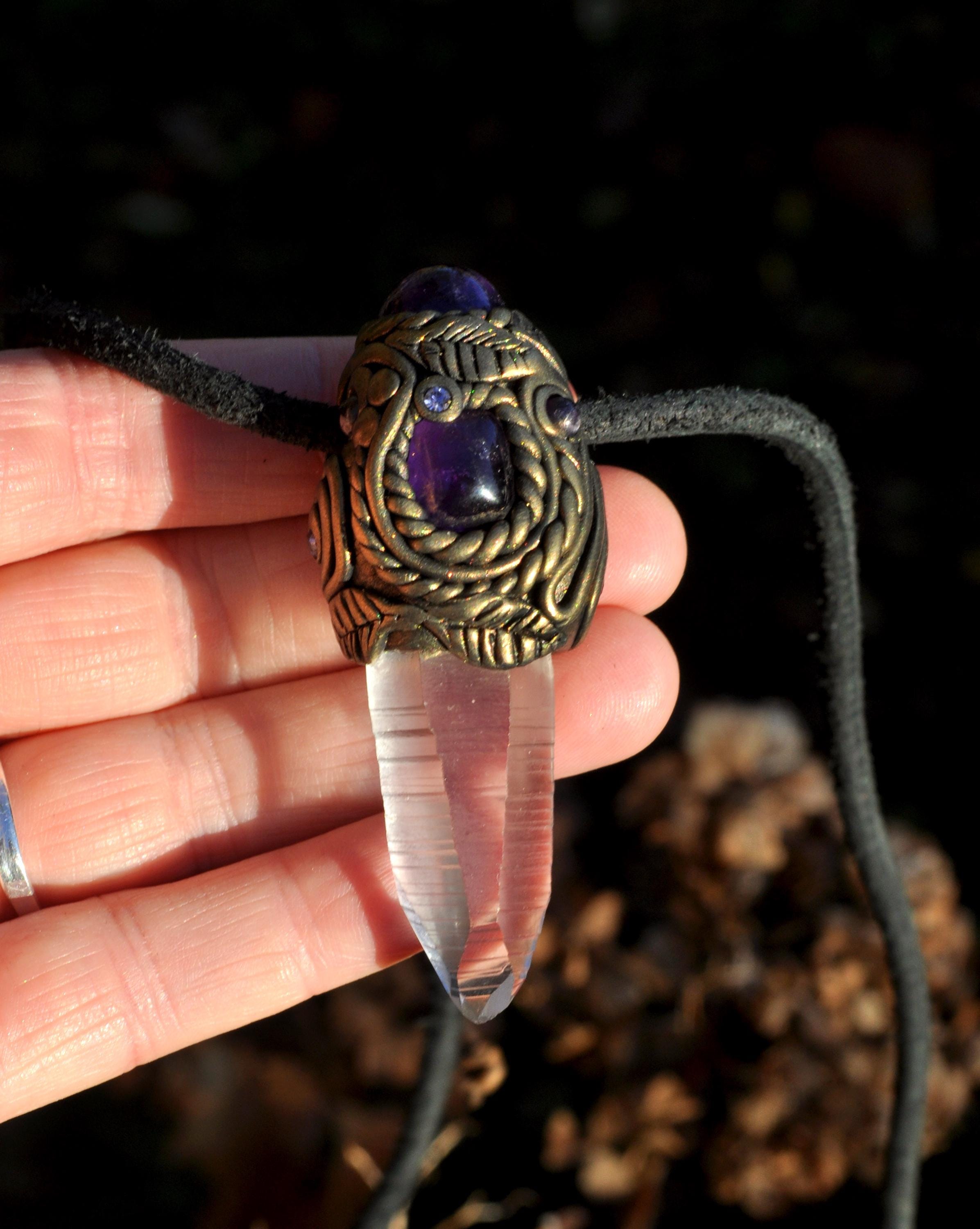 This pendant is gently cleansed with White Sage or Yerba Santa before shipping so it arrives refreshed and ready to wear. The crystal is securely set in a strong clay design and hangs on a durable black leather necklace with a lobster clasp. Because each piece is handmade, it carries its own natural character and subtle artistic variations, making it truly one-of-a-kind.