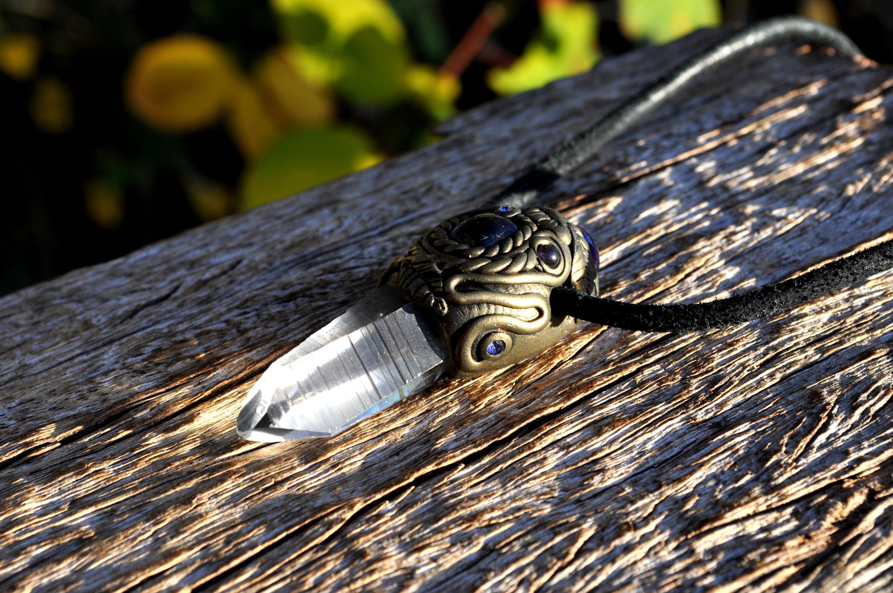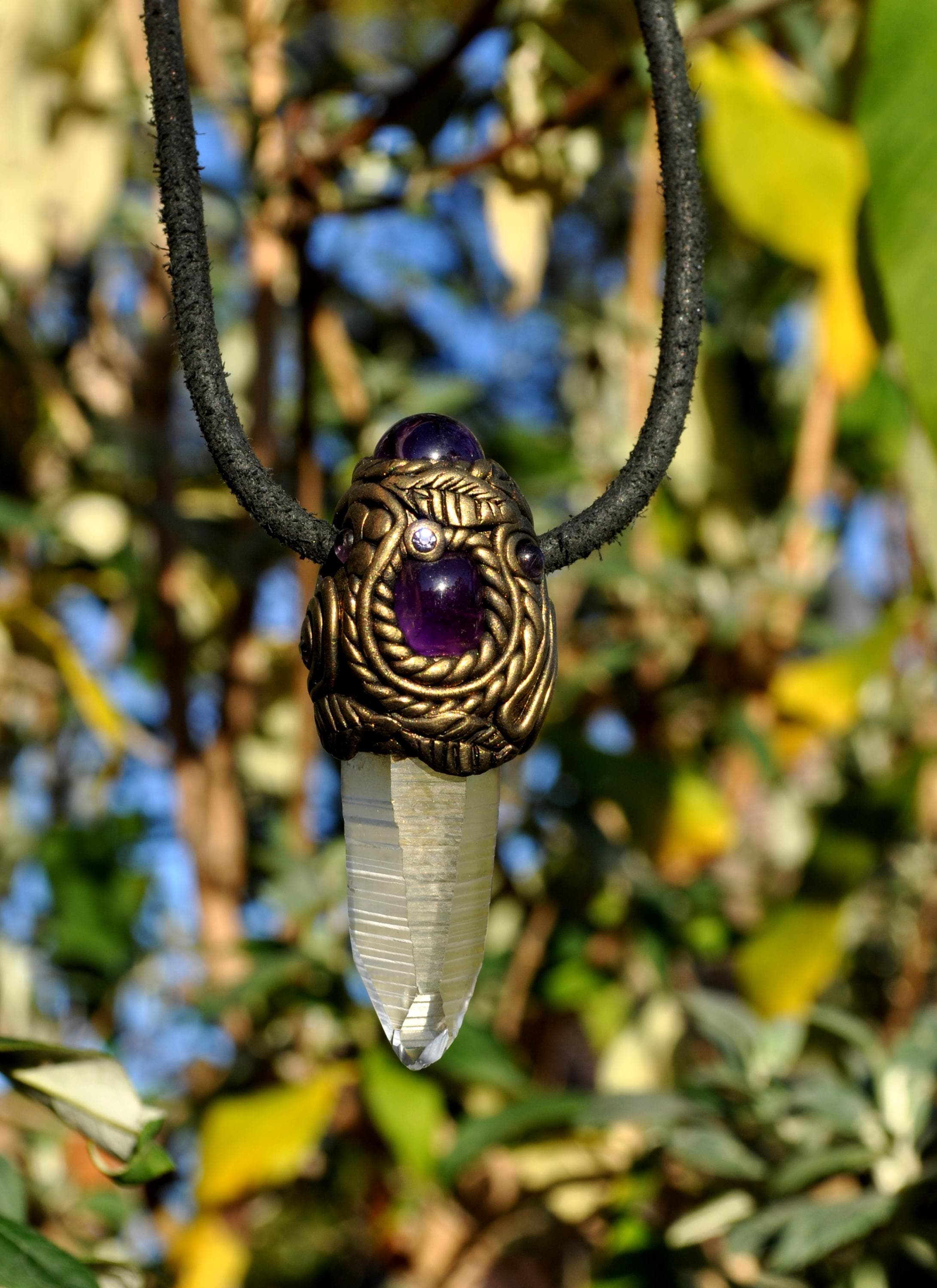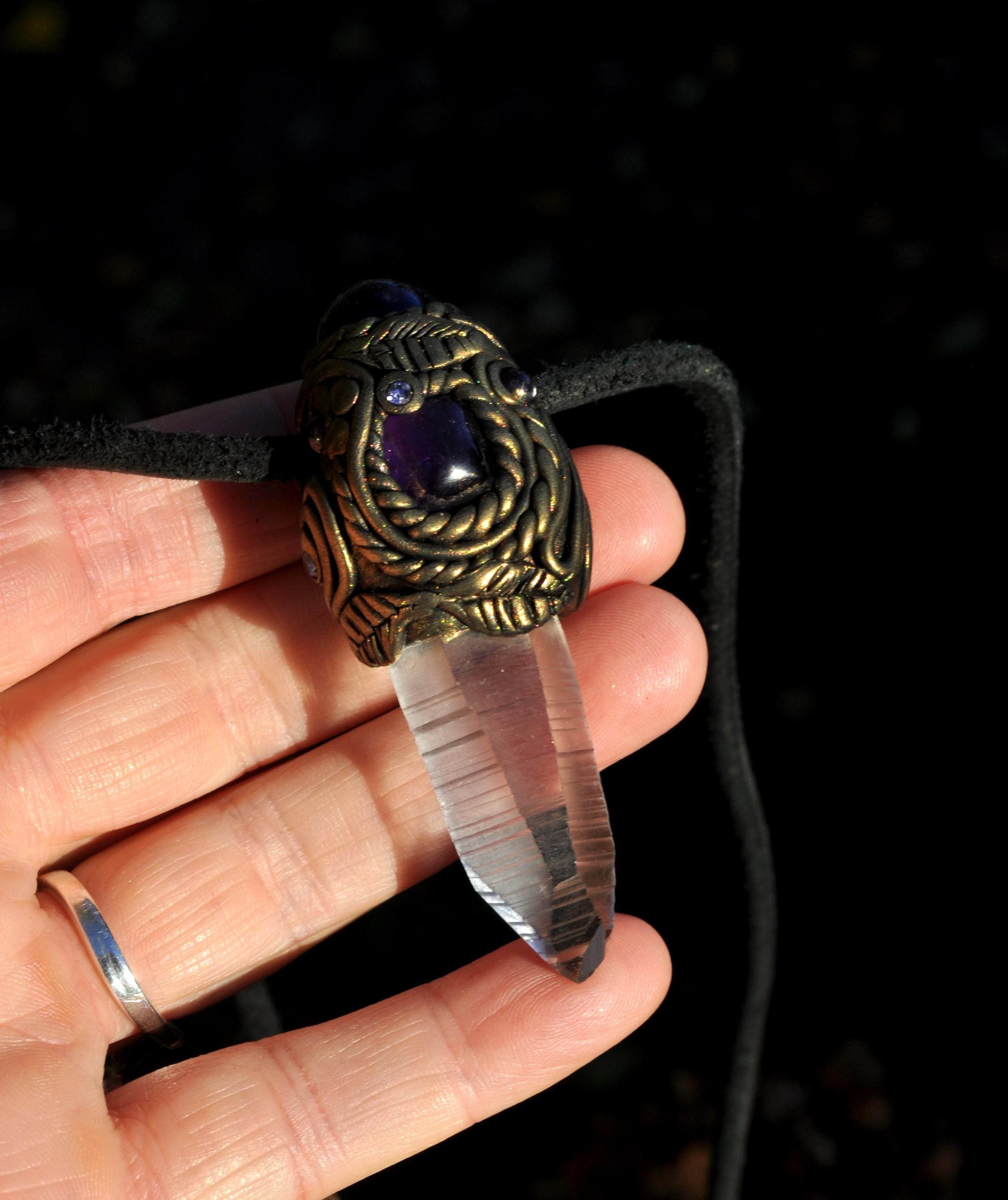 Together, the uplifting, connective nature of the Lemurian Seed Crystal and the soothing presence of Amethyst form a balanced combination. This pendant is not only a striking statement piece but also a thoughtful companion for meditation, quiet moments, or daily wear.