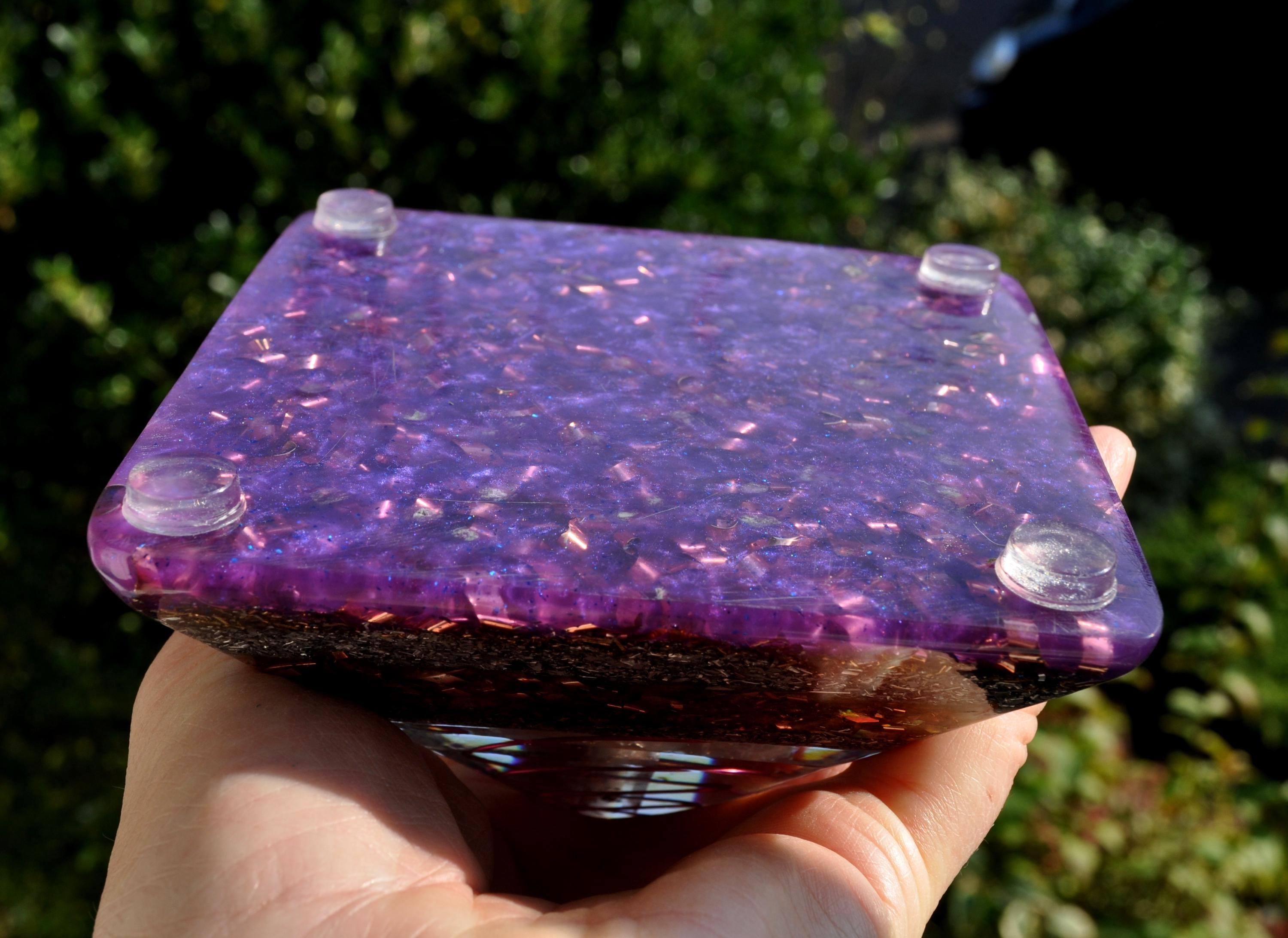 Orgonite® is a man-made composite of resin, metal shavings, and quartz crystal. The name Orgonite® and Orgone Generator® are registered trademarks owned by Karl Hans Welz – I have his written permission to use the term. Many collectors enjoy orgonite as unique decorative art pieces and metaphysical tools inspired by Wilhelm Reich’s work and the concept of orgone energy (also known as Qi, Prana, or life-force energy).