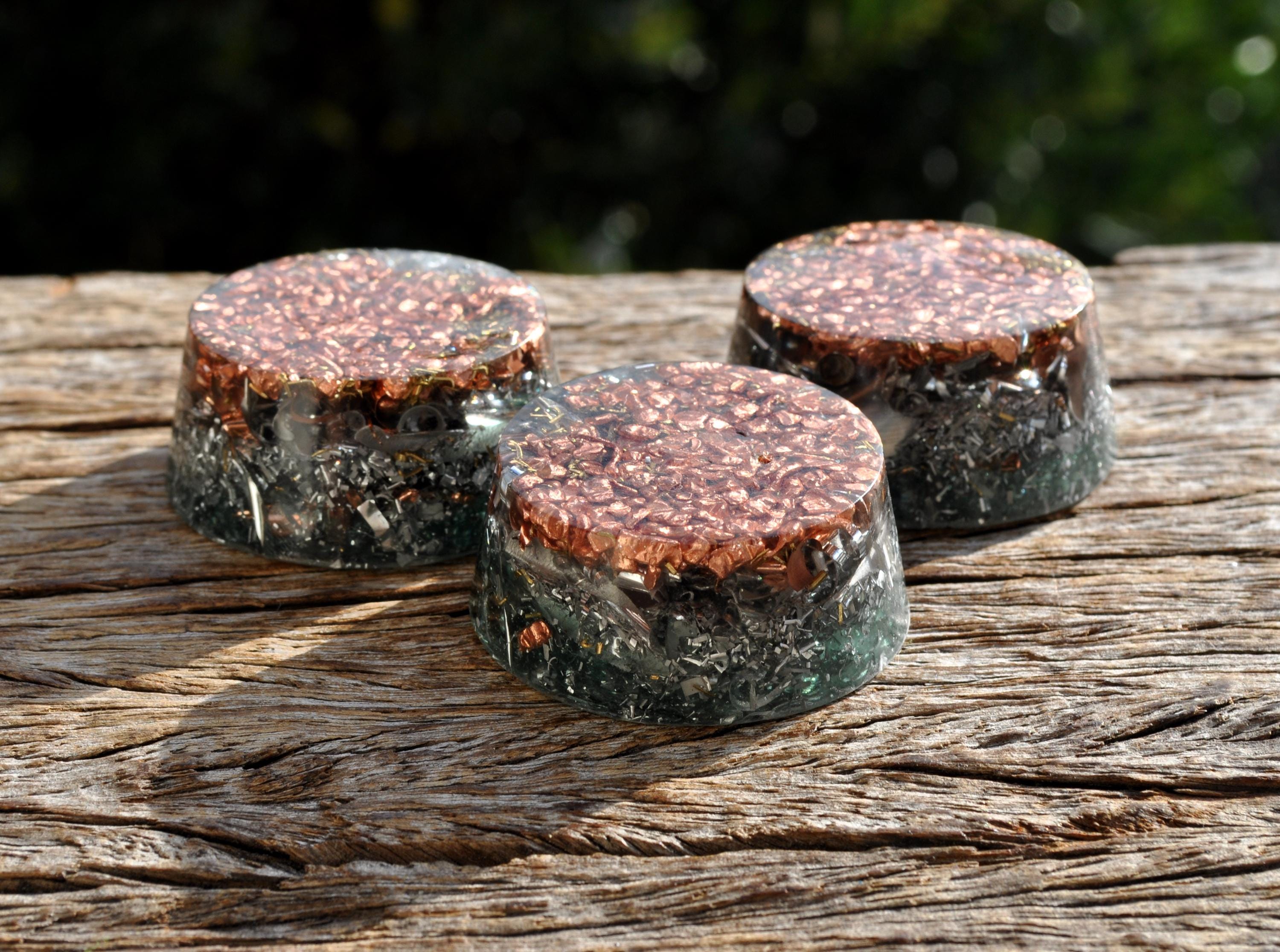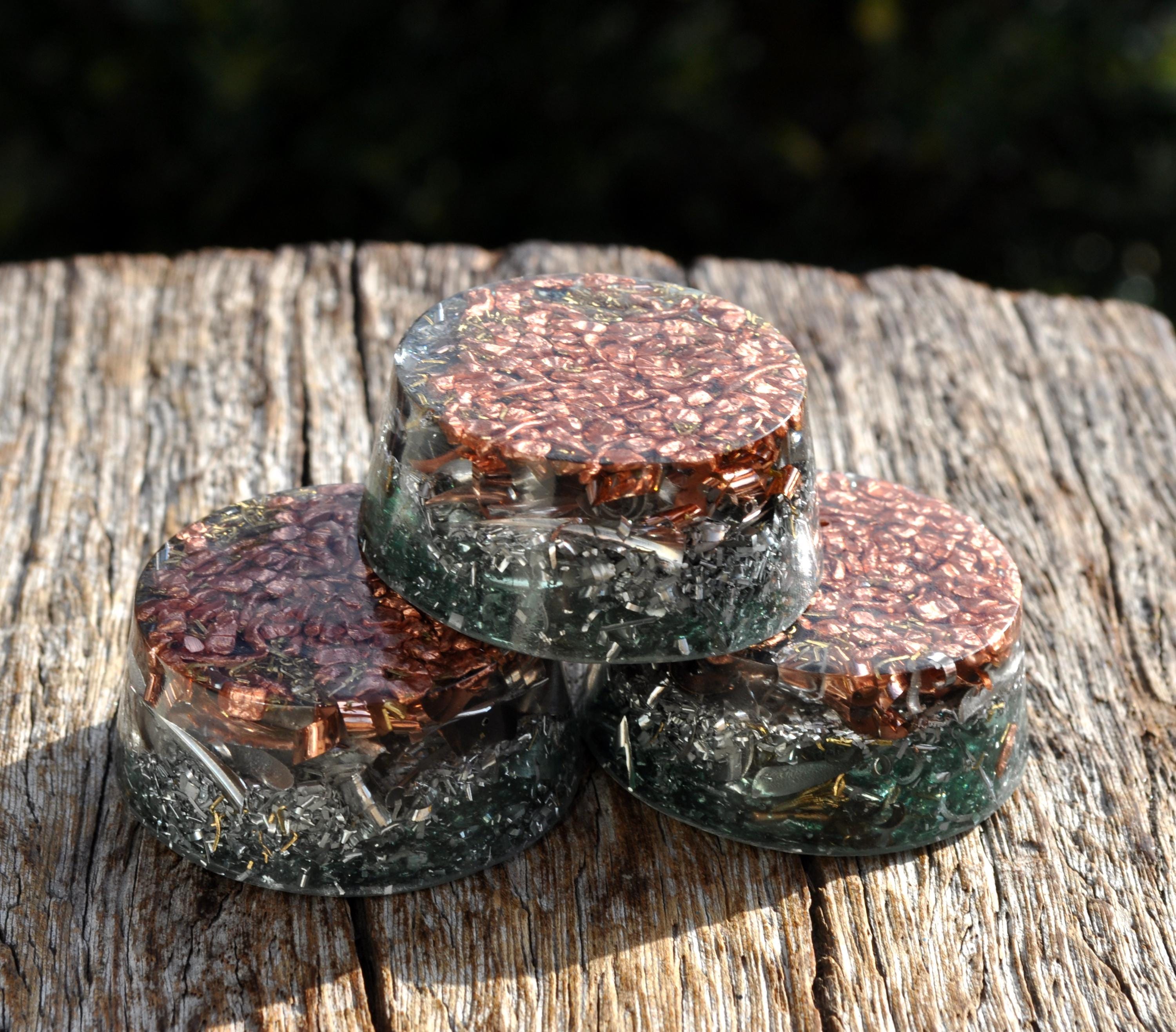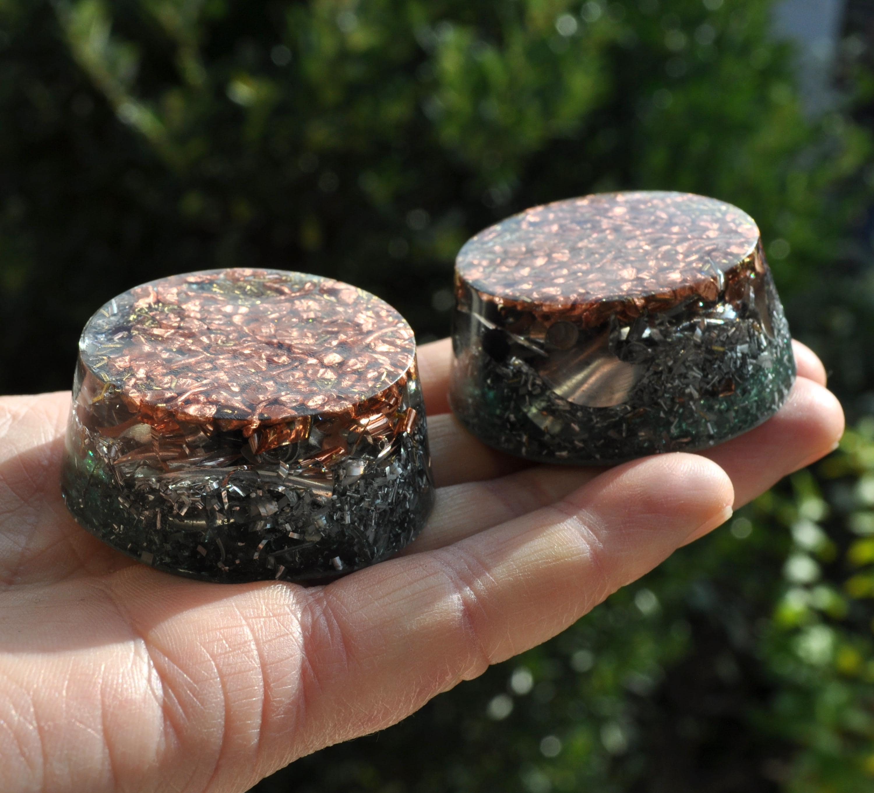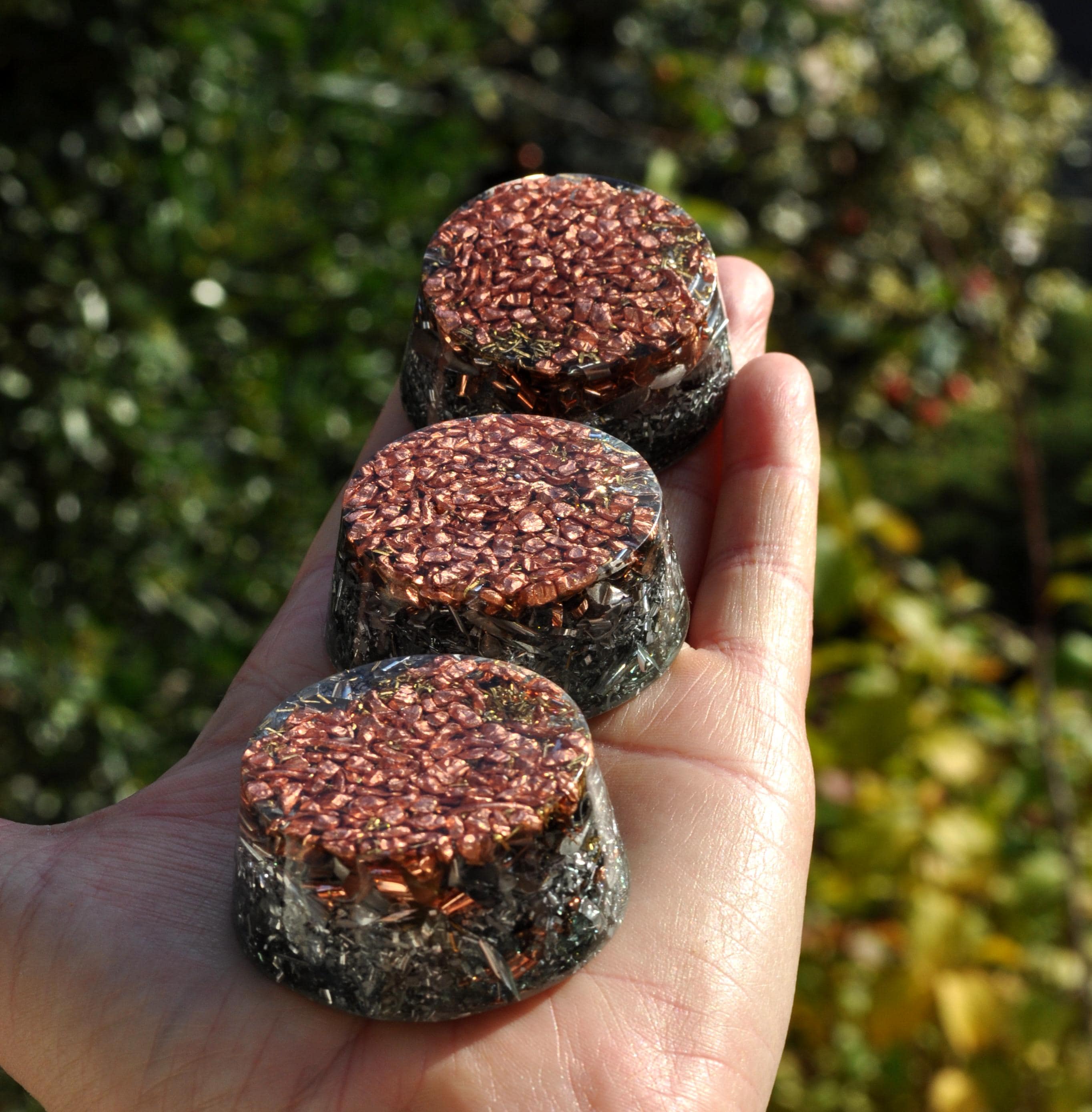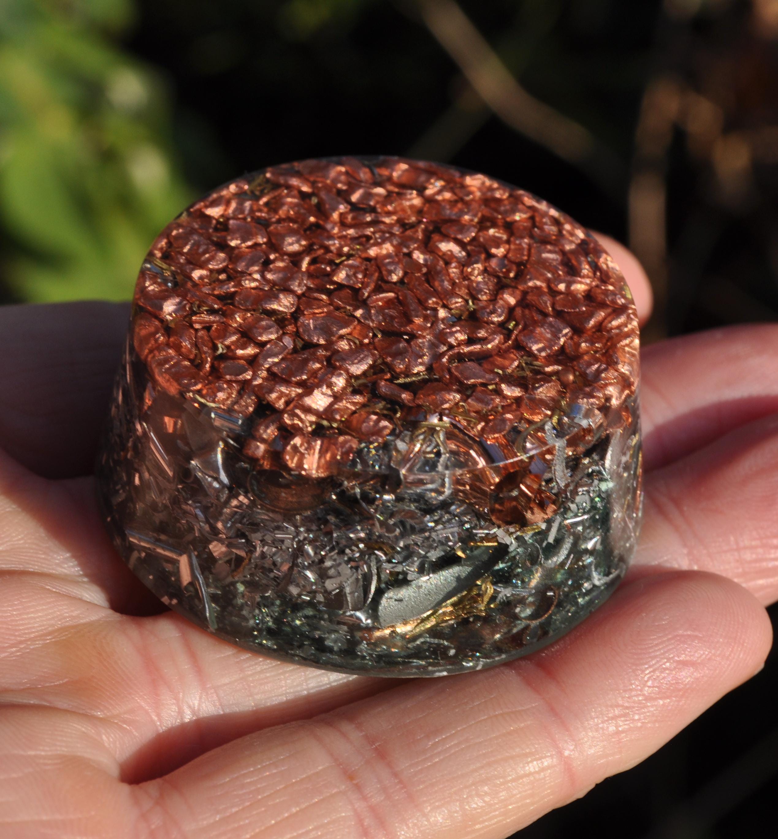 These handmade orgonite towerbusters are crafted in small batches in Eindhoven, Netherlands. The top layer features copper shavings, giving the piece a warm, high-quality appearance. Copper is often valued in orgonite builds for its strong conductivity and its ability to support smooth, balanced energy flow.