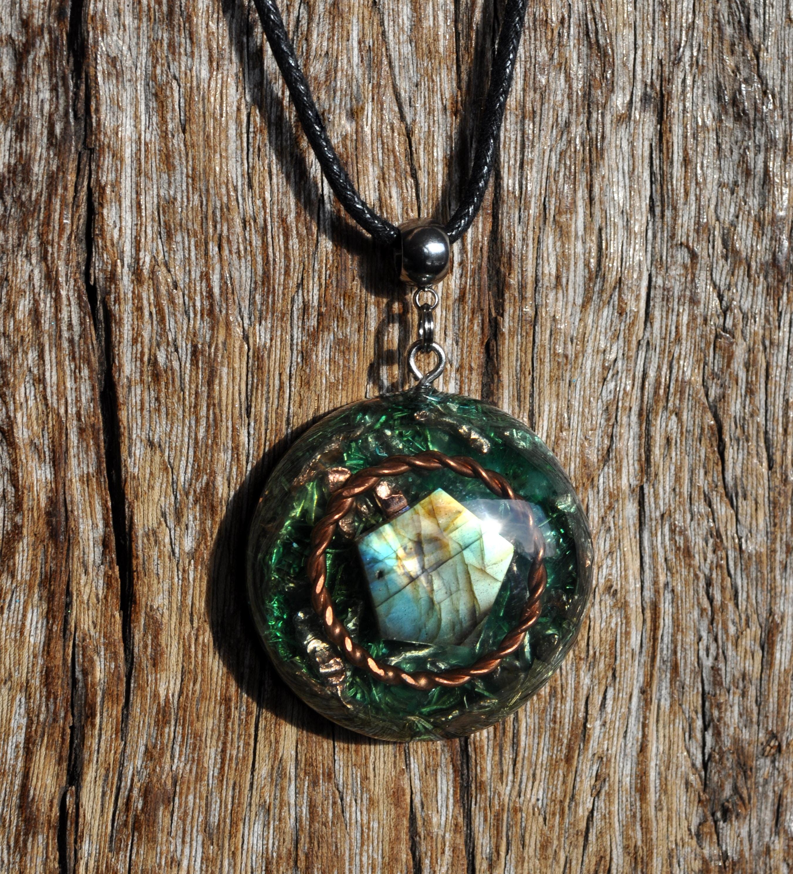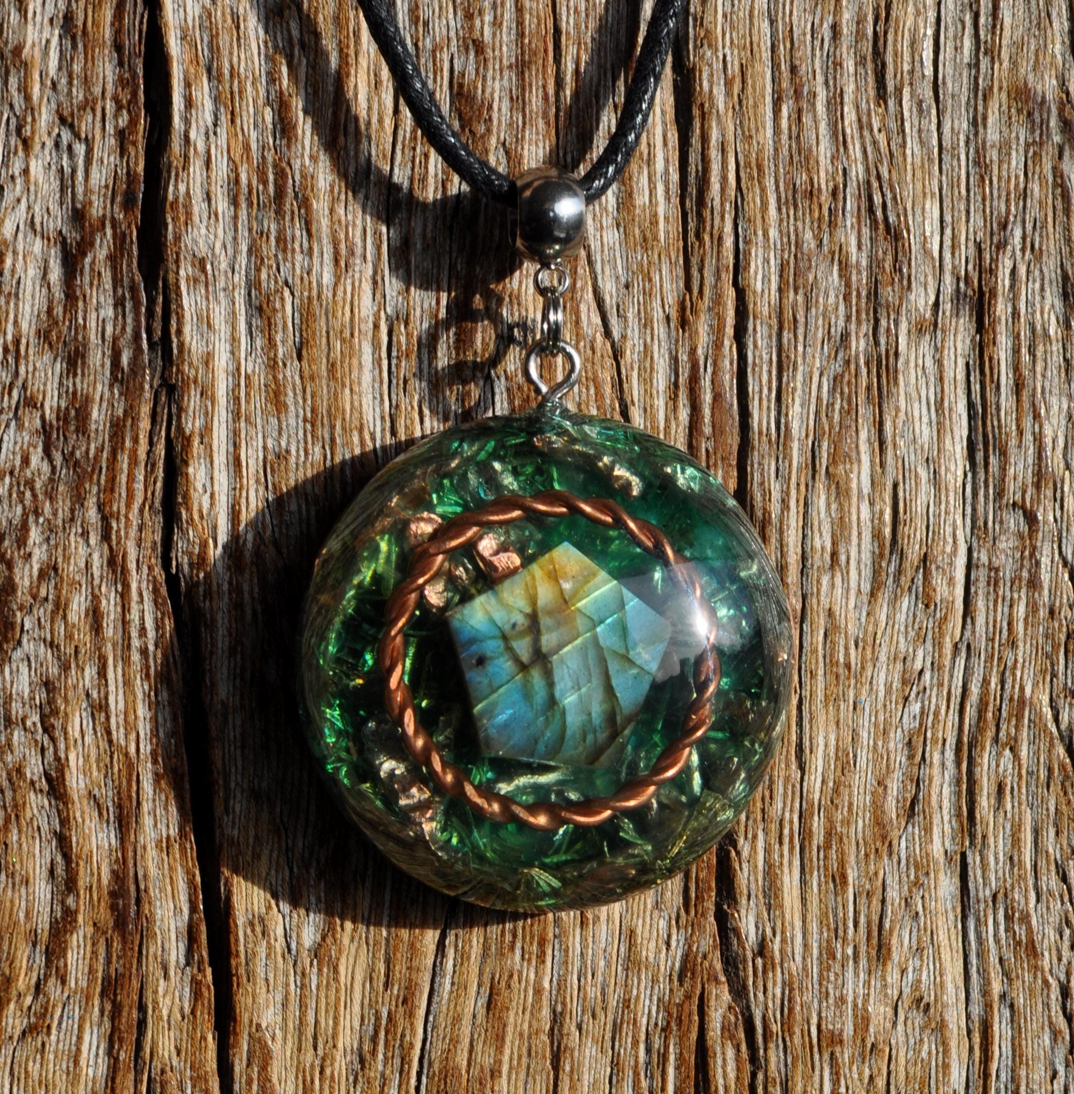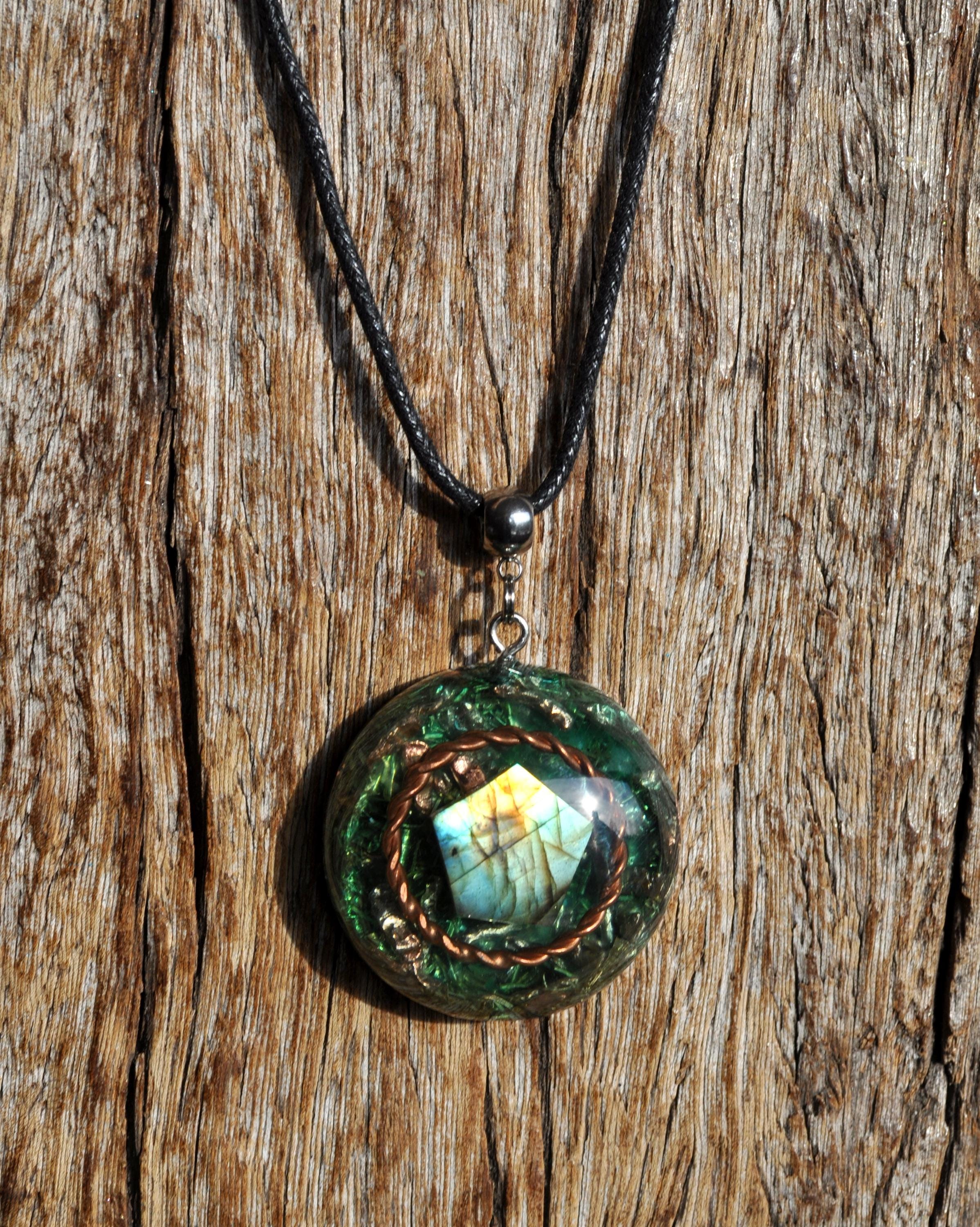 ✨ Orgonite Pendant with Copper Tensor Ring & Labradorite ✨