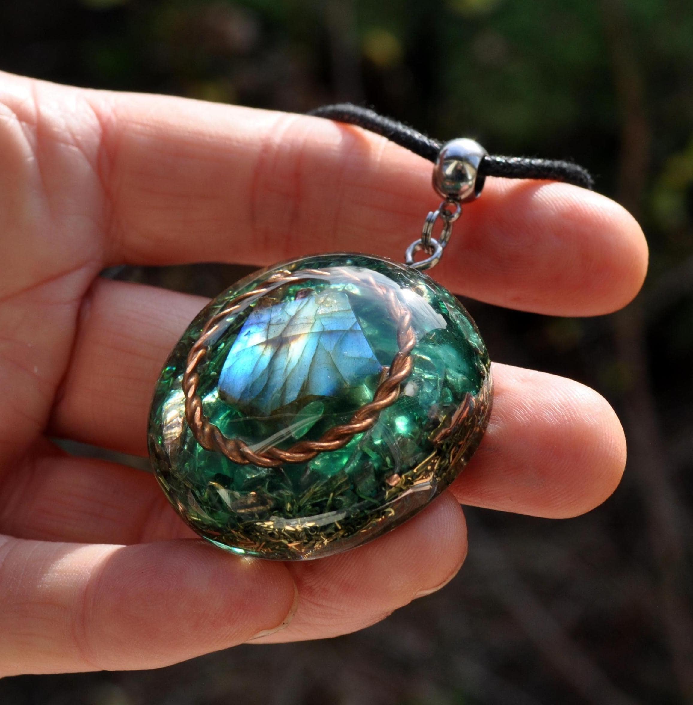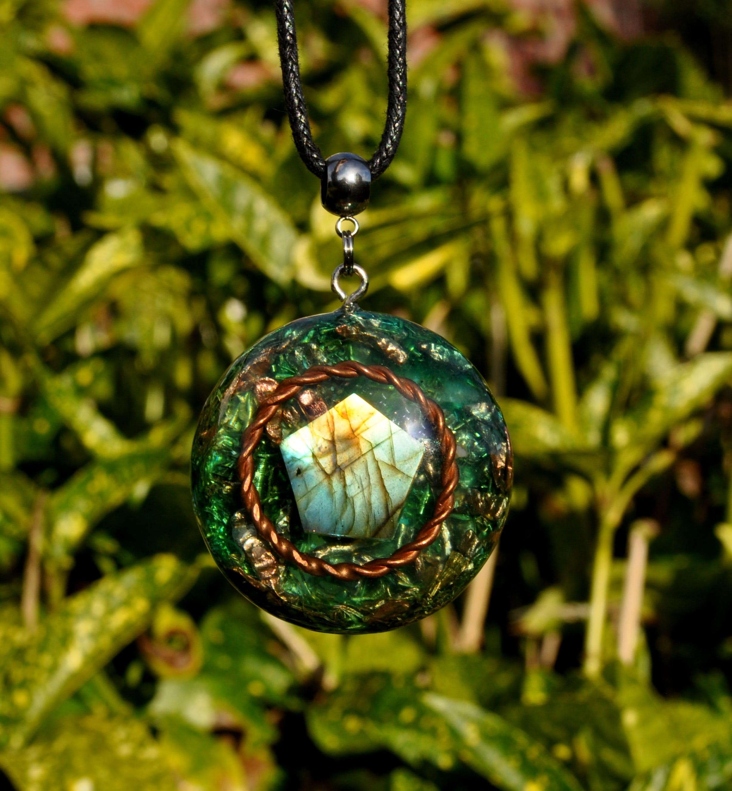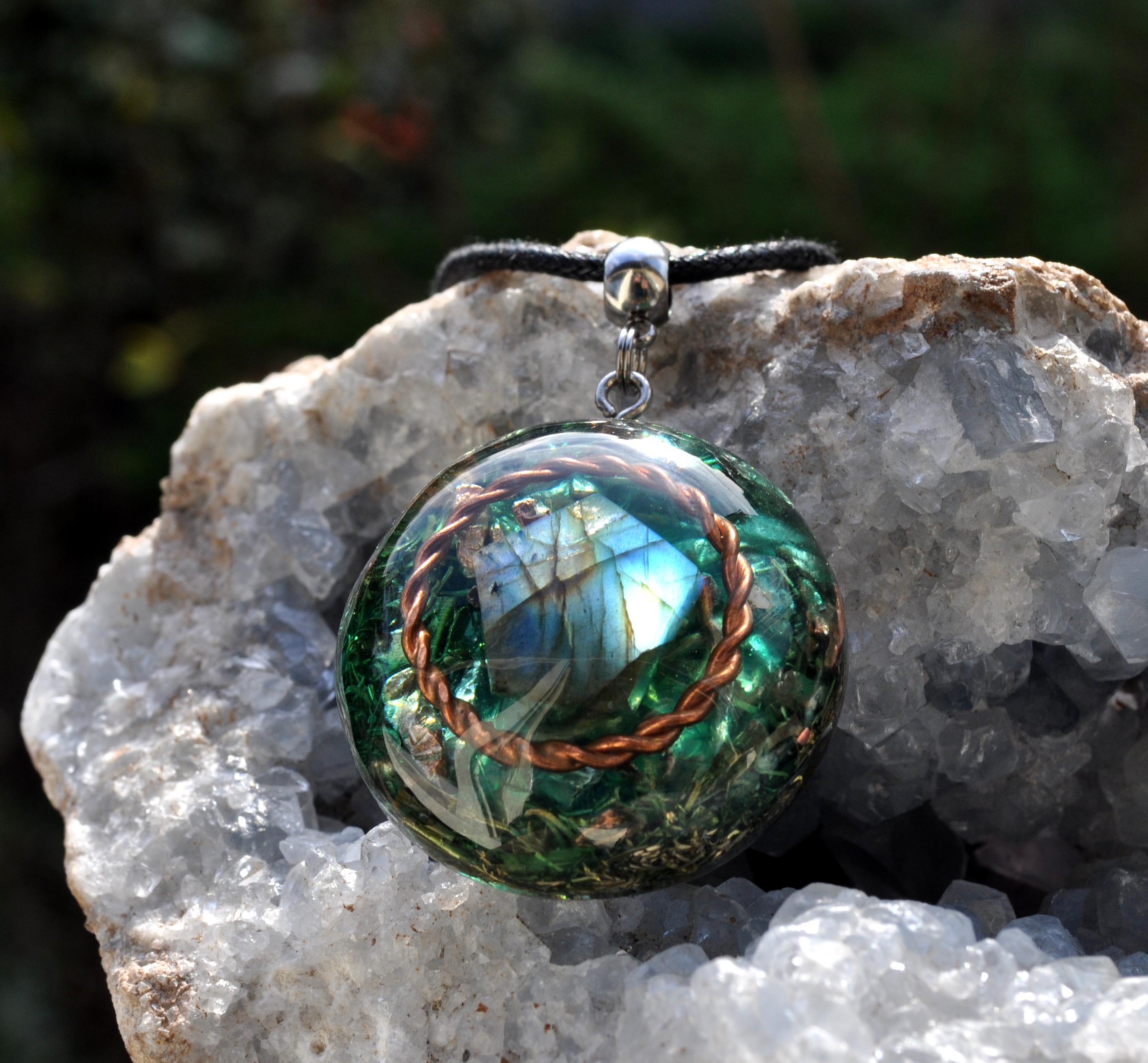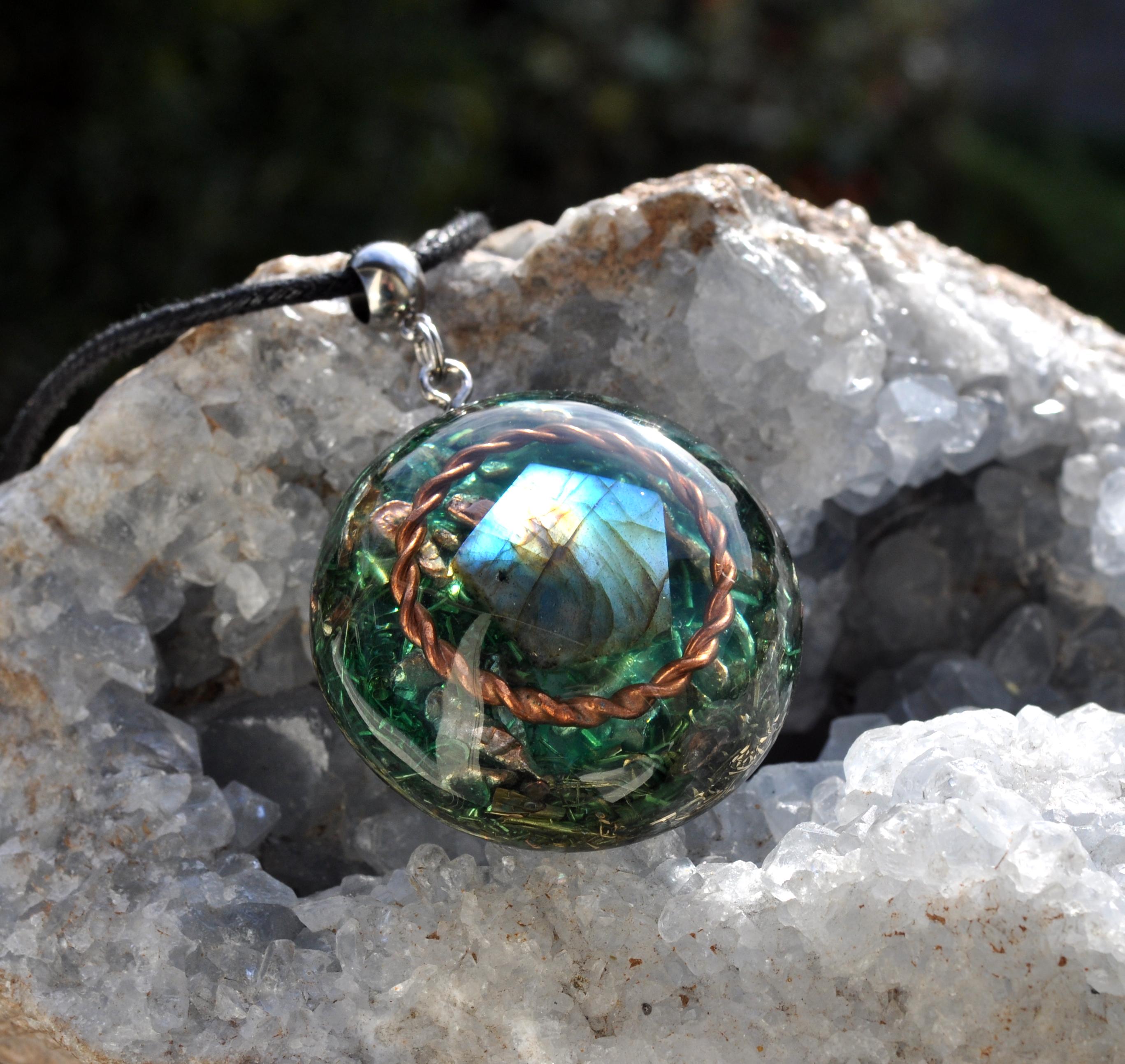 ✨ Orgonite Pendant with Copper Tensor Ring & Labradorite ✨