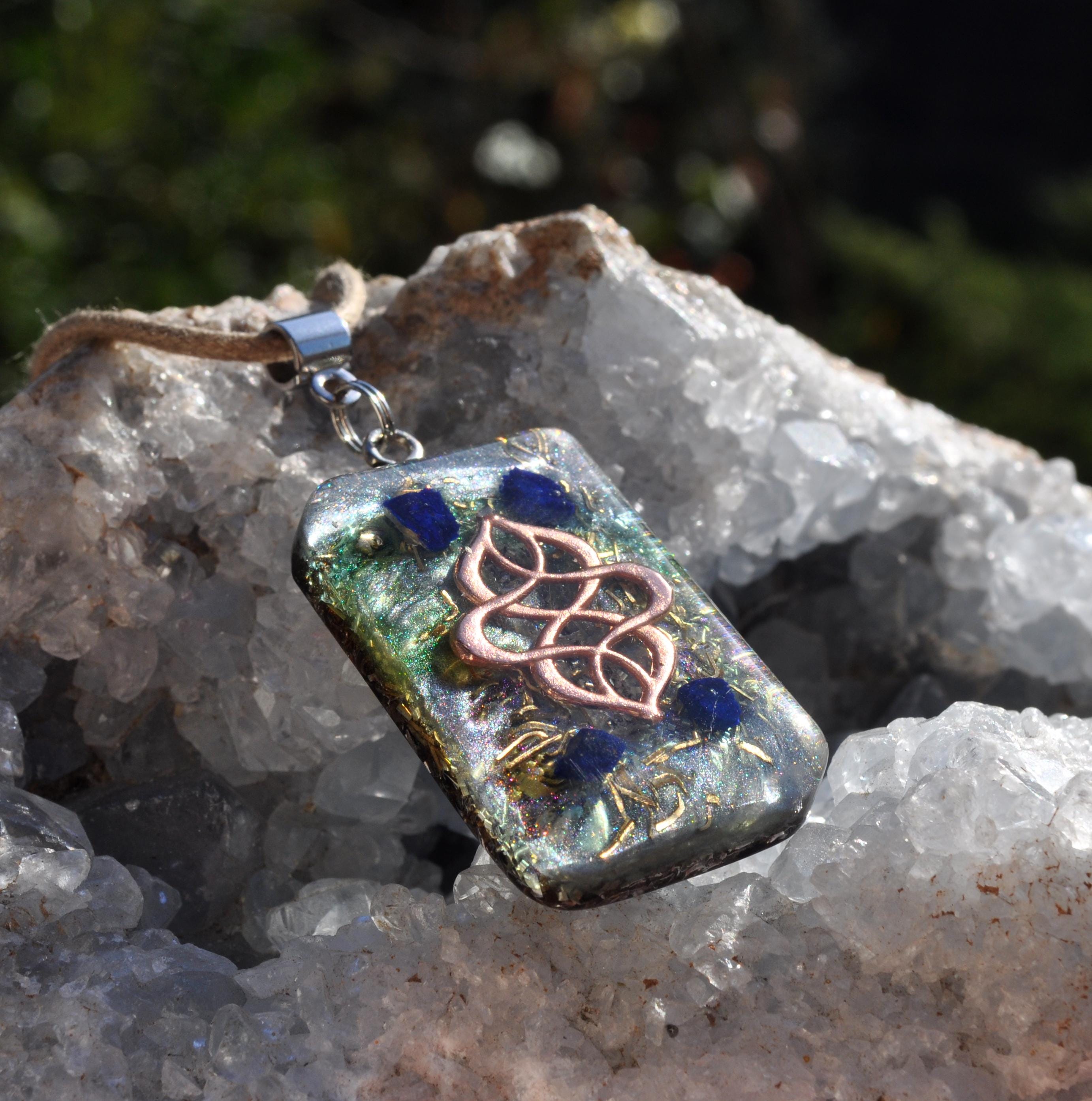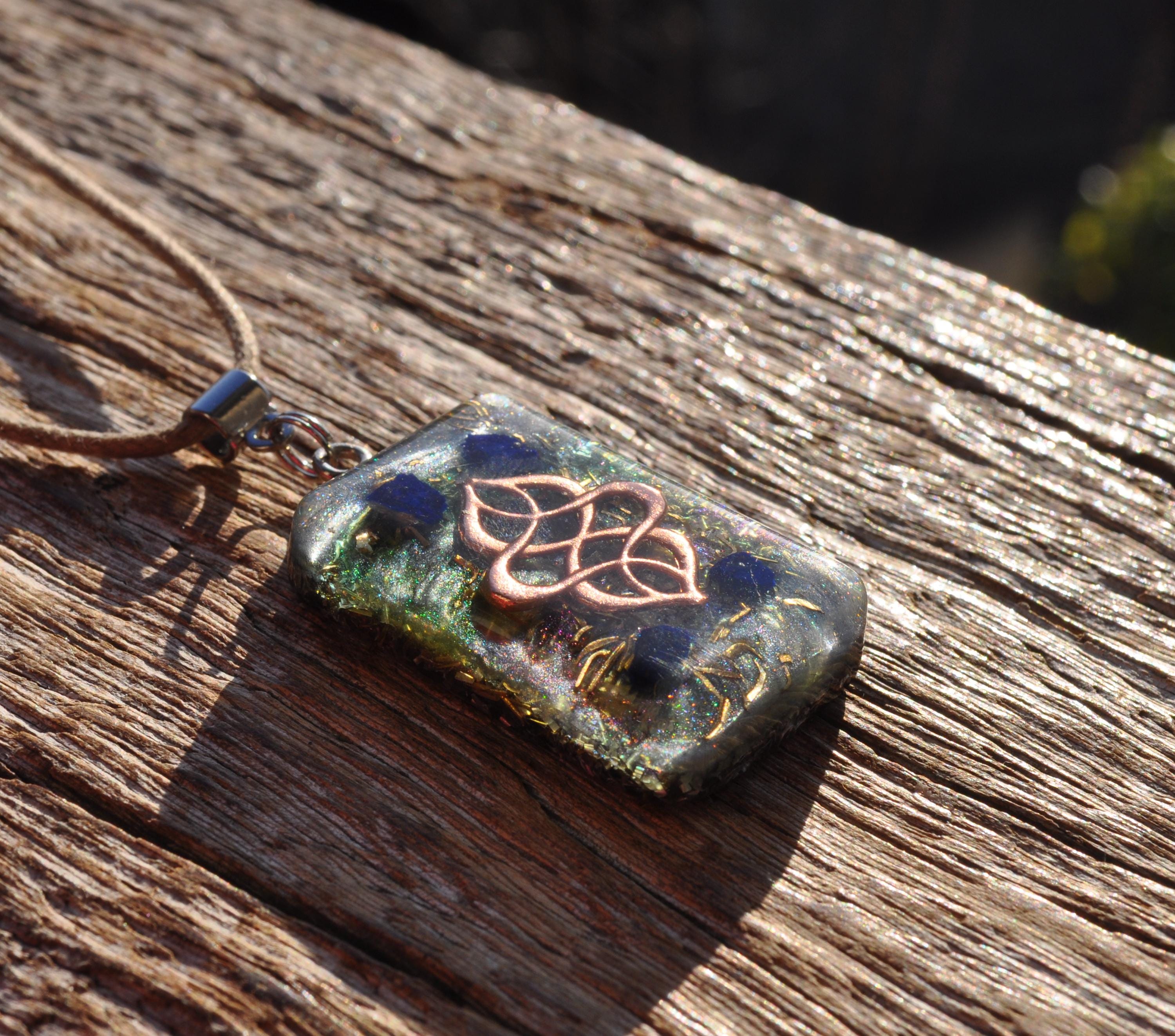 This handcrafted rectangular Orgonite® pendant is made with a thoughtful blend of brass, bronze, aluminum, iron, and copper shavings, set in durable resin (approximately 50/50 metal-to-resin ratio). Designed for energetic flow, this piece is visually striking while supporting a balanced, grounded aesthetic.
