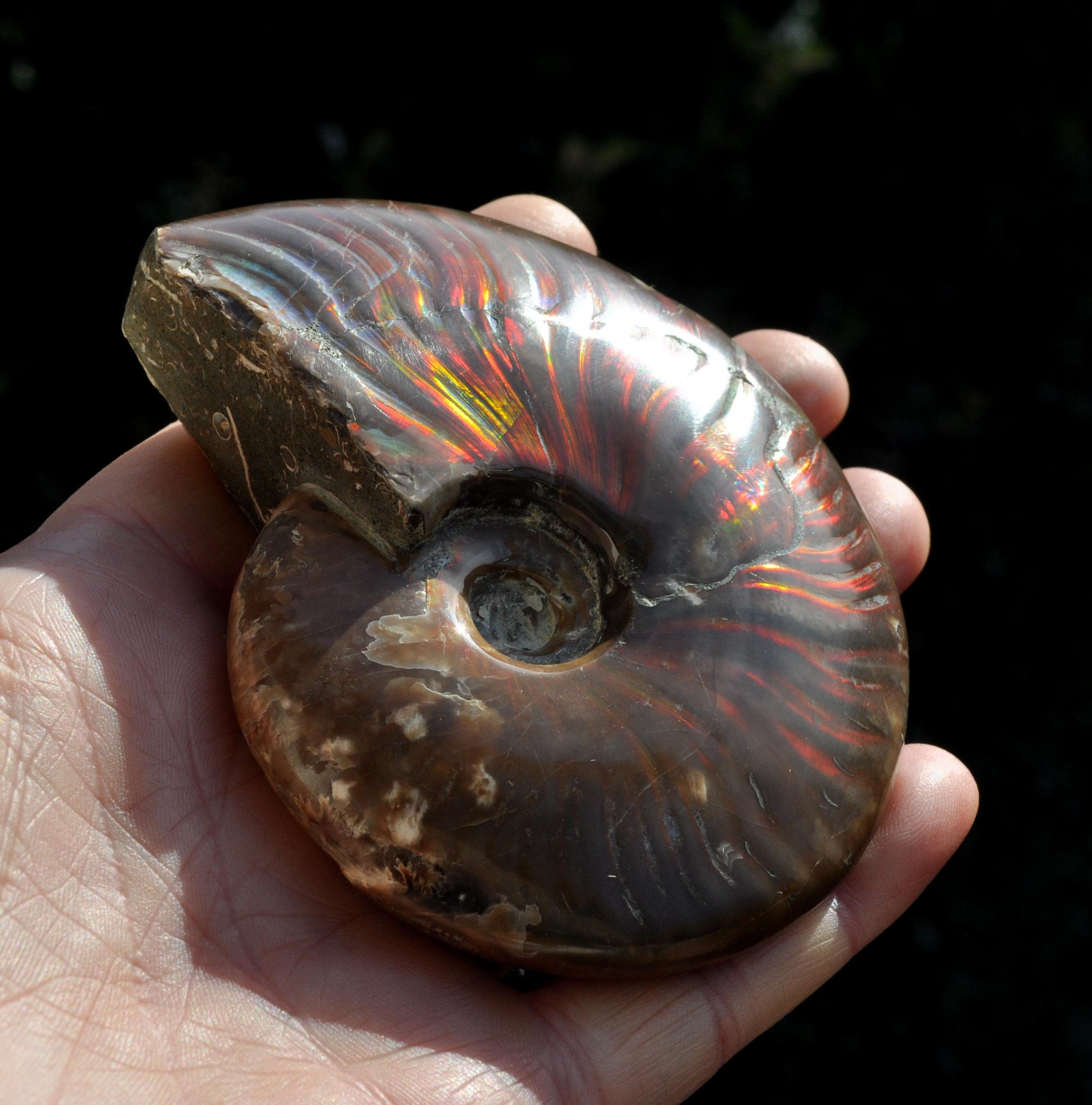 ✨ Red Fire Opalized Ammonite Fossil – Natural Spiral Shell – Chakra Energy – Ancient Sea Fossil – Collectible Specimen – Meditation Decor ✨
