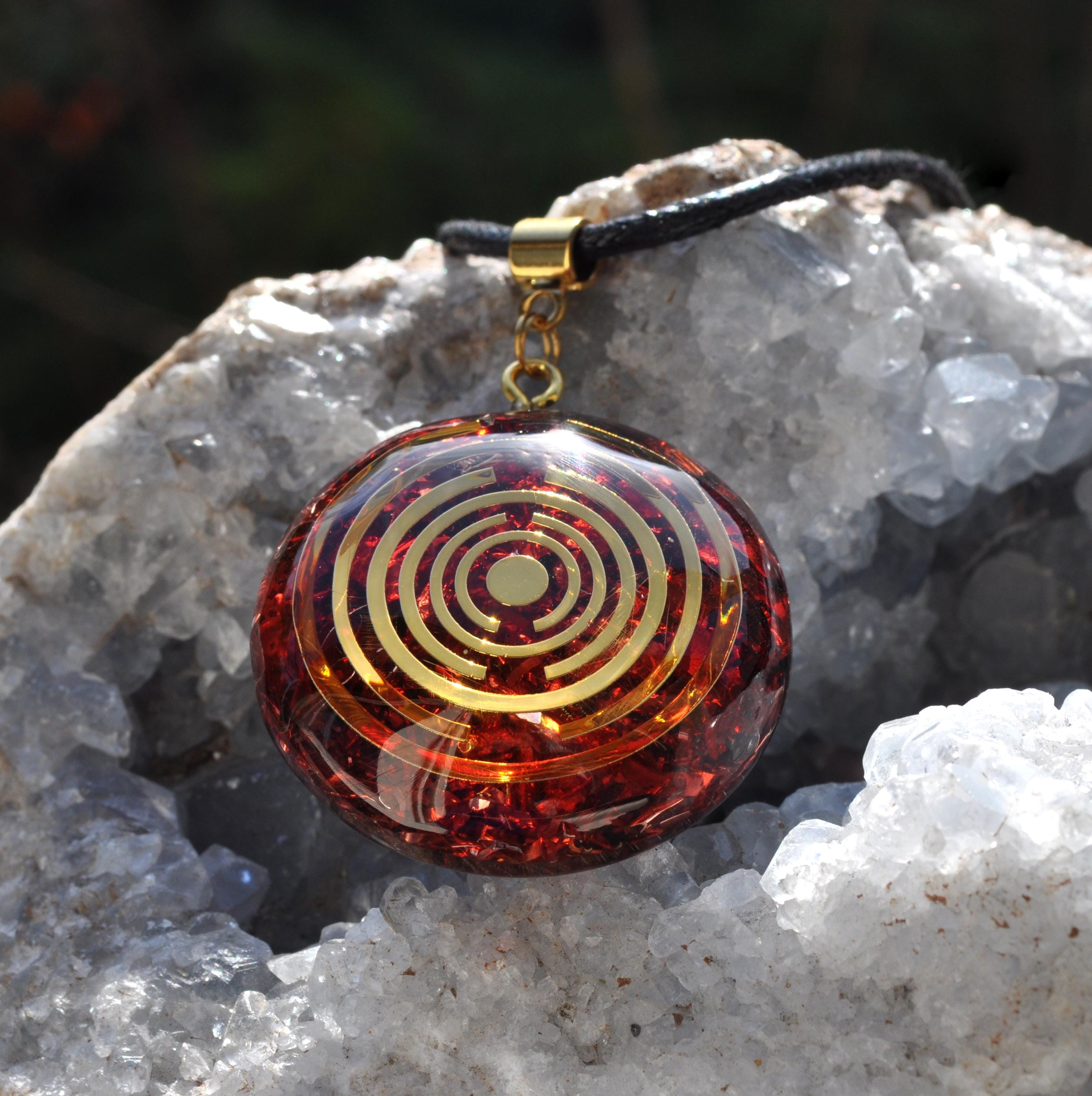 The orgonite resin and crystal combination is thought to harmonize symbolic energy in your surroundings, making this pendant a meaningful accessory for collectors of metaphysical jewelry.