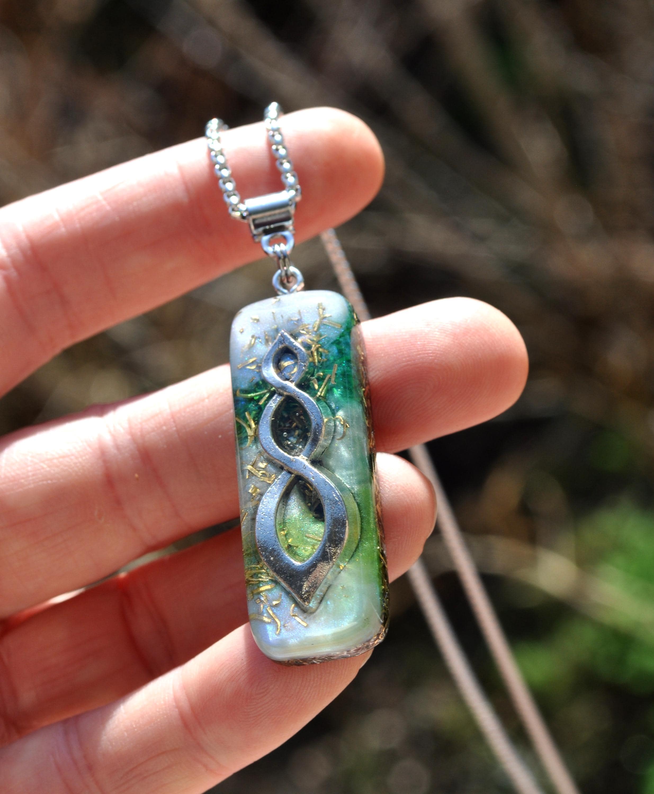 Handcrafted Orgonite® Pendant – Light Green & Soft Blue