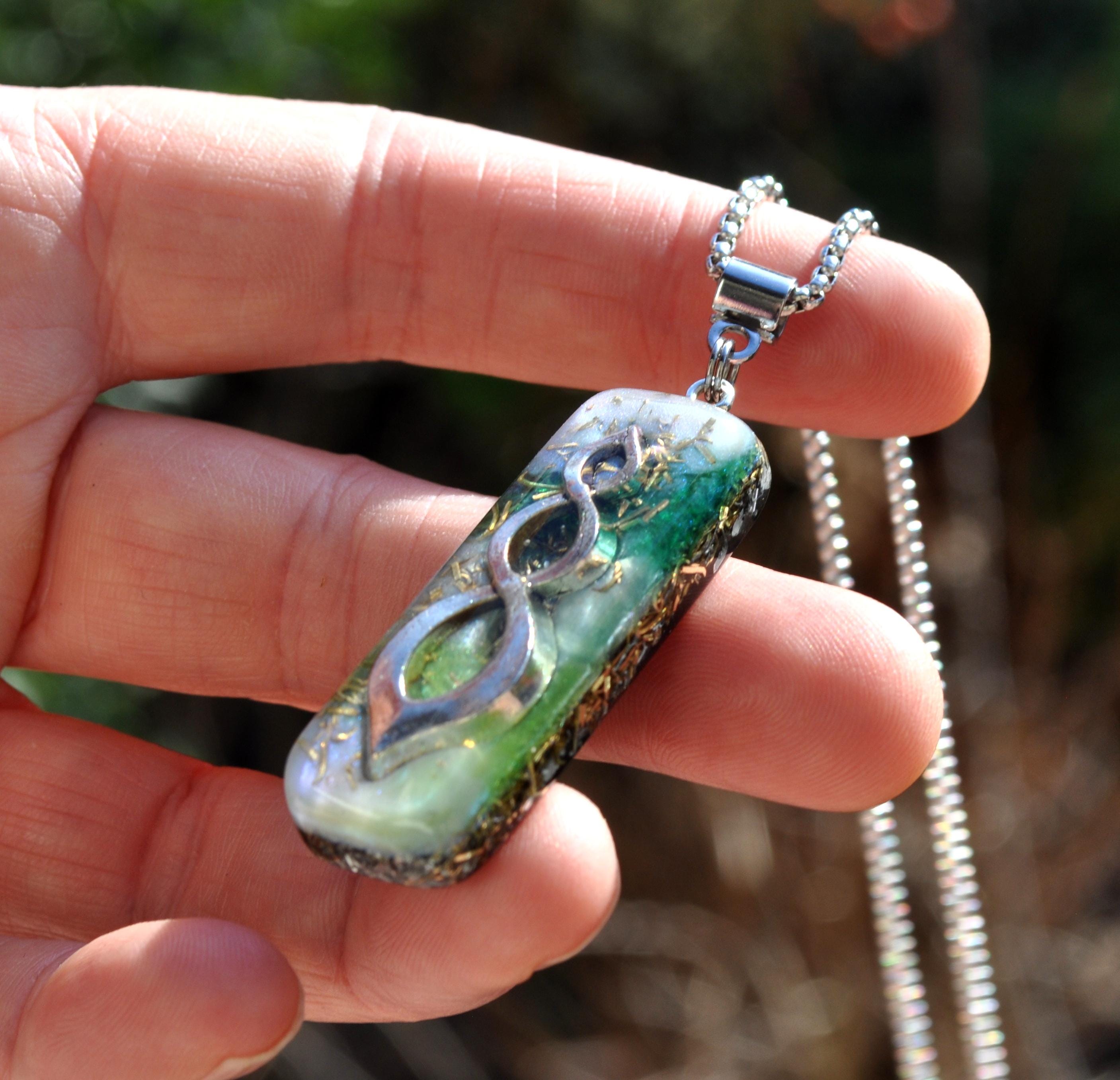 Orgonite® pendants are often chosen by people who want to feel more balanced around electronic devices. Many users believe Orgonite® helps to soften or harmonize electromagnetic fields (EMFs) from phones, computers, and other electronics, creating a calmer, more centered environment. Combined with grounding stones like Black Tourmaline and Shungite, this pendant is both a beautiful accessory and a symbolic tool for energetic support.