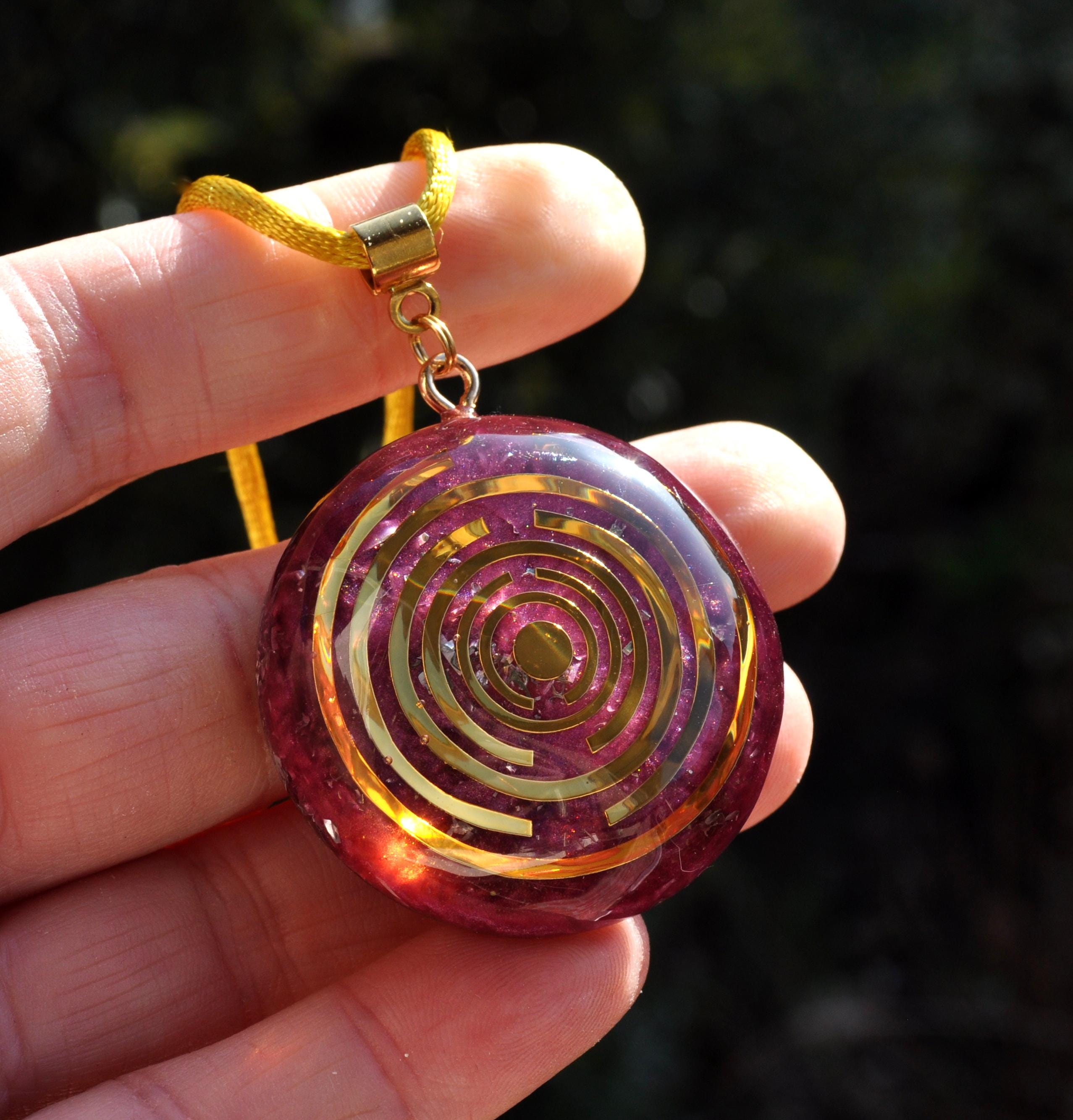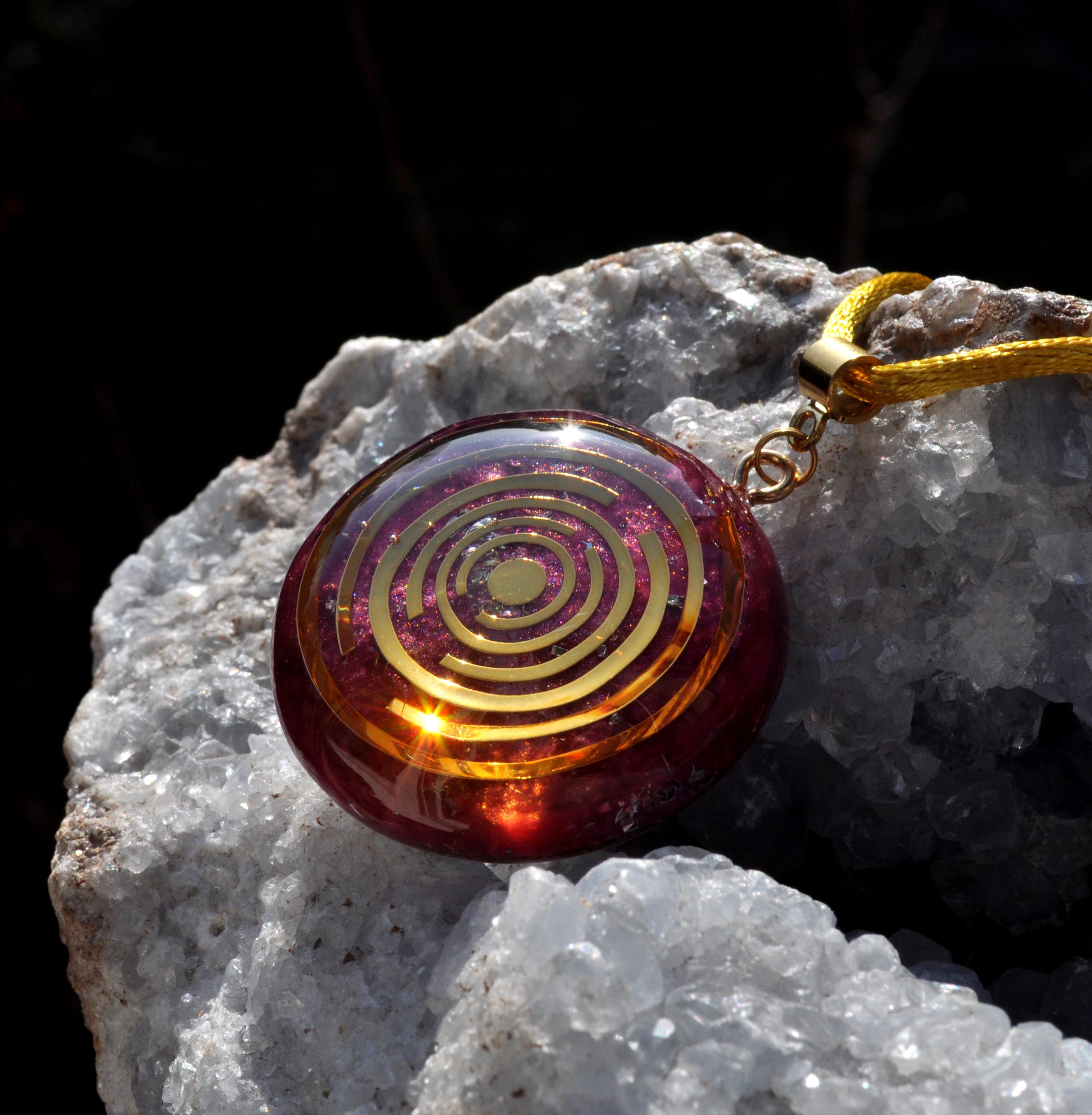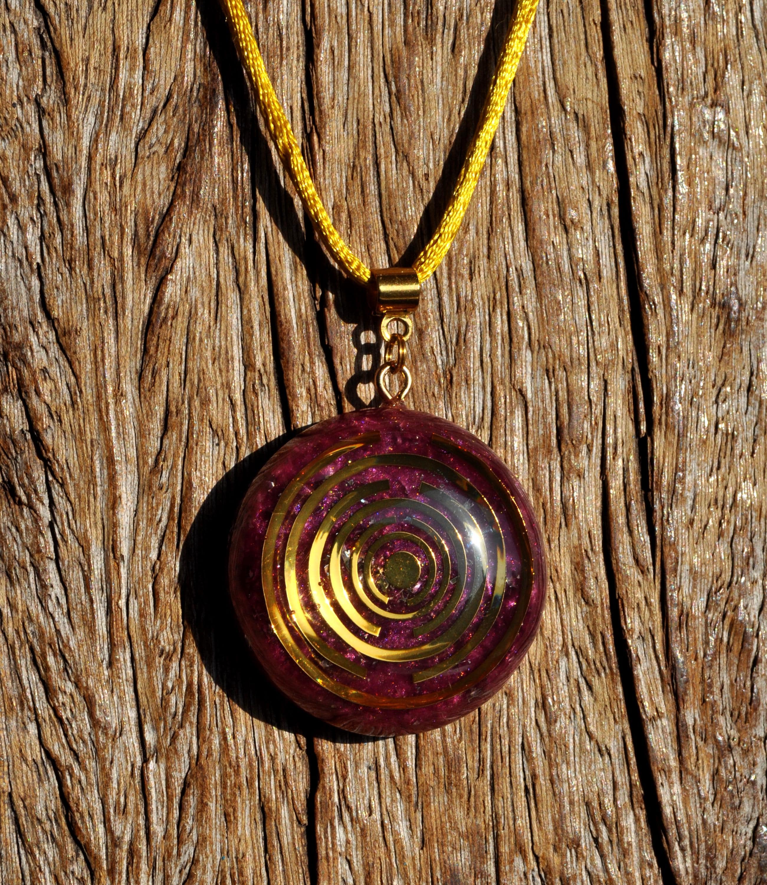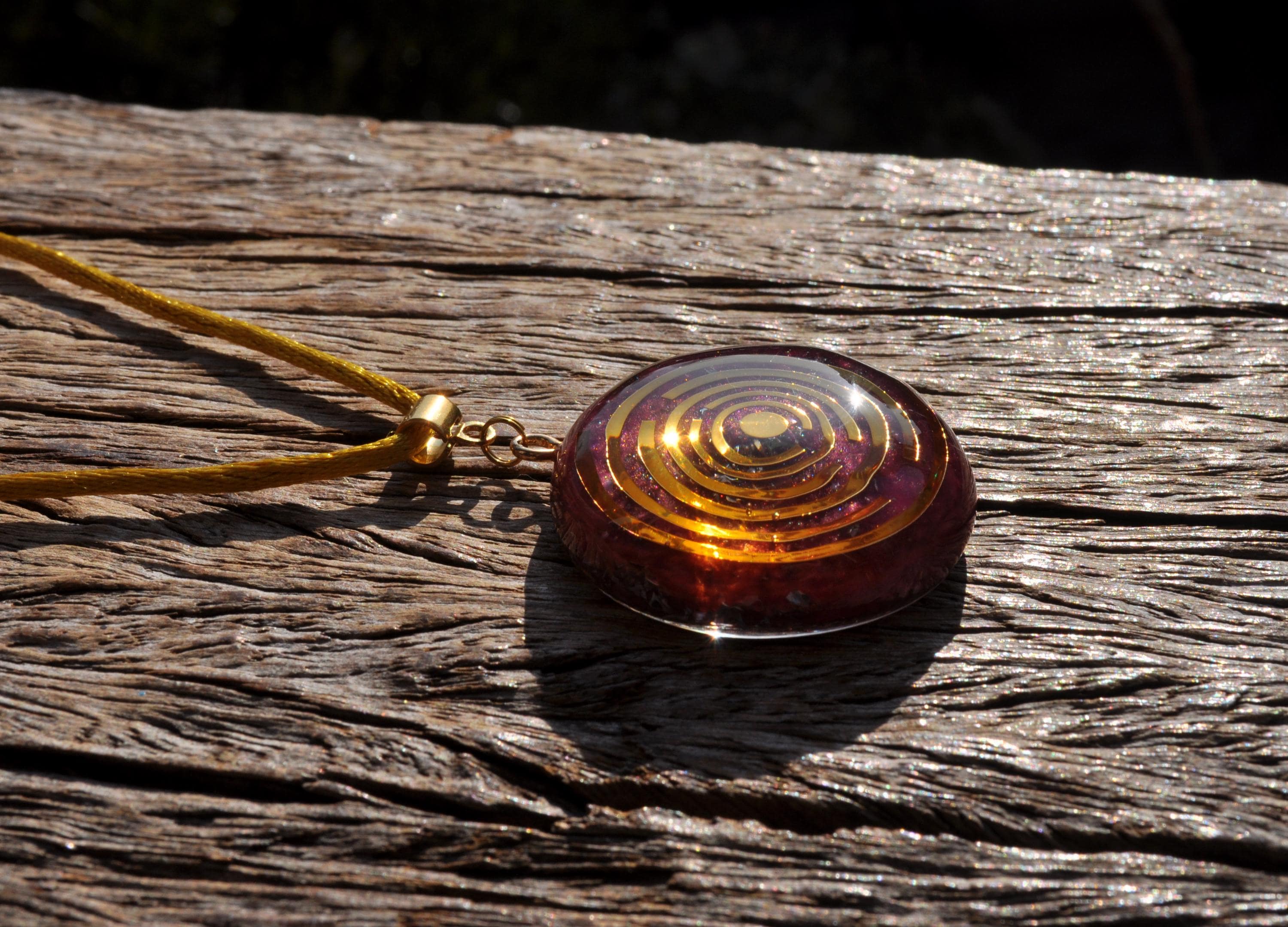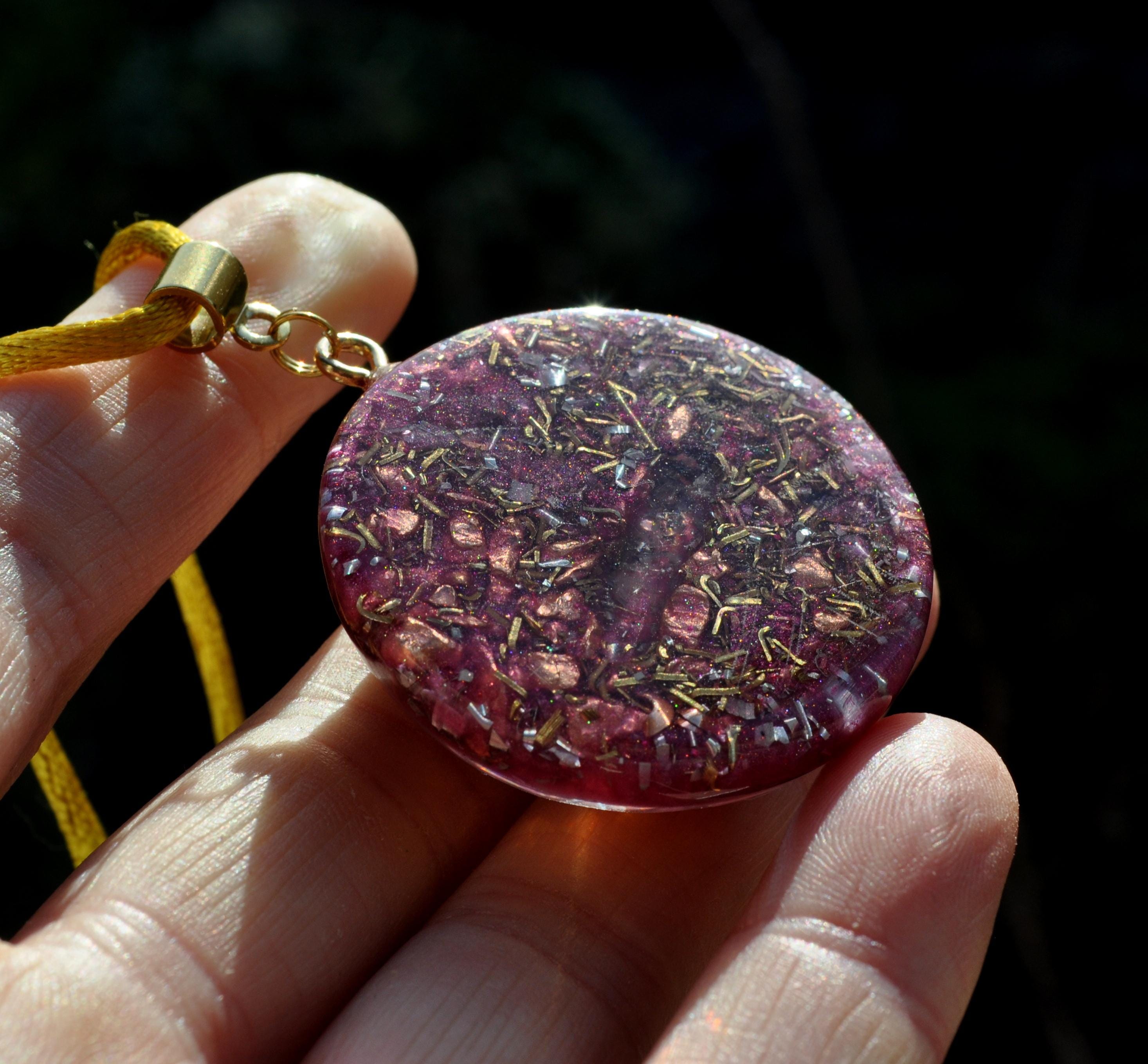 This handmade orgonite pendant centers around a copper-plated Lakhovsky Multi-Wave Oscillator (MWO) set into purple resin. The MWO design is a distinctive feature inspired by Georges Lakhovsky’s work with multi-wave oscillators. Copper is a natural conductor, widely appreciated for supporting balanced energetic flow and is often sought after in EMF protection jewelry and spiritual tools.