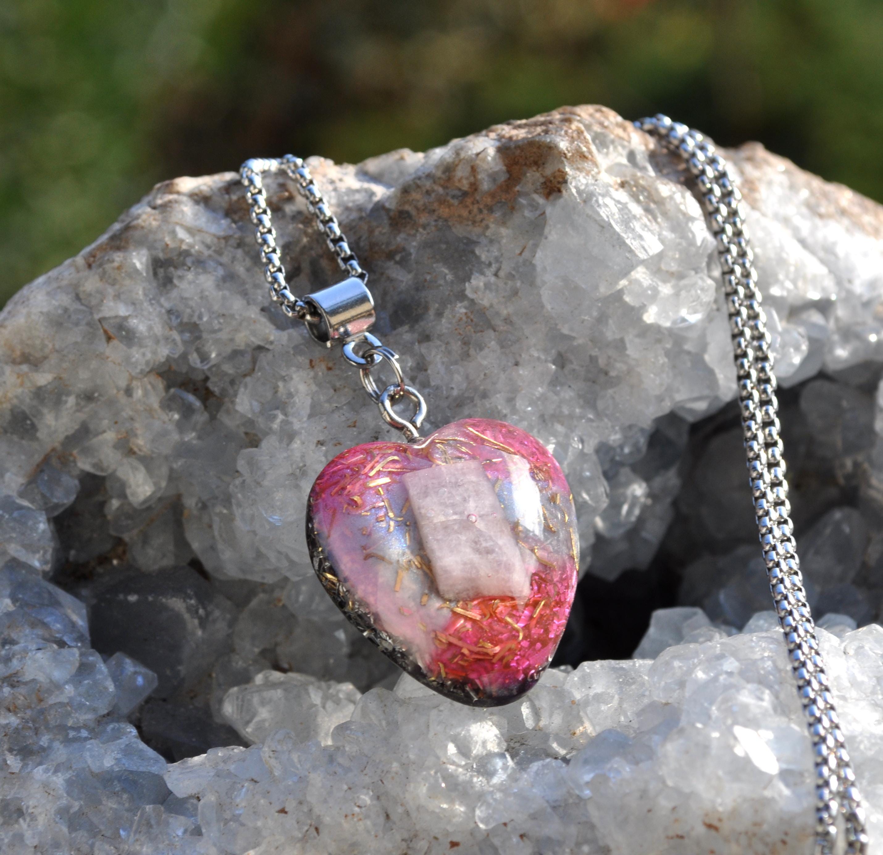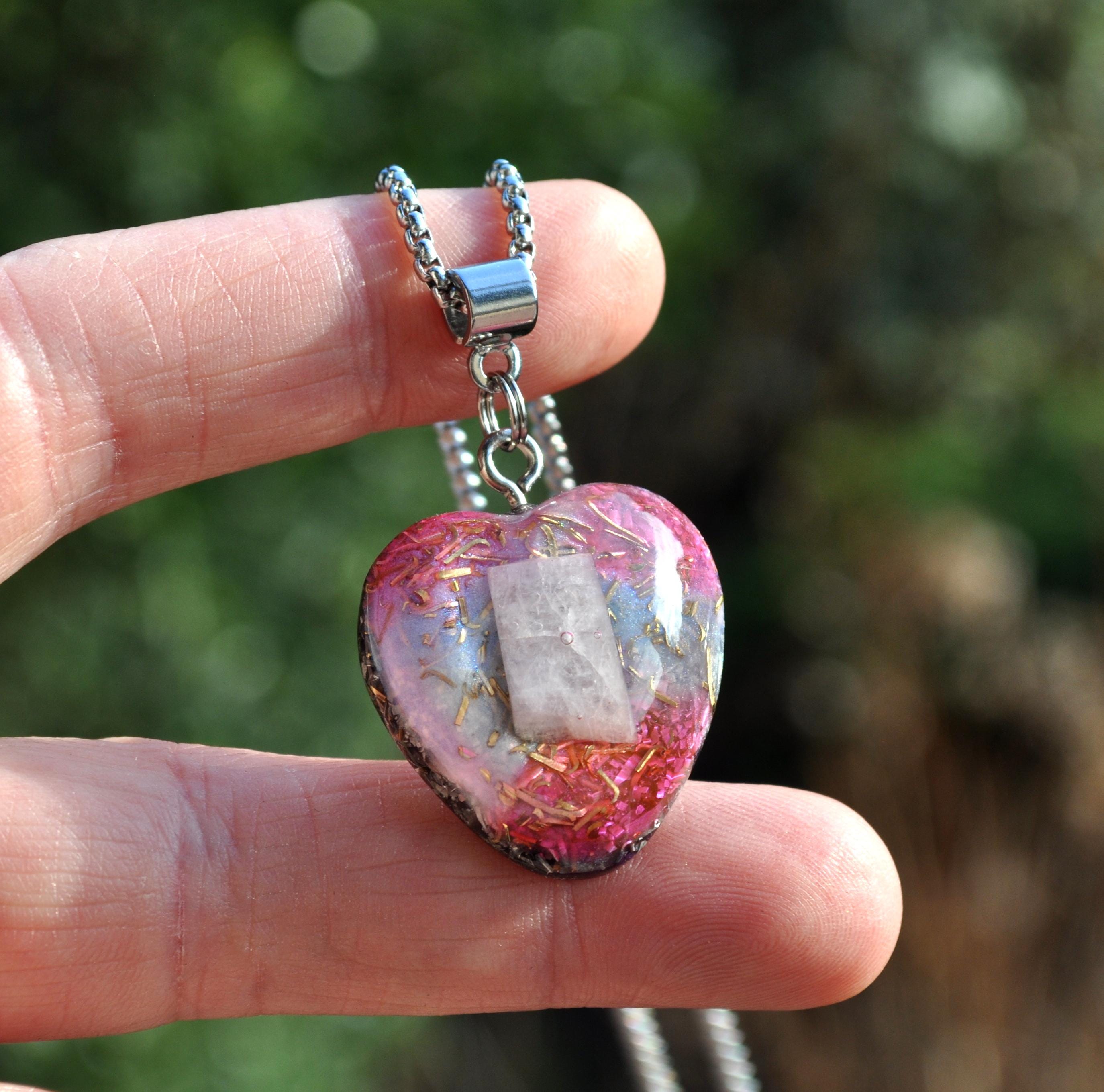 💗 Heart-Shaped Kunzite Orgonite® Pendant – Handcrafted Crystal Necklace