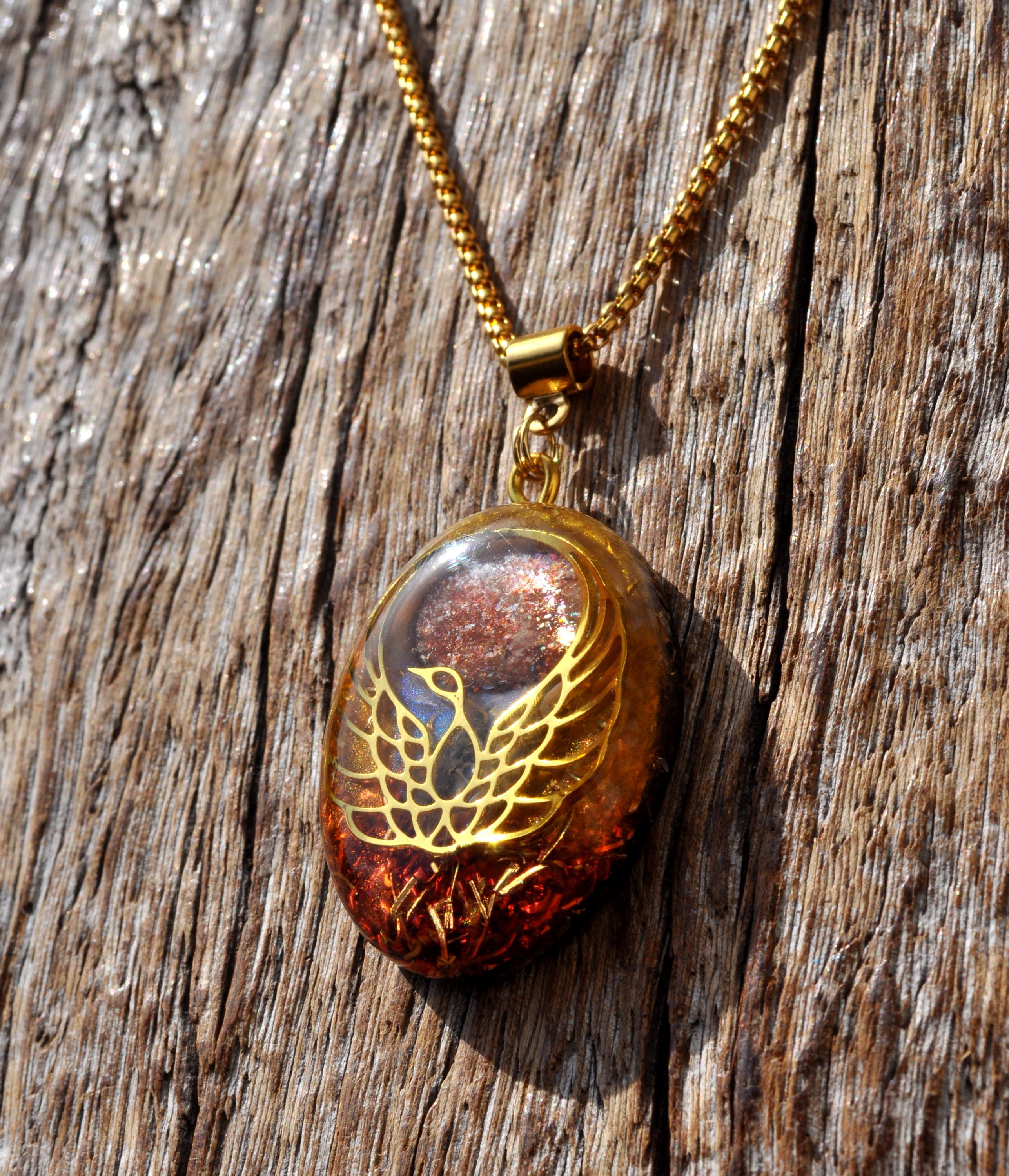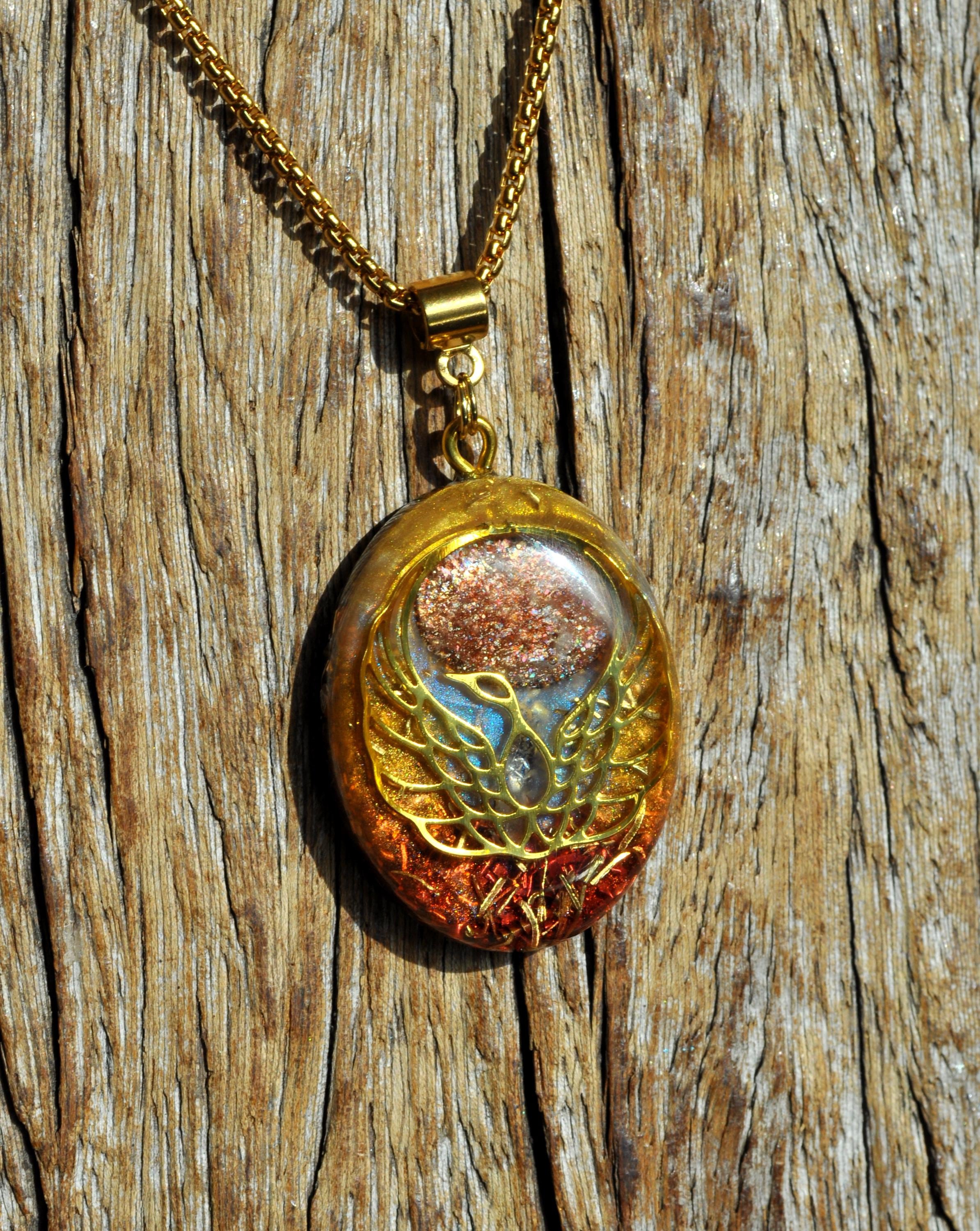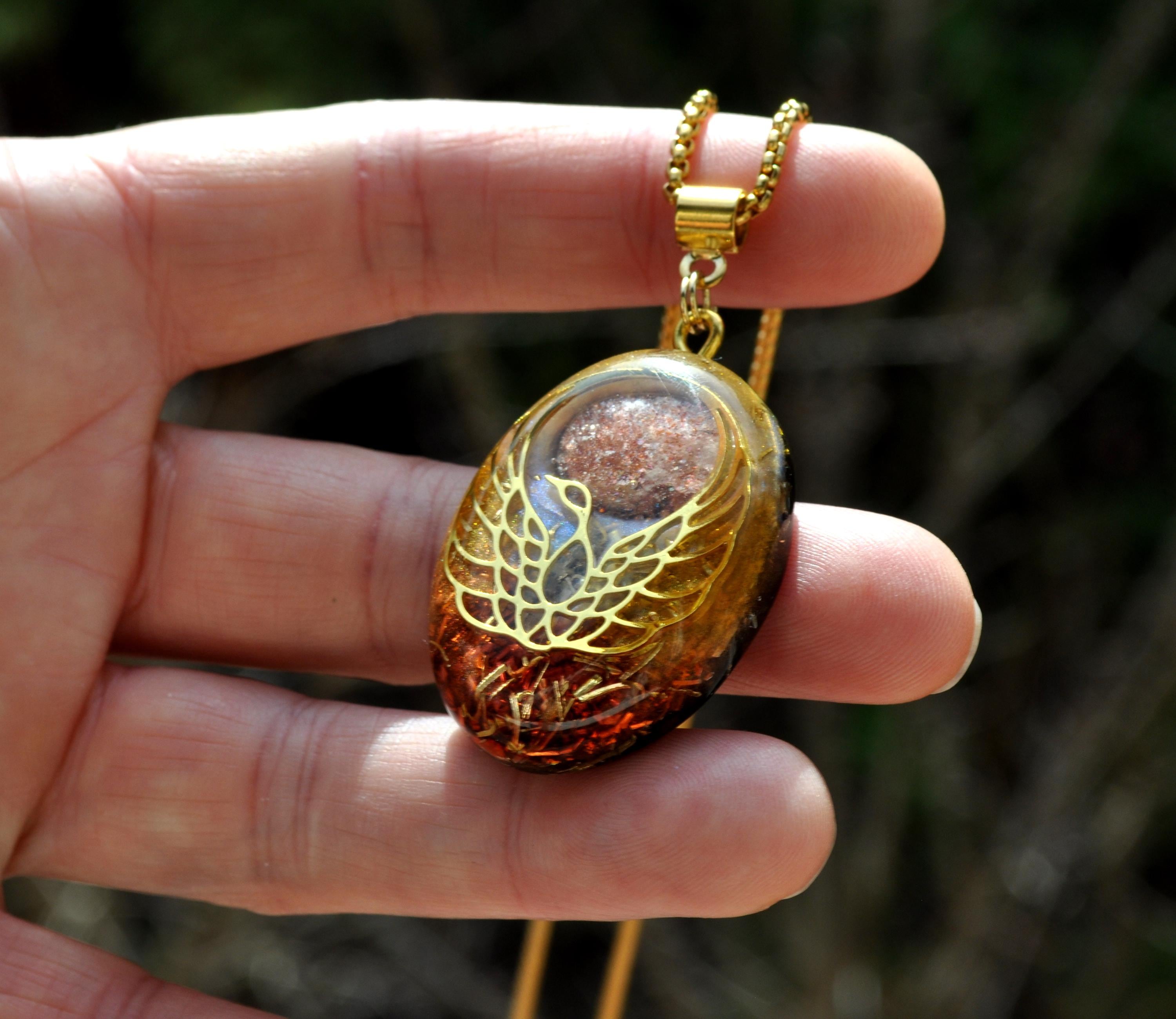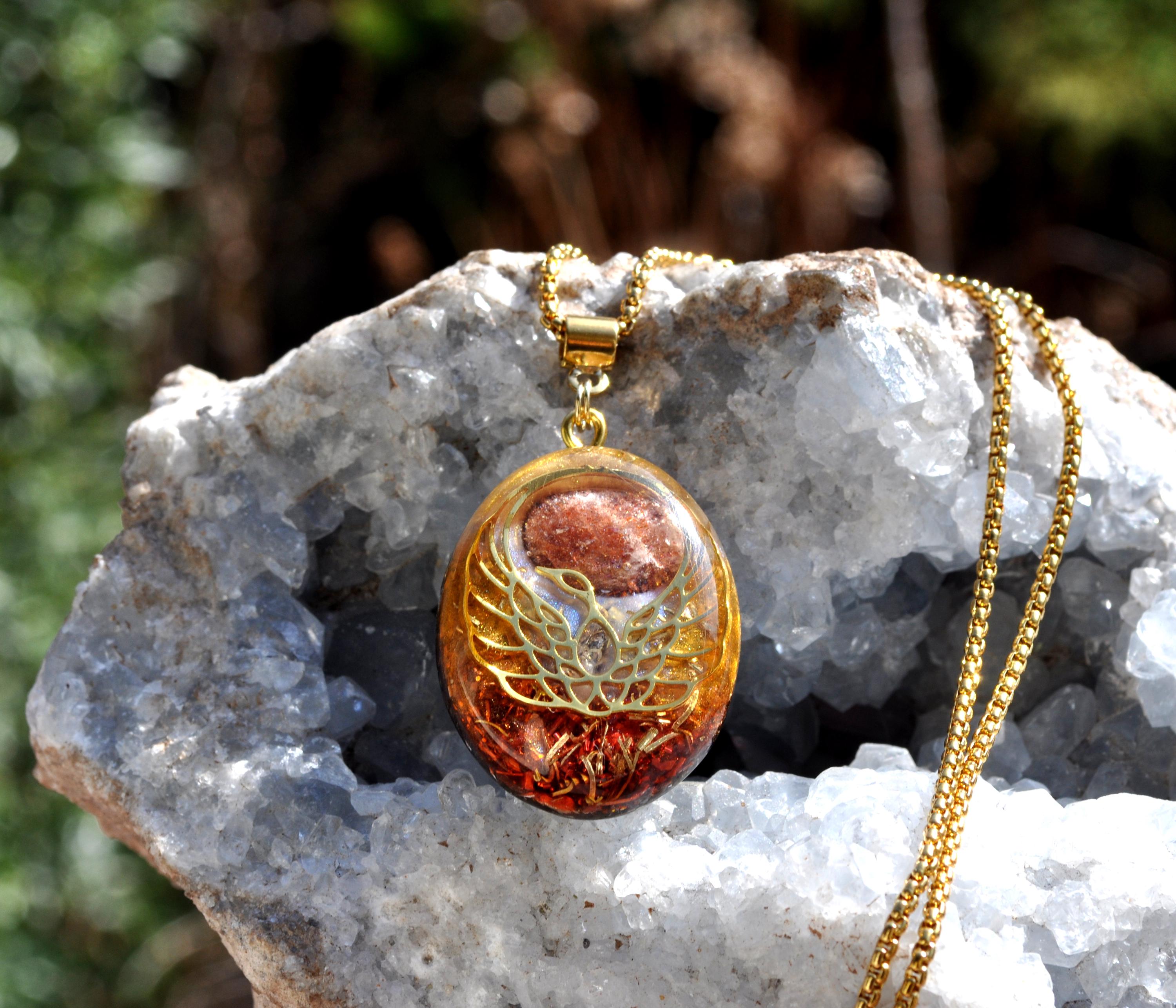 Handmade Orgonite® Phoenix Pendant Necklace with Sunstone