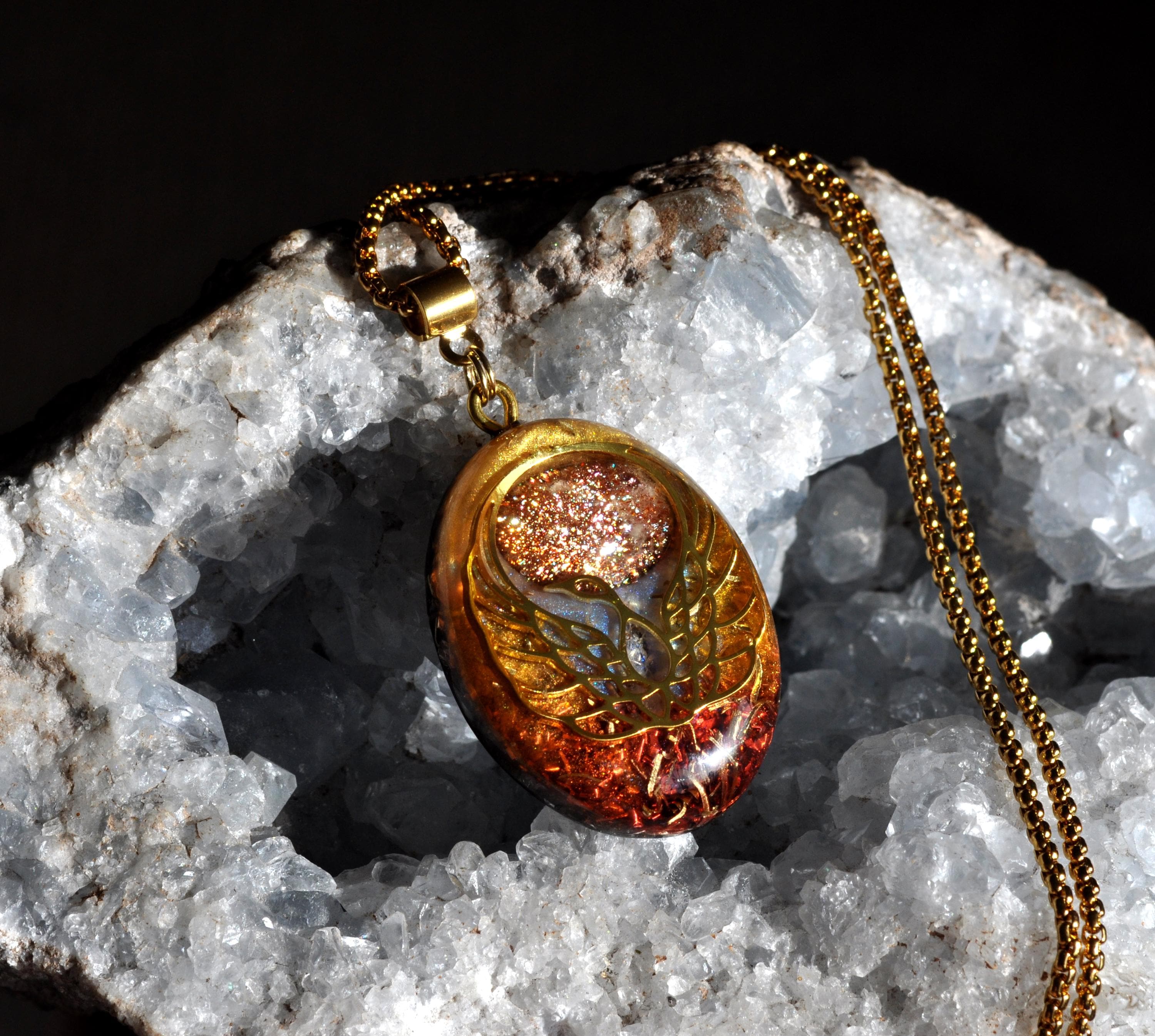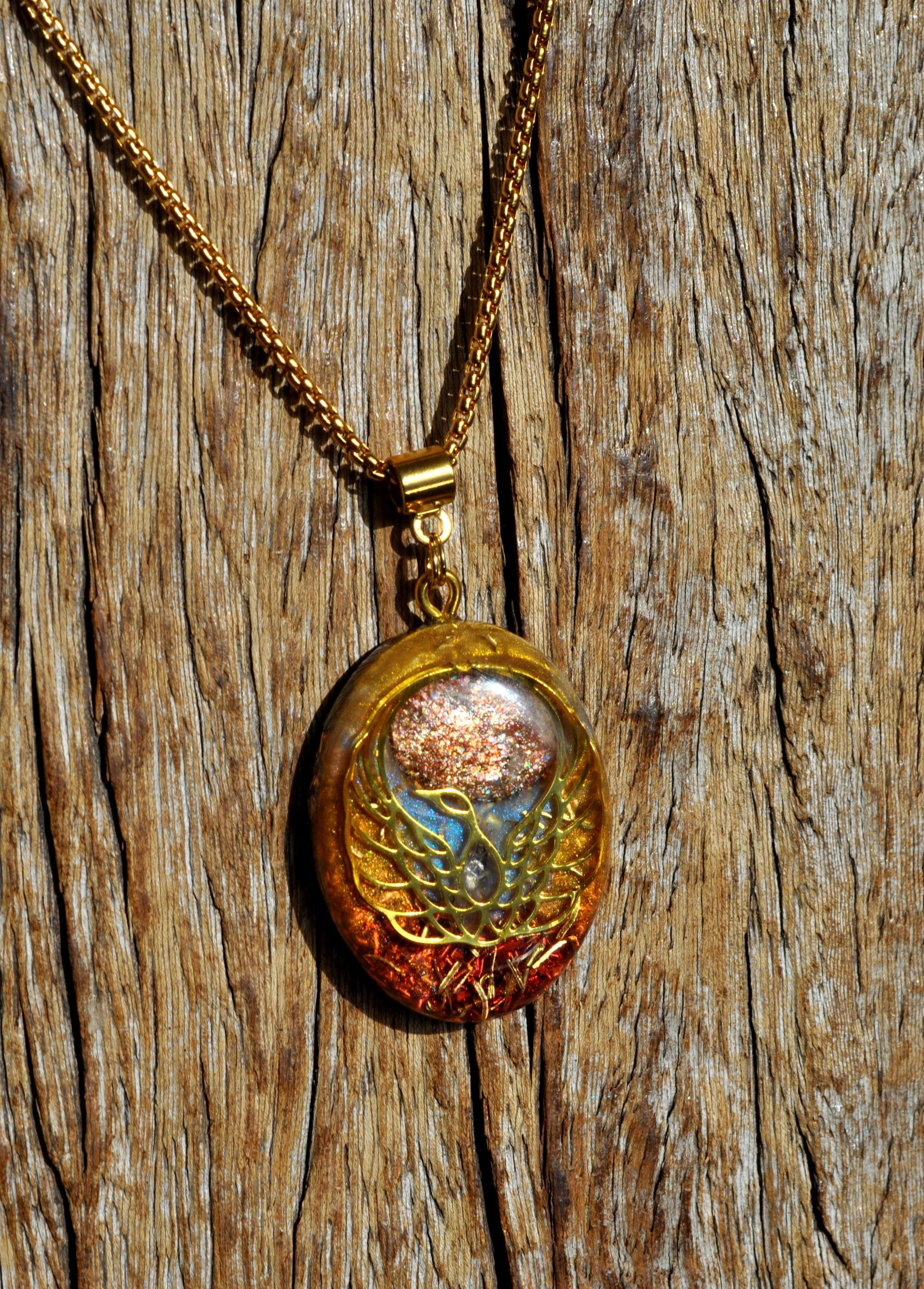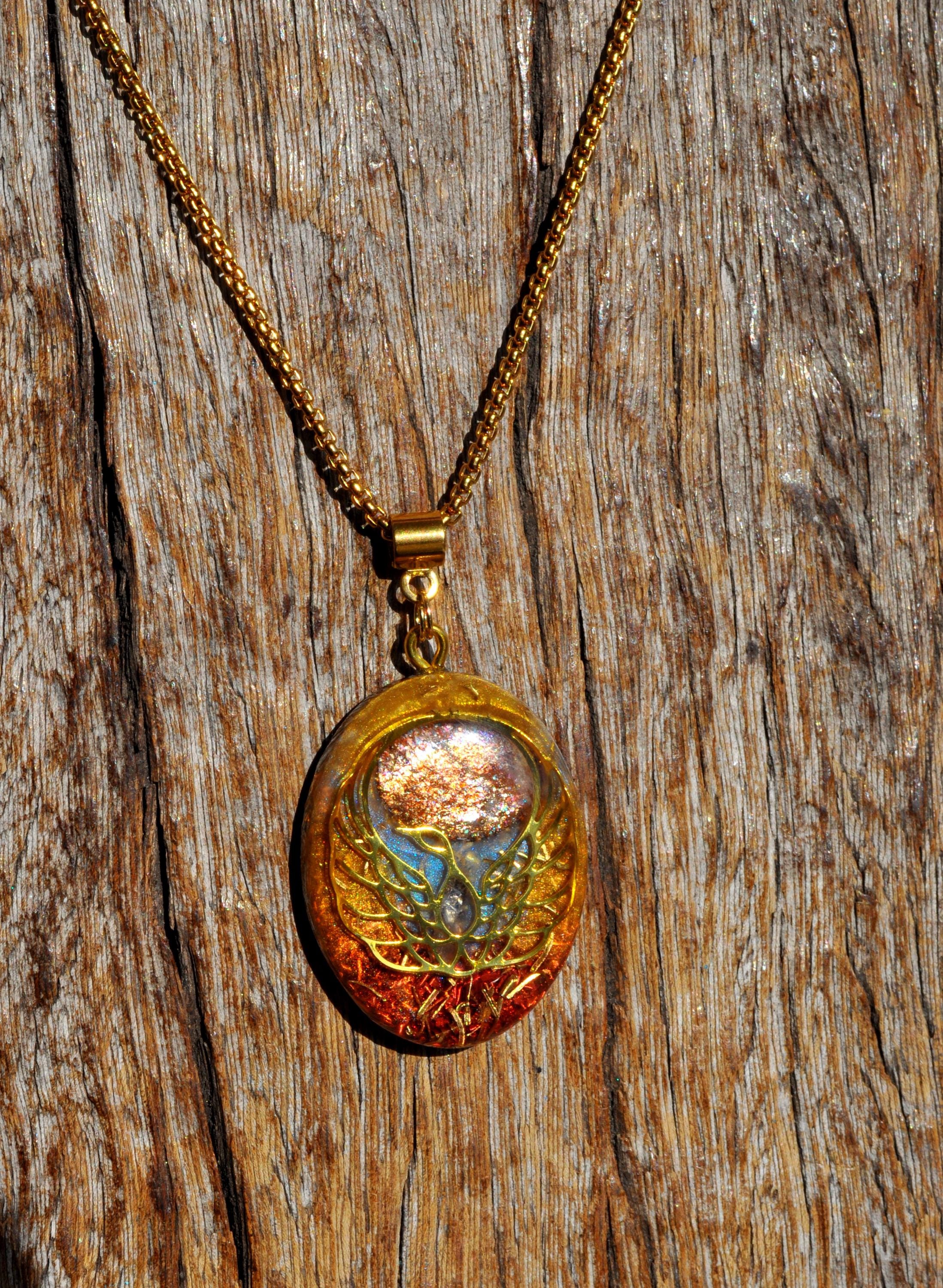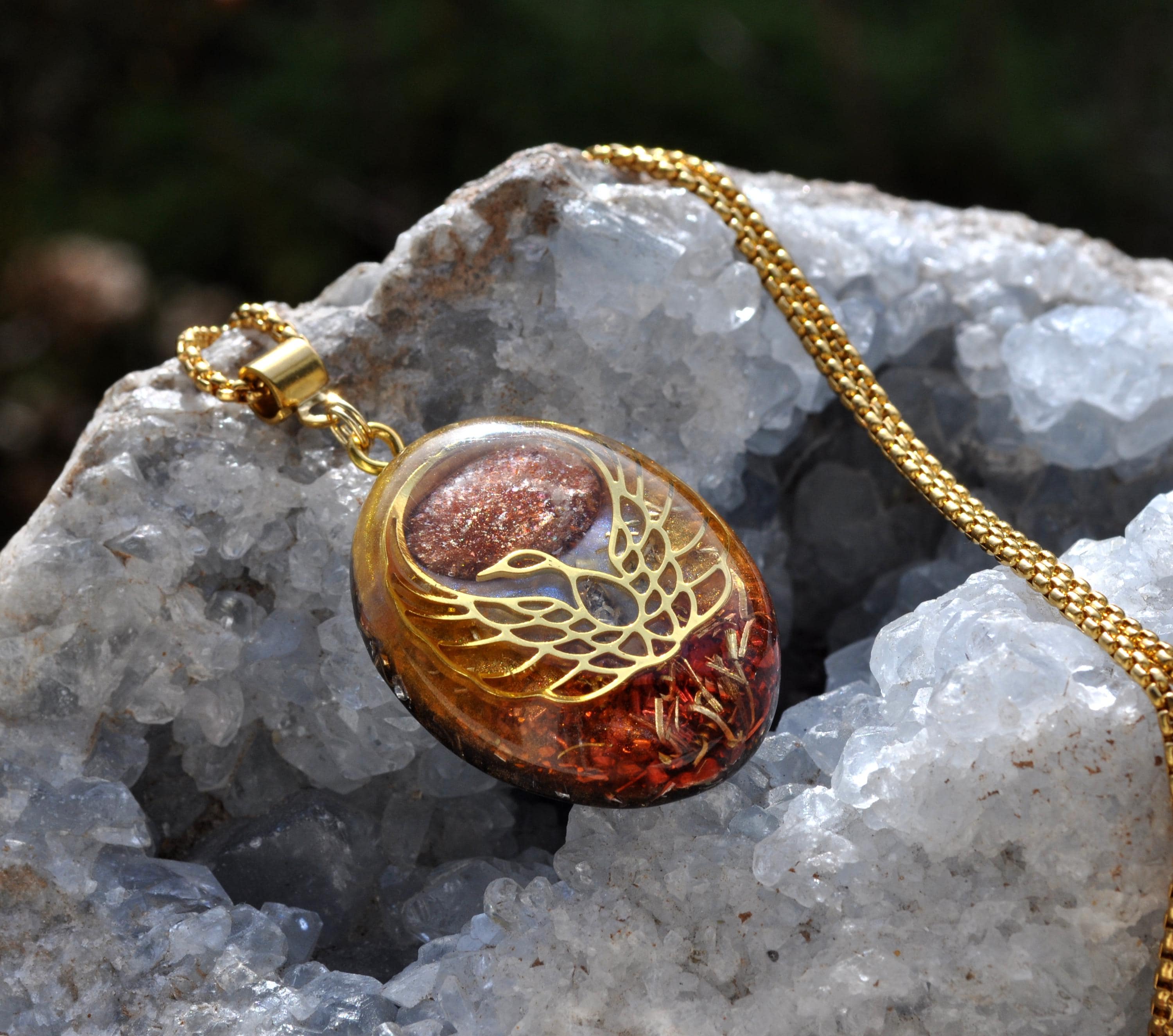 Handmade Orgonite® Phoenix Pendant Necklace with Sunstone
