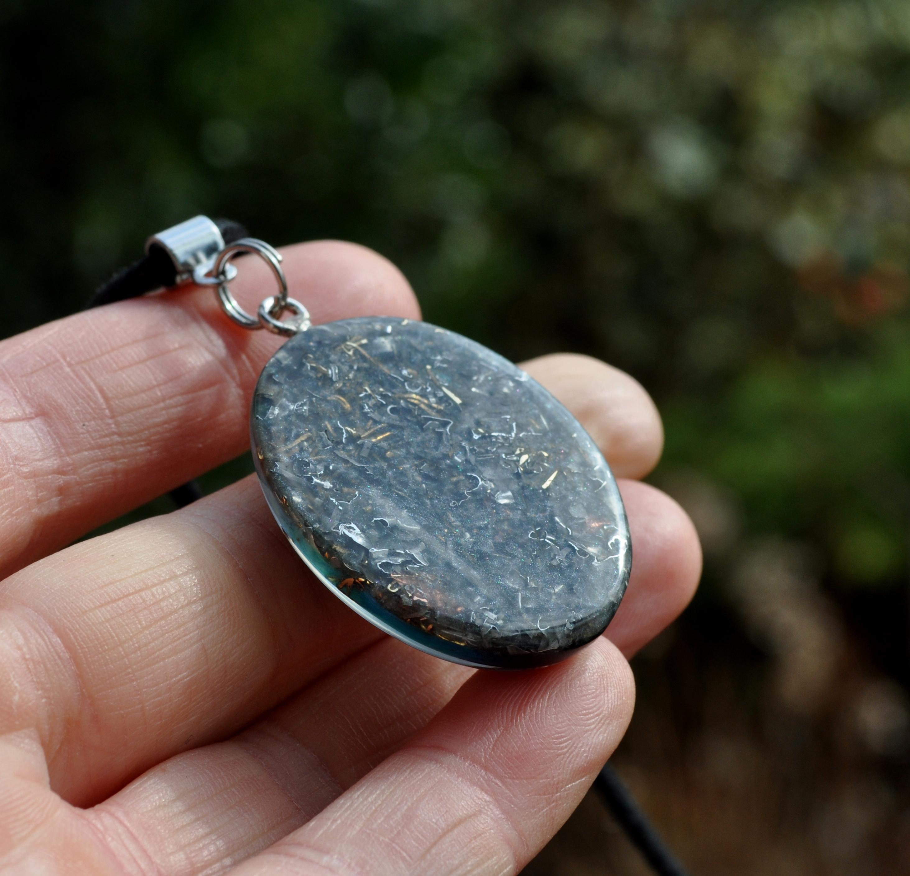 OrgoniteĀ® combines resin, crystals, and metals, inspired by the research of Dr. Wilhelm Reich and refined by Karl Hans Welz, creator of modern OrgoniteĀ® and the Orgone GeneratorĀ®. Many use it to symbolically transform stagnant energy, harmonize spaces, support meditation, and reduce energetic stress. A Quartz crystal is embedded under resin pressure, believed by some to amplify energy through its piezoelectric properties. These effects are spiritual and metaphysical, not scientifically proven, and the pendant is offered as a decorative and spiritual item.