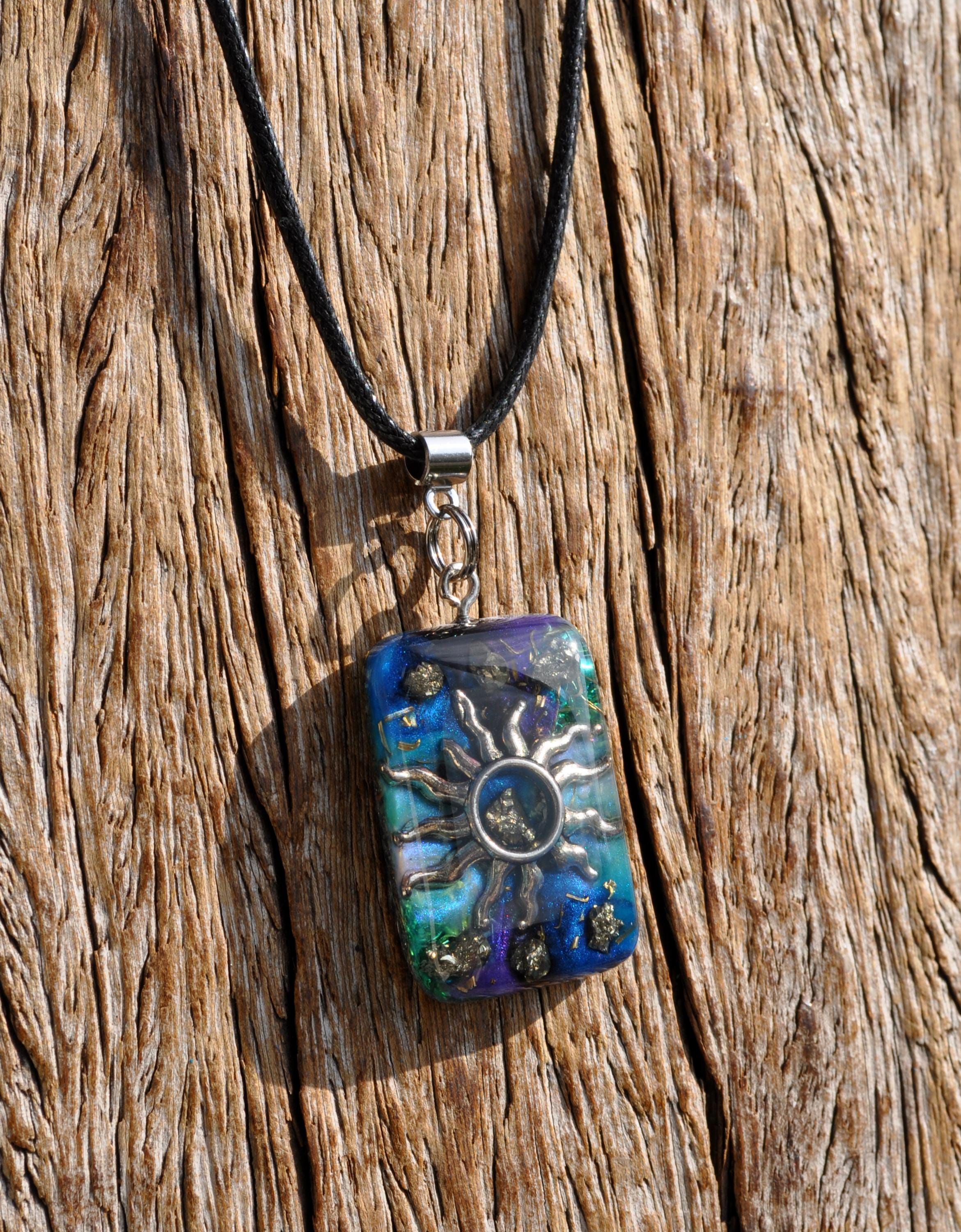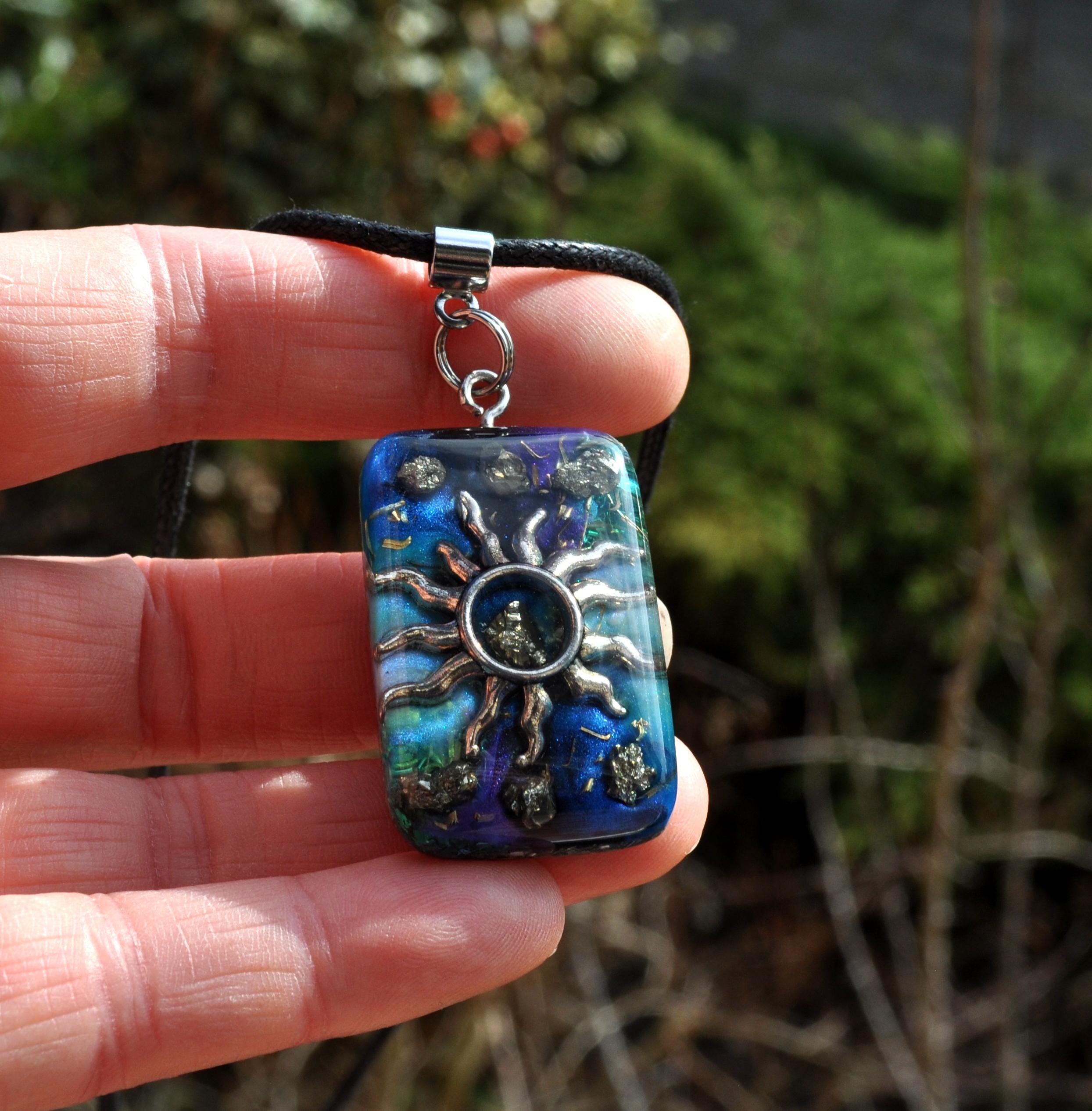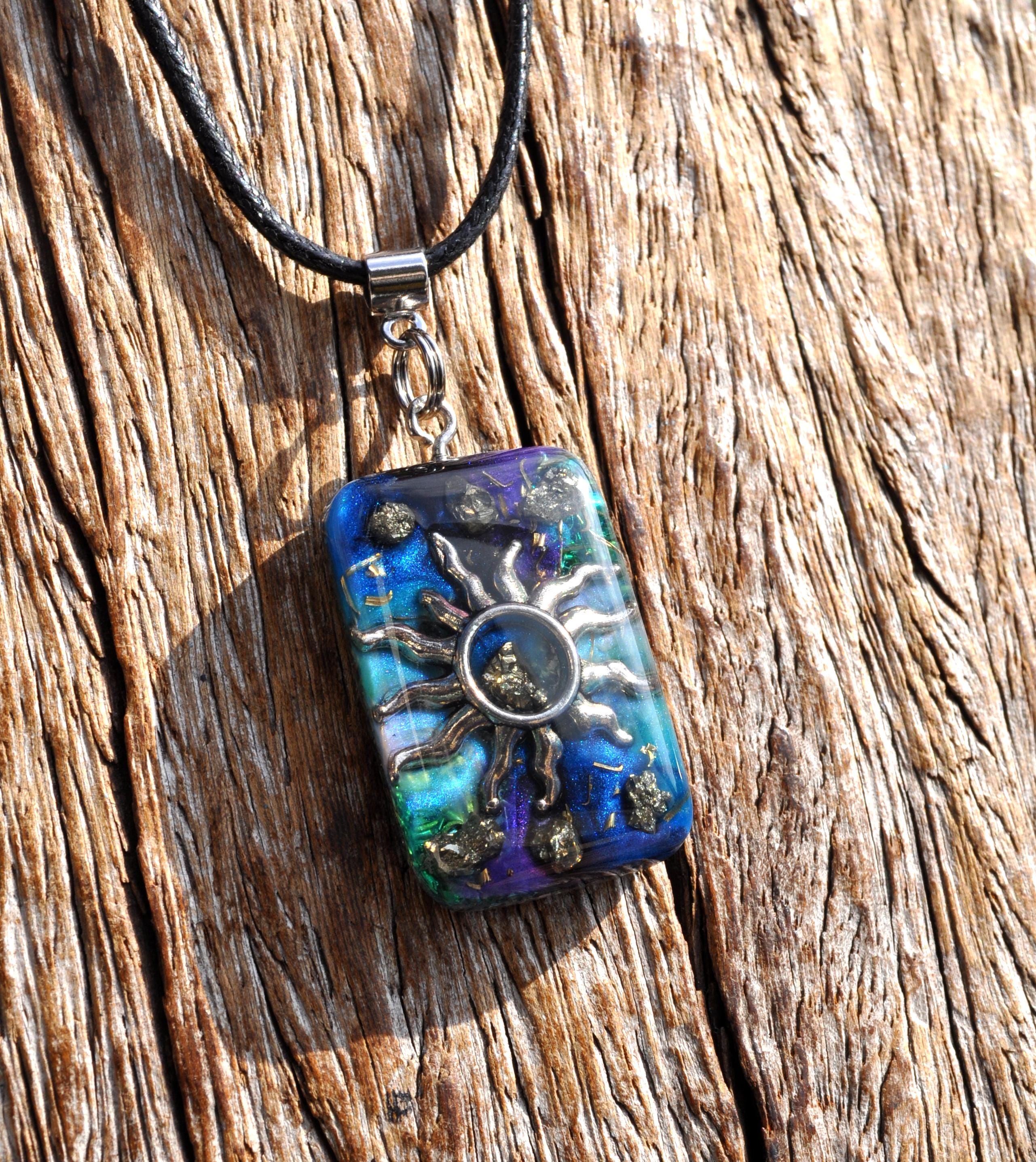 Handmade Orgonite® Sun Pendant with Raw Pyrite | Energy Necklace, Resin Jewelry