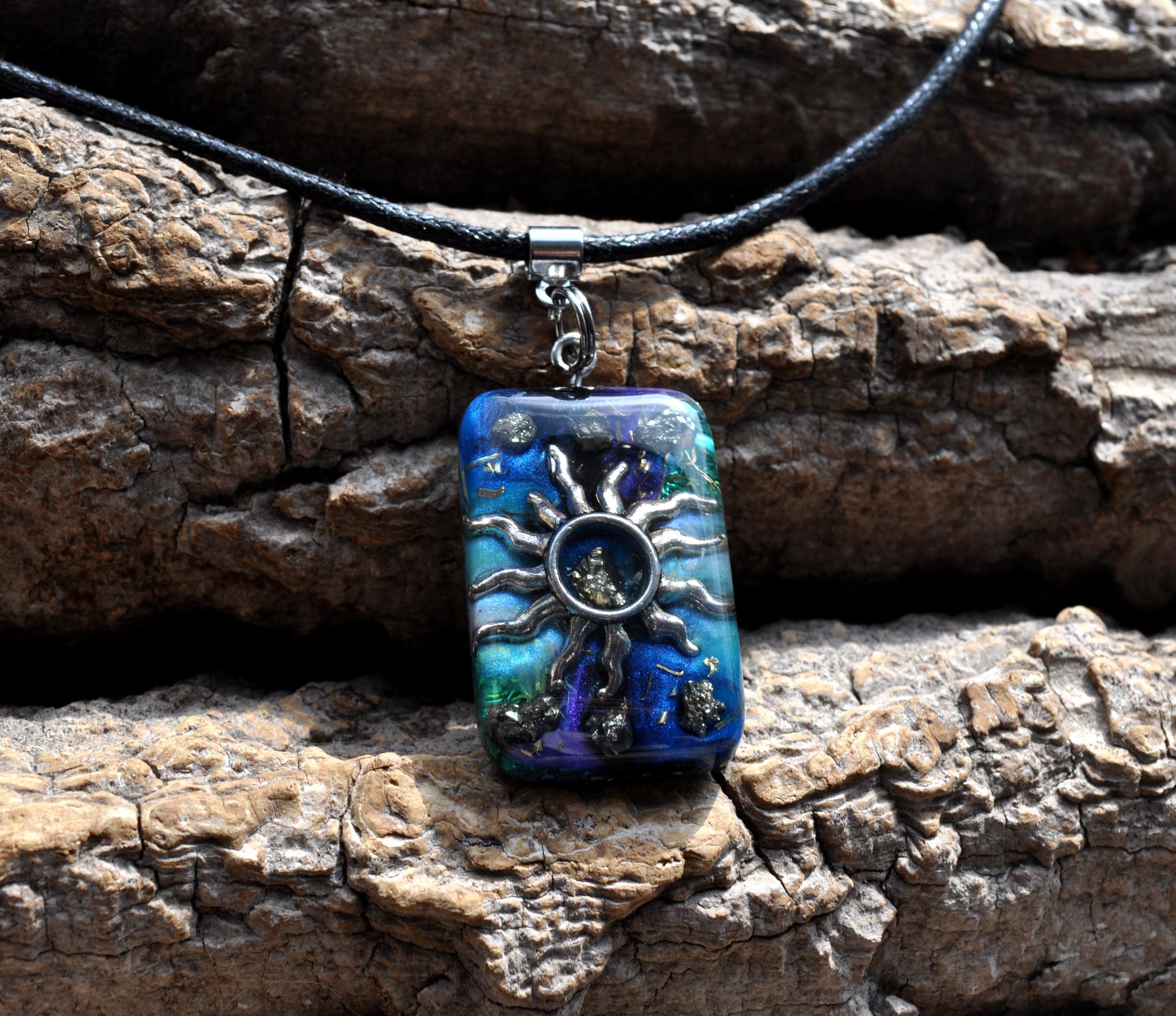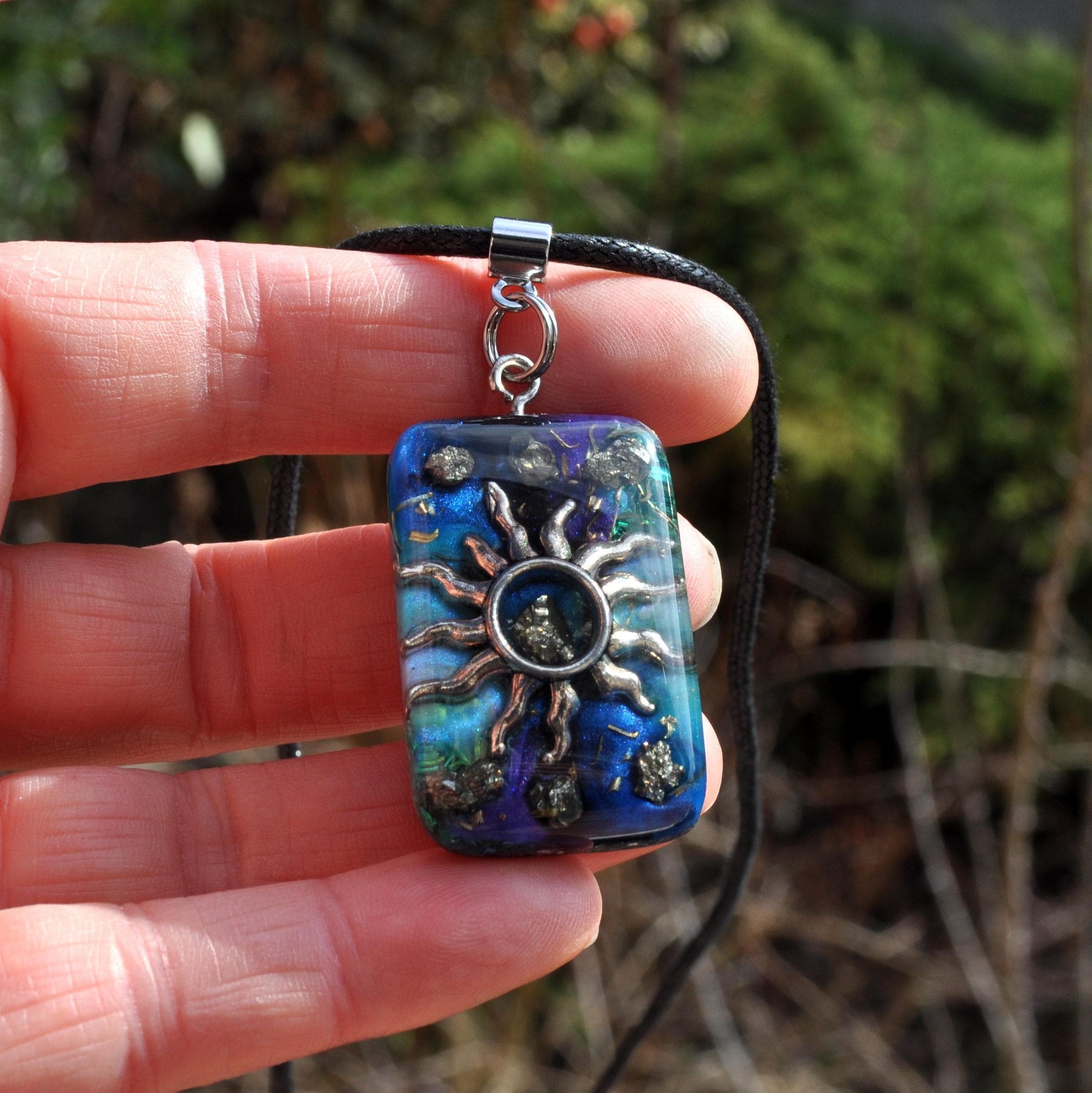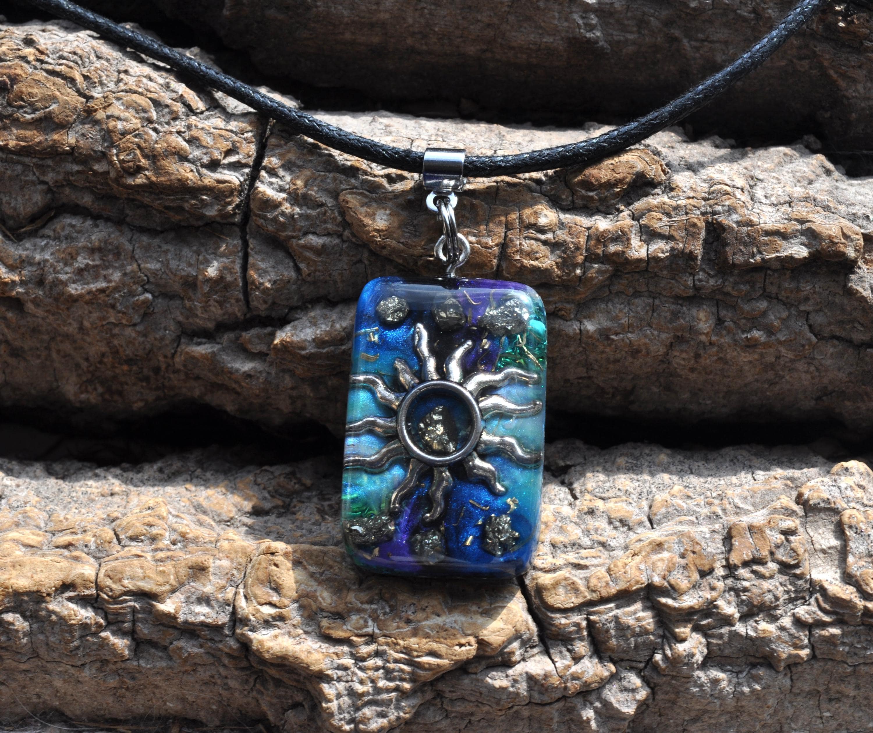 Handmade Orgonite® Sun Pendant with Raw Pyrite | Energy Necklace, Resin Jewelry
