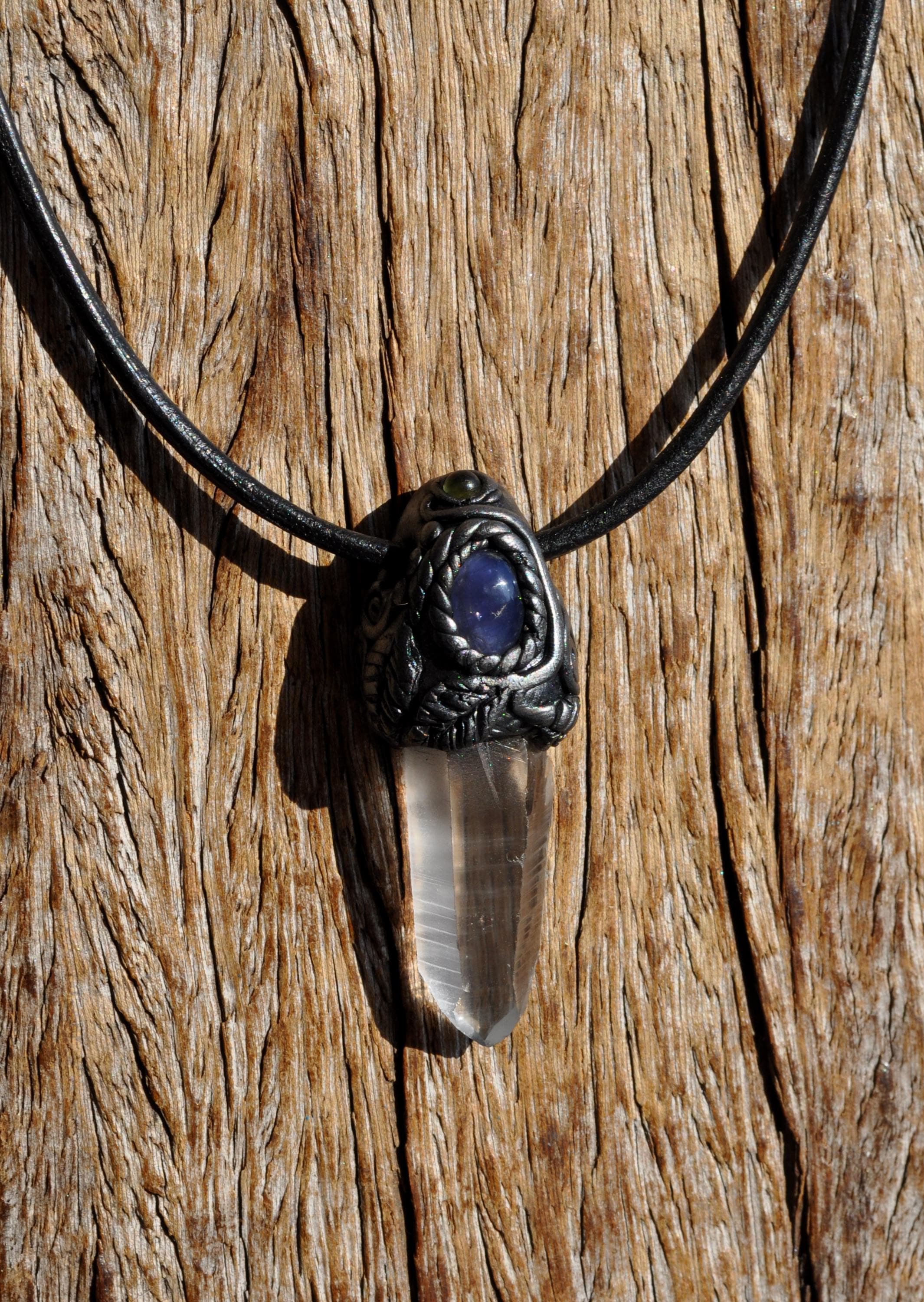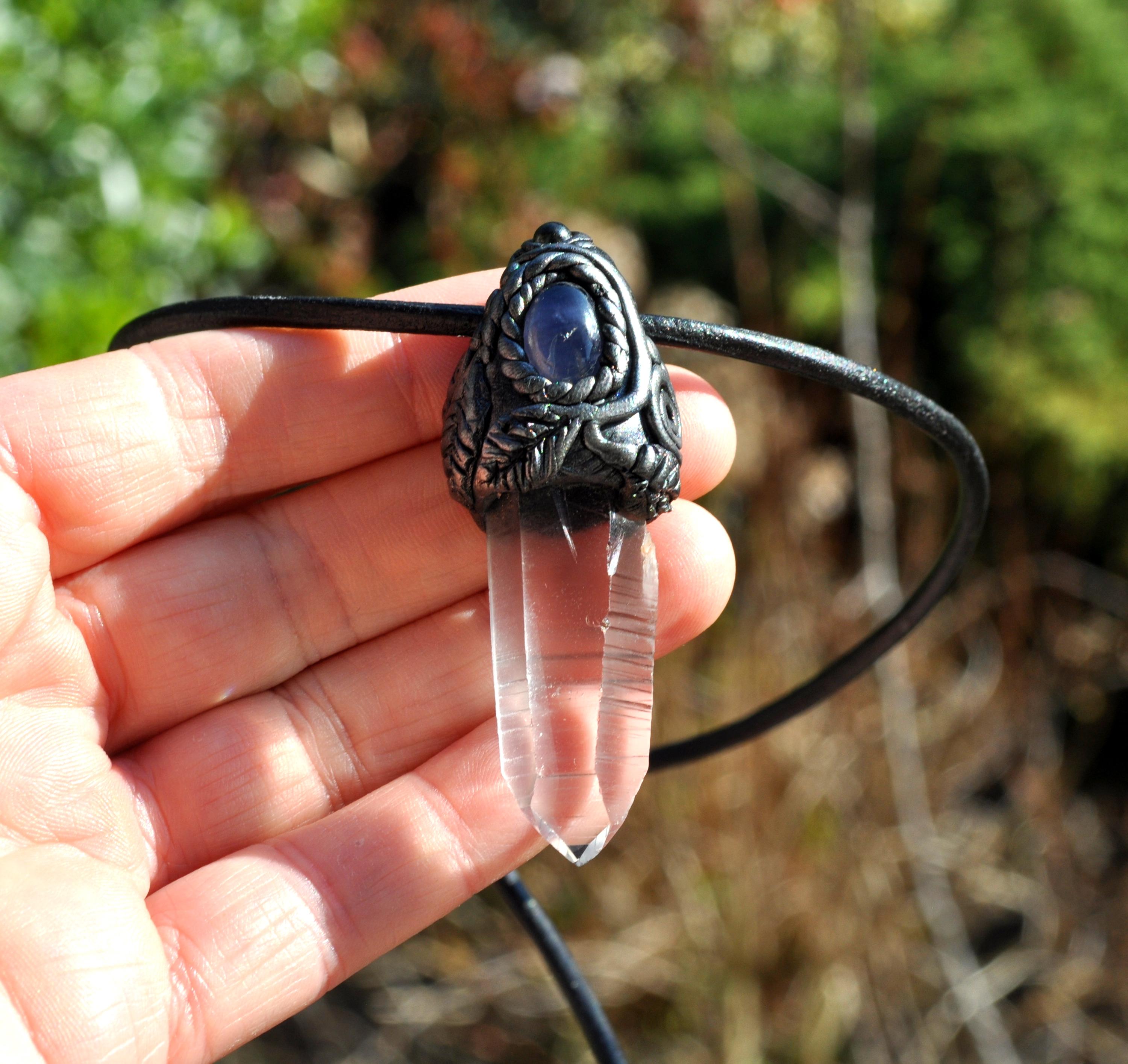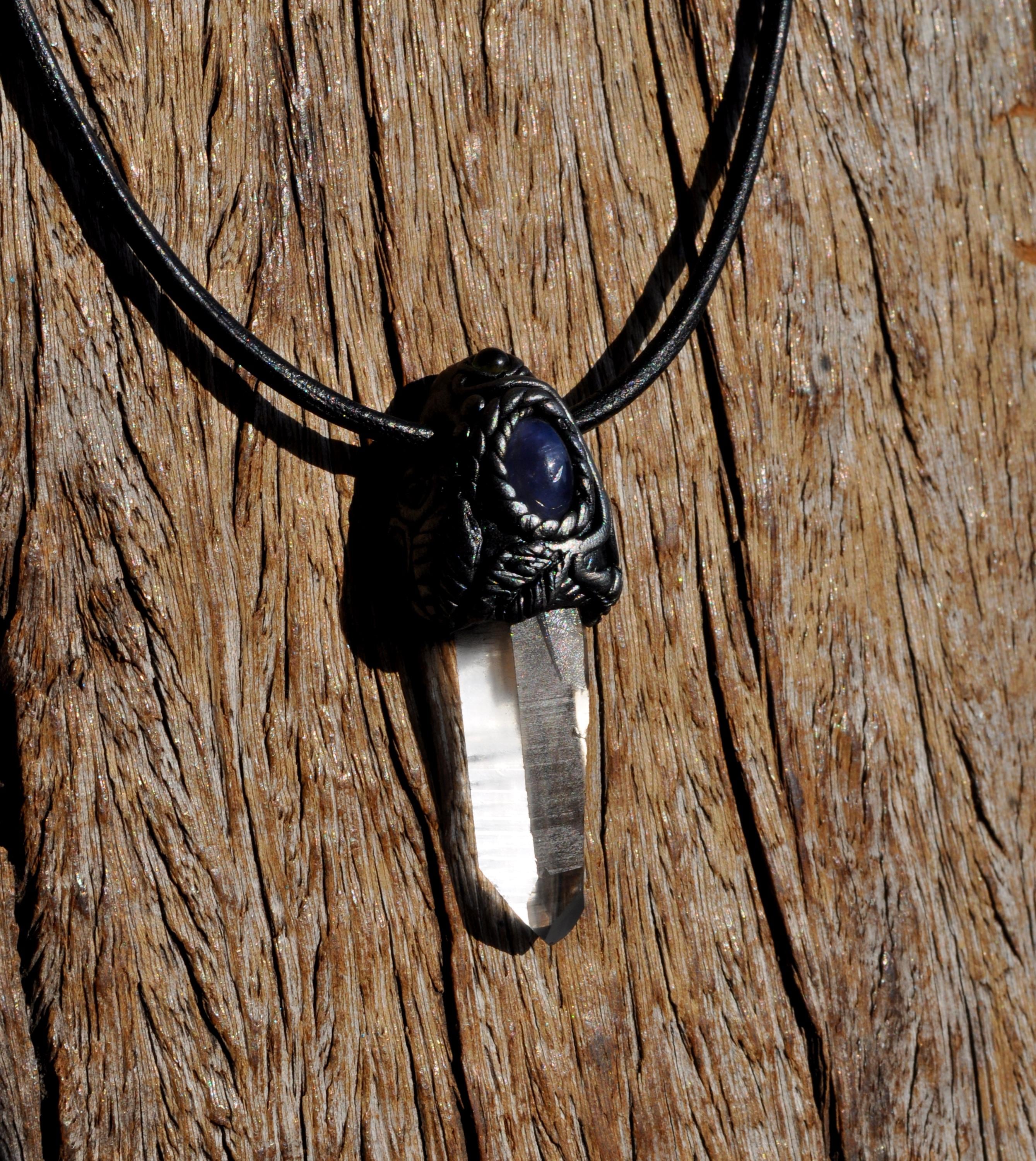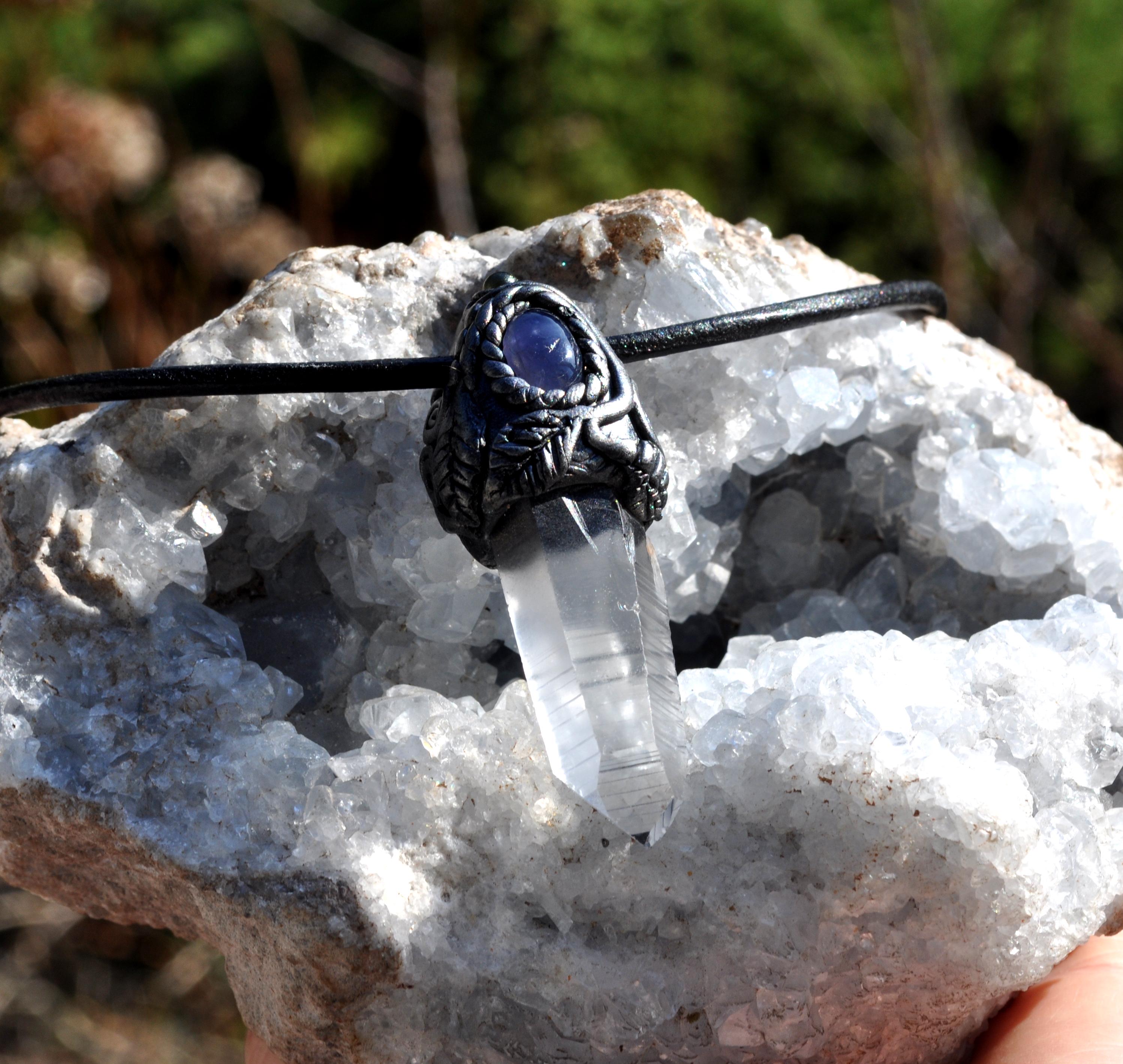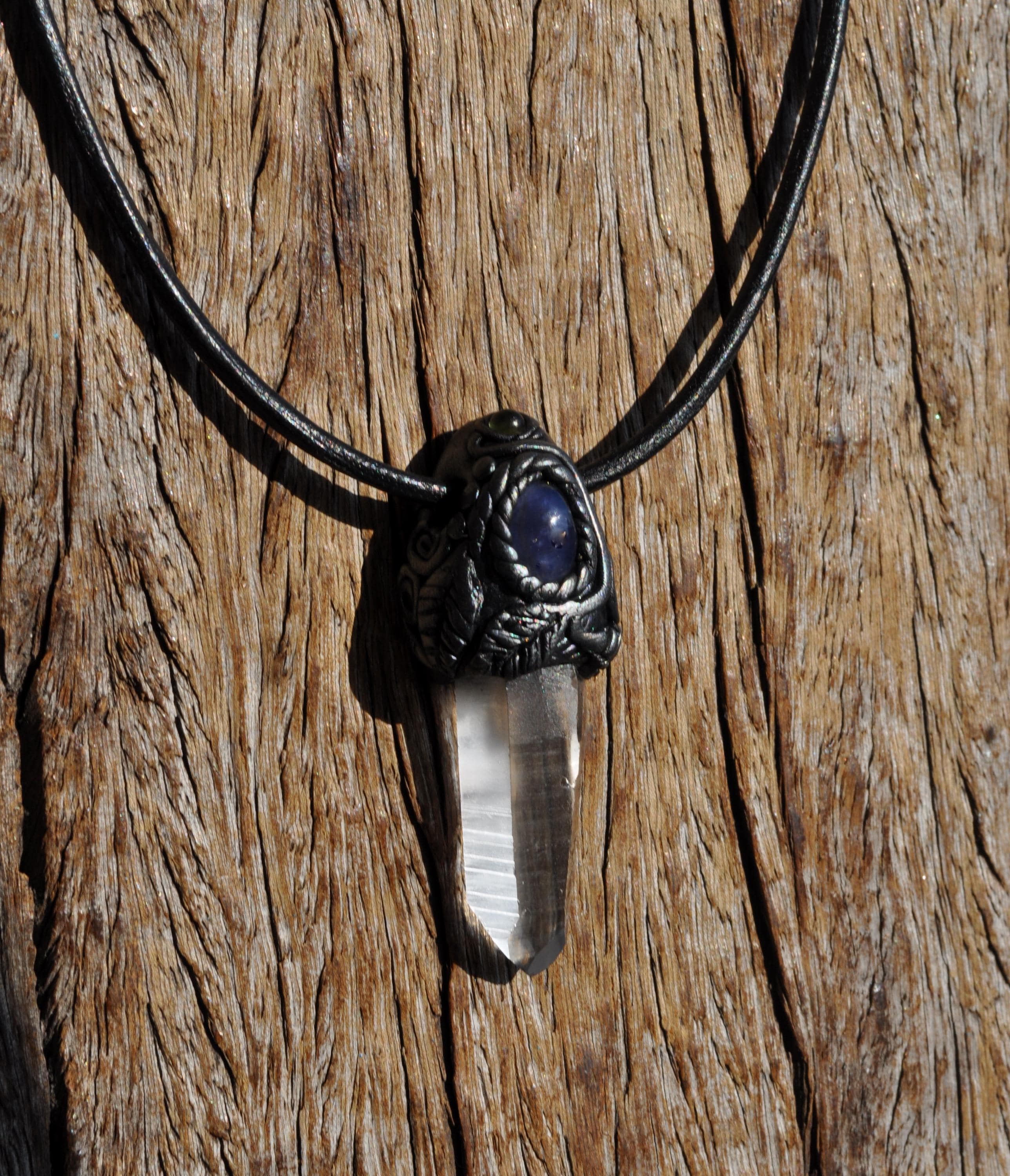 Each pendant is carefully cleansed with White Sage or Yerba Santa before shipping. The stones are securely set in a durable clay design and hang on a strong leather cord with a lobster clasp. You may state your preferred cord length when ordering.