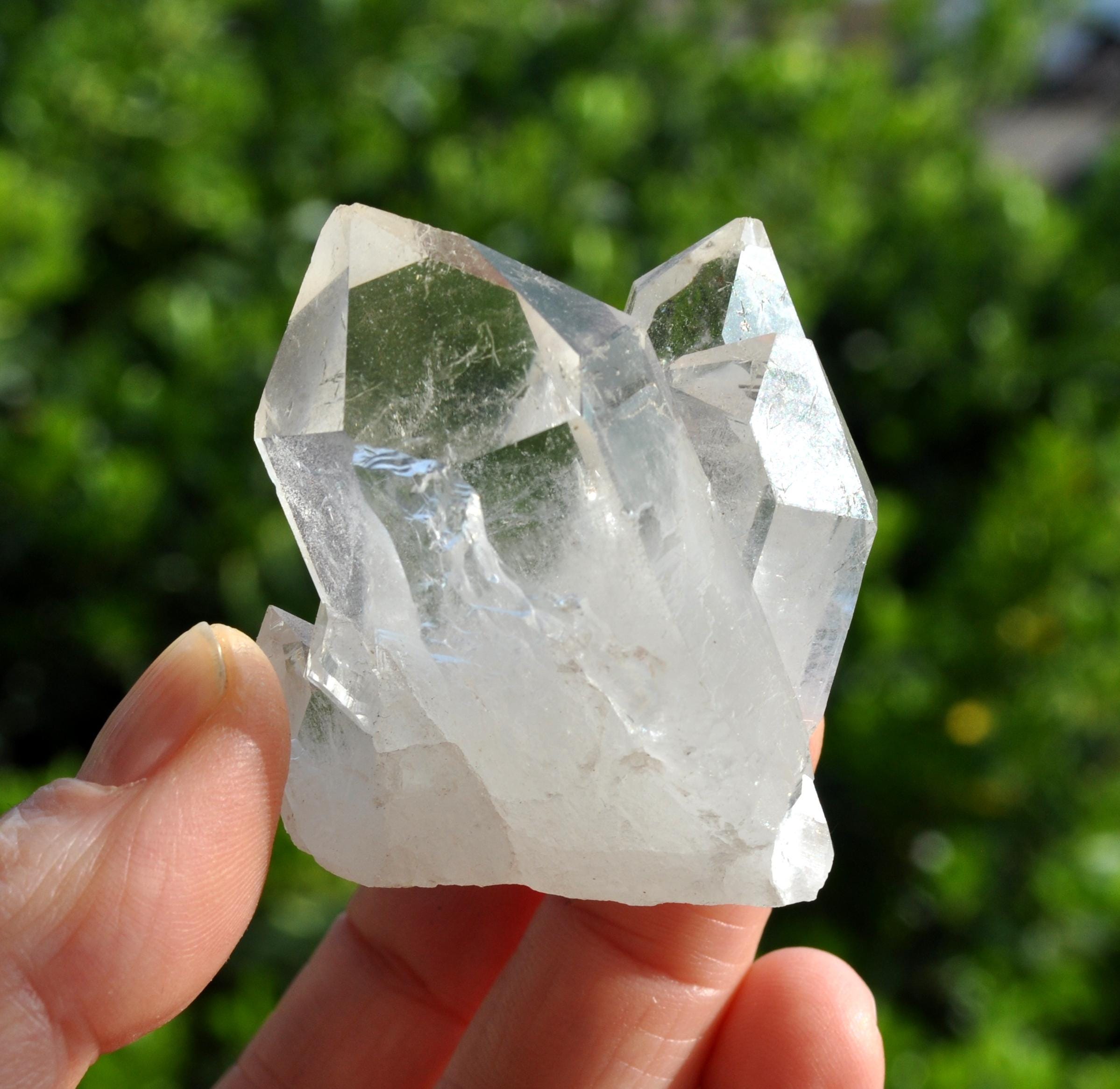 The piece features a couple of natural crystal points with bright clarity and sparkle, formed naturally in the earth. Its compact size makes it perfect for crystal collections, display shelves, desks, altars, meditation spaces, or crystal grids.
