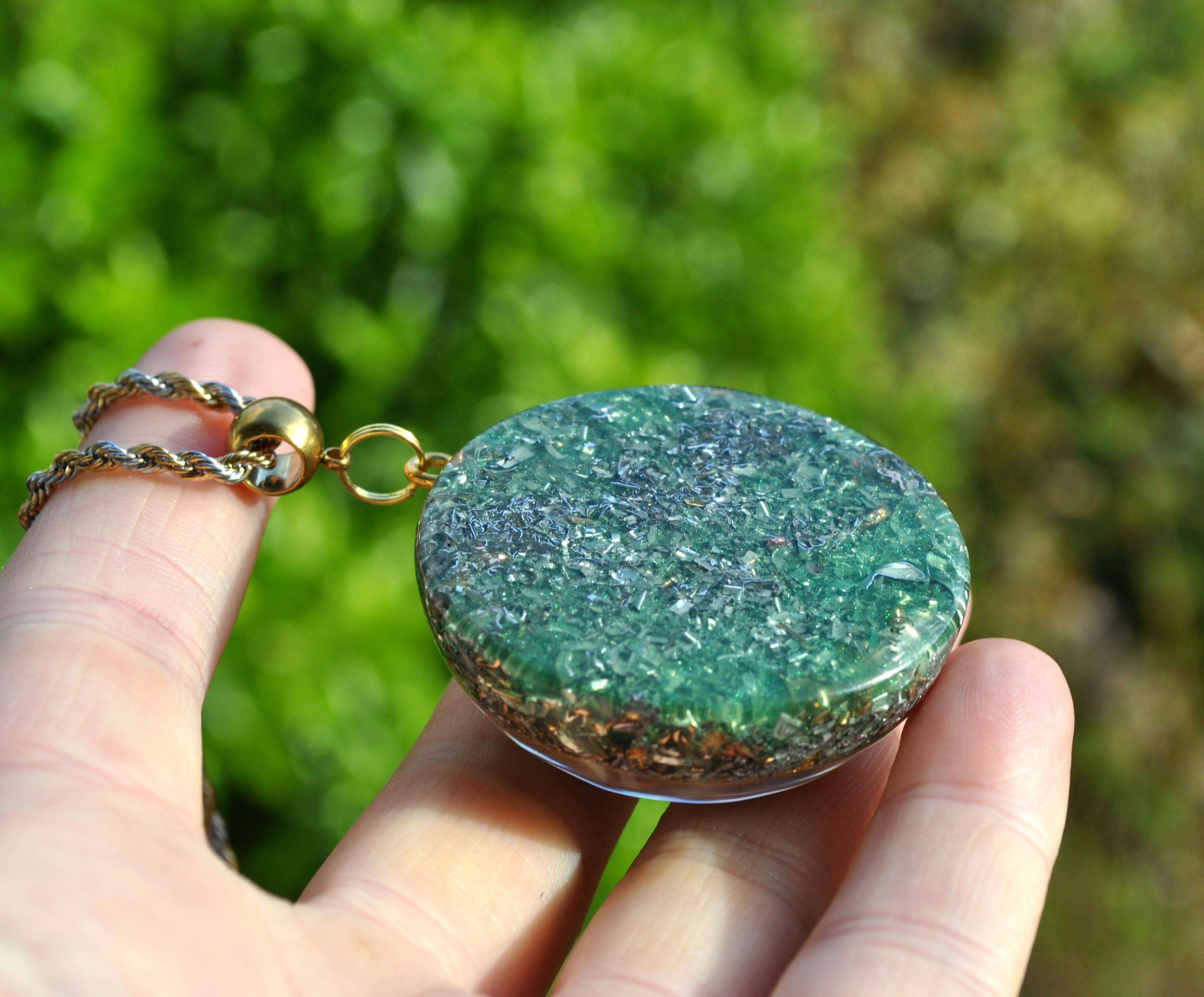 For a good orgonite you need a lot of metal shavings for it to work properly. The aluminum that is present in my orgonites is made of residual material and is therefore being recycled. It is a good conductor and cheaper and lighter than copper. In addition, aluminum offers effective protection against electromagnetic radiation, because the stronger a material conducts, the better the shielding ability is.