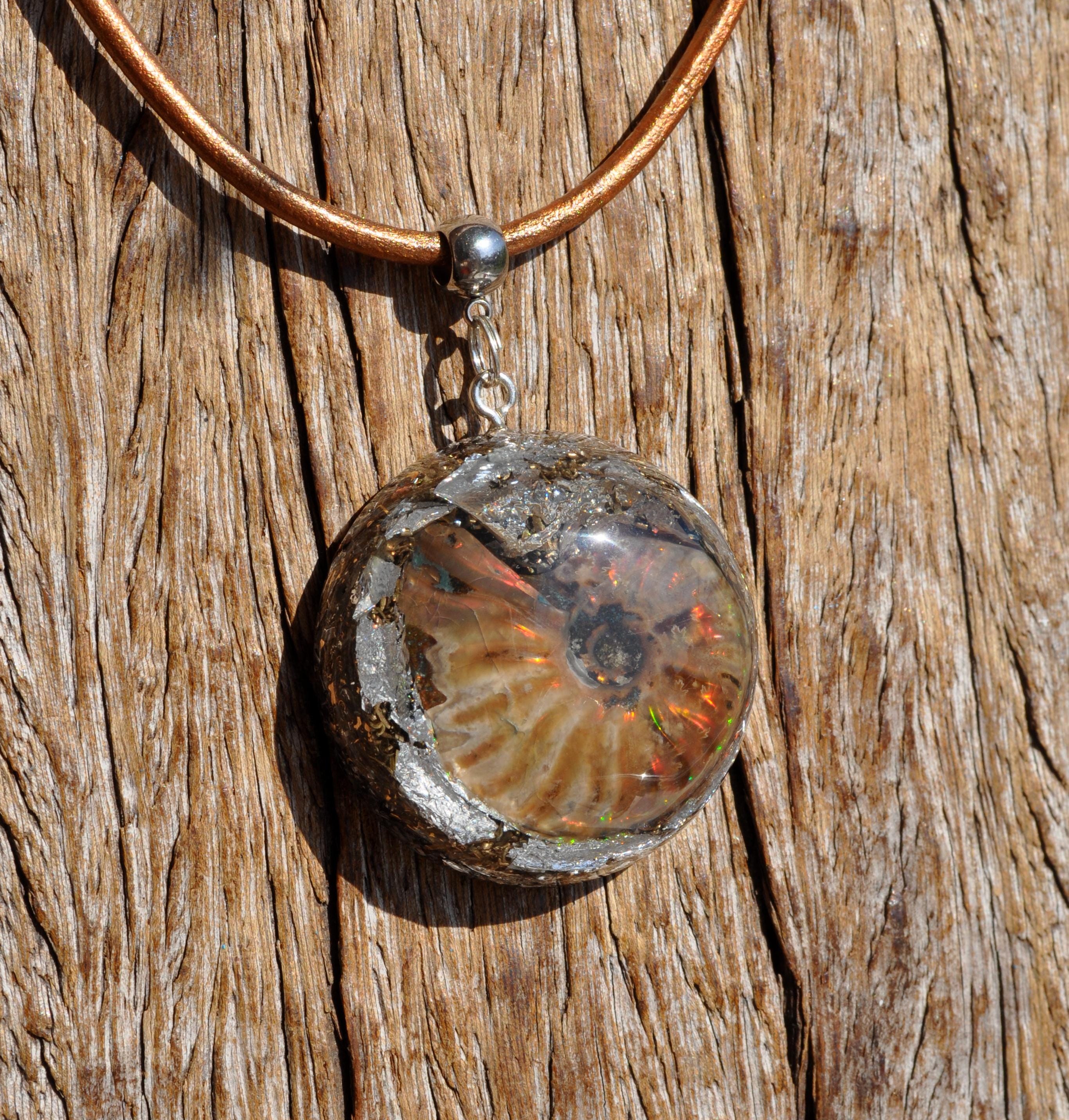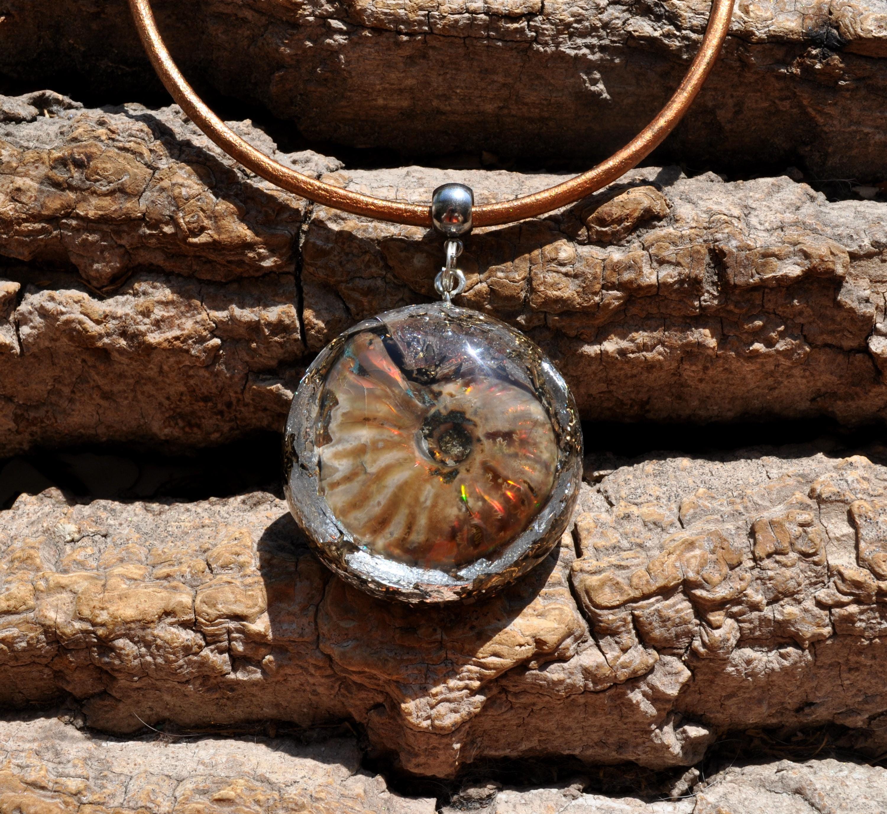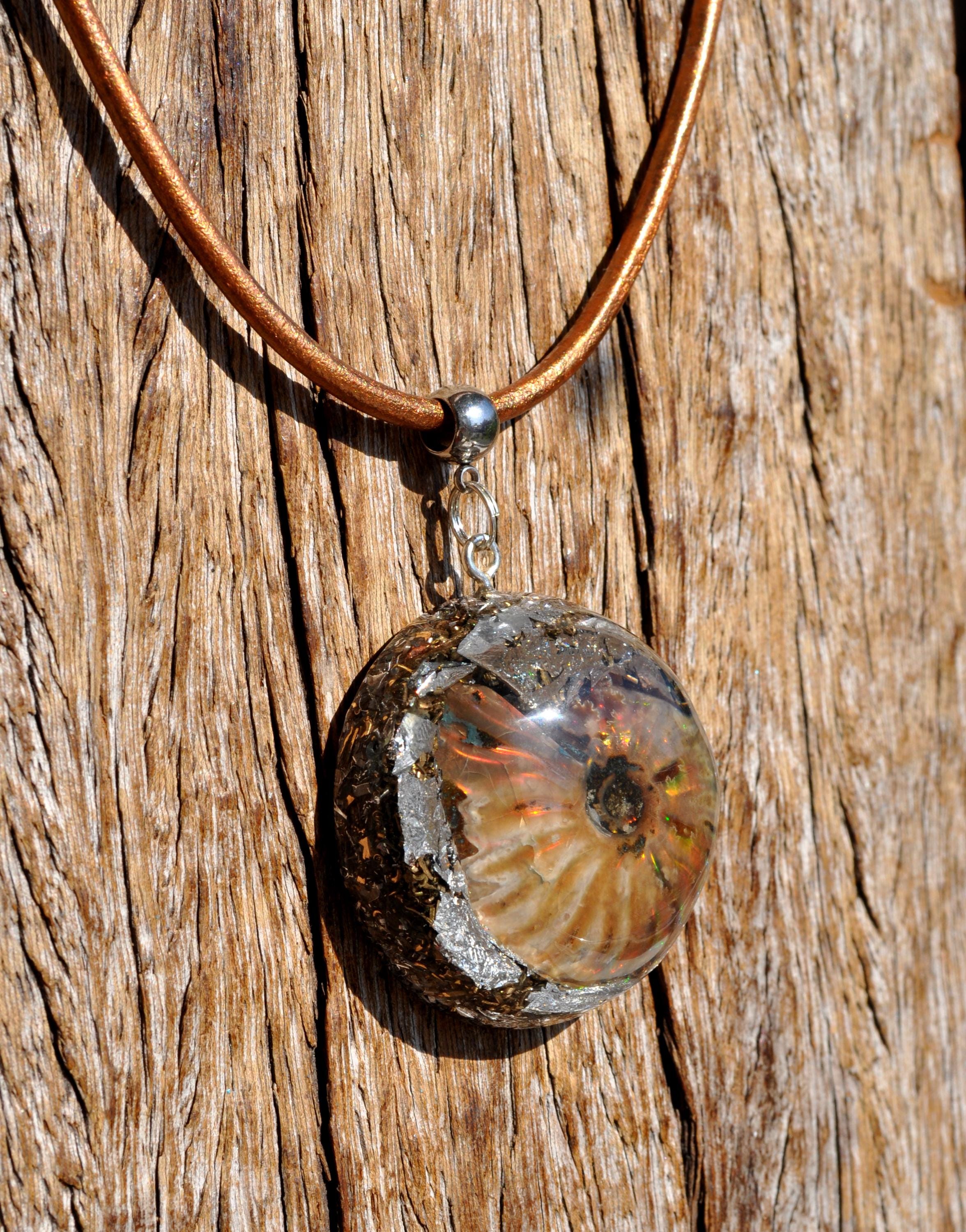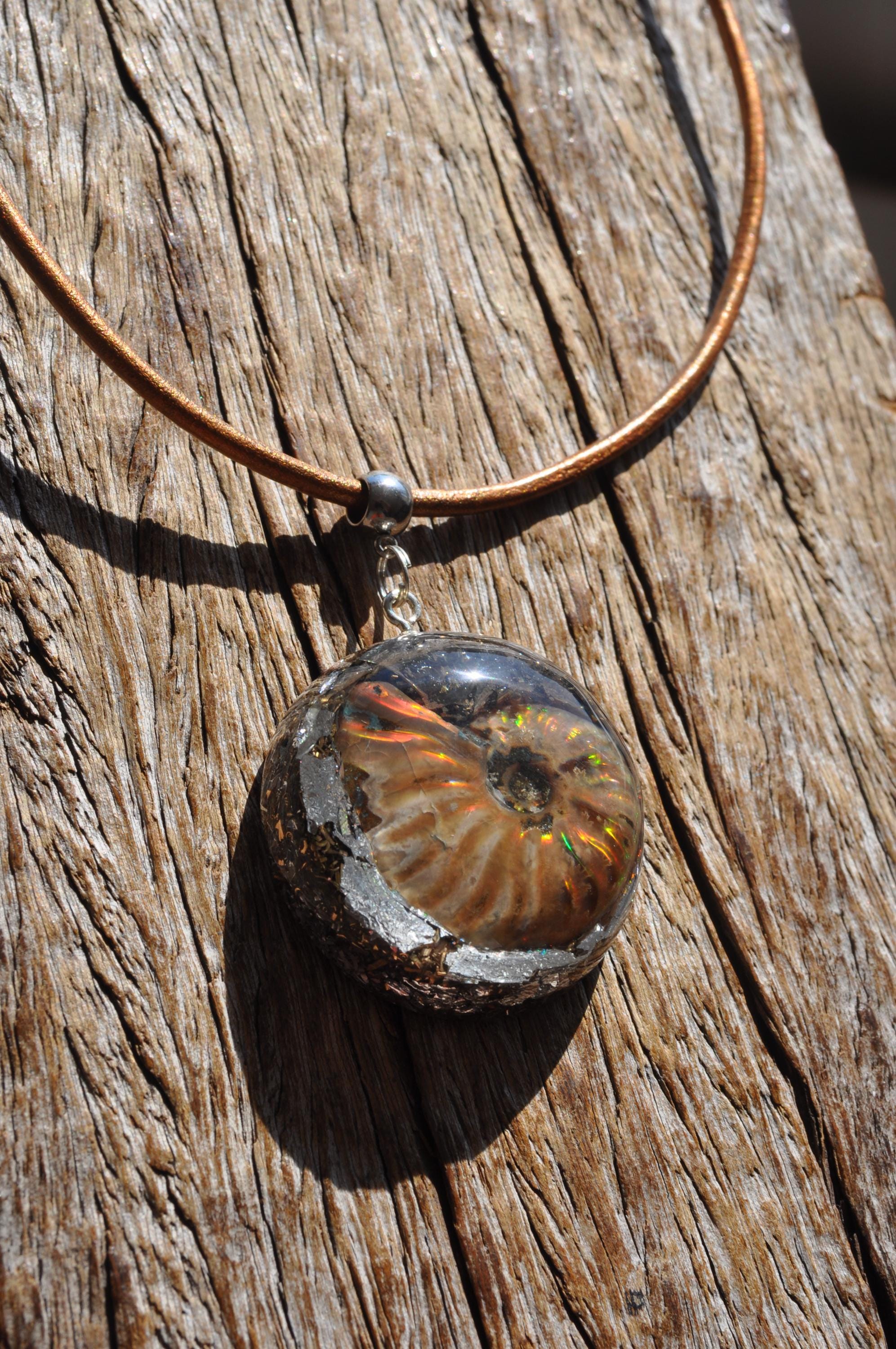 EMF Orgonite Pendant with Opalized Ammonite